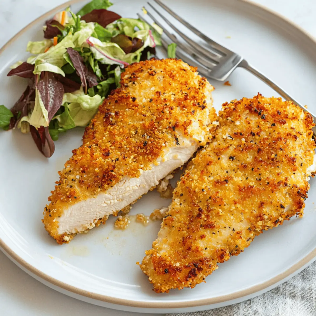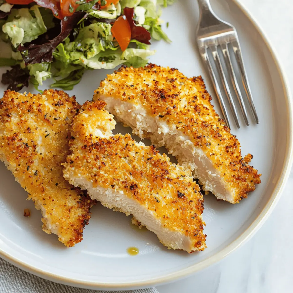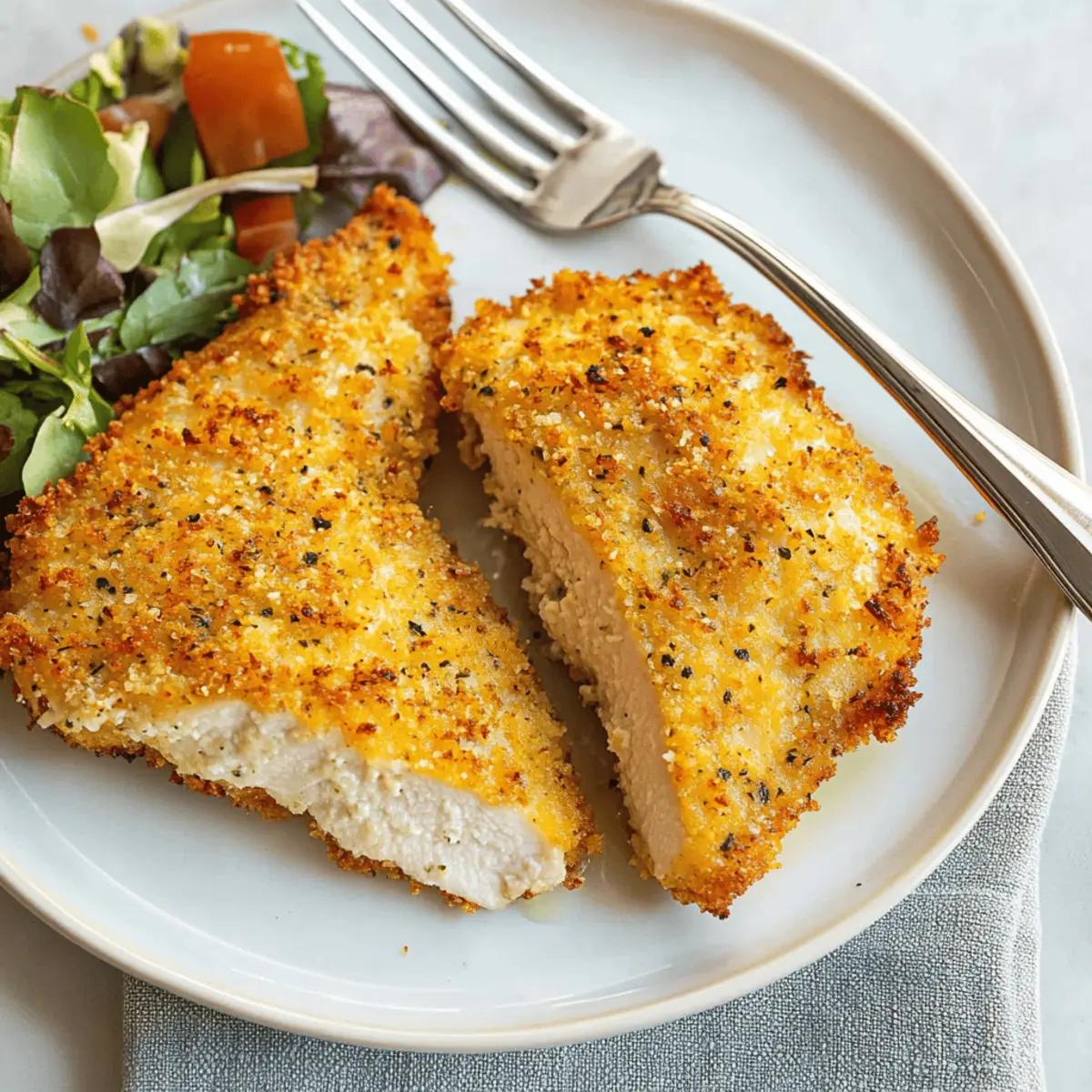 Slice your beautiful Air Fryer Parmesan Crusted Chicken and serve it warm. Pair it with a fresh salad or your favorite dipping sauce for a delightful meal that the whole family will love. Each bite is a celebration of crispy texture and rich flavor!