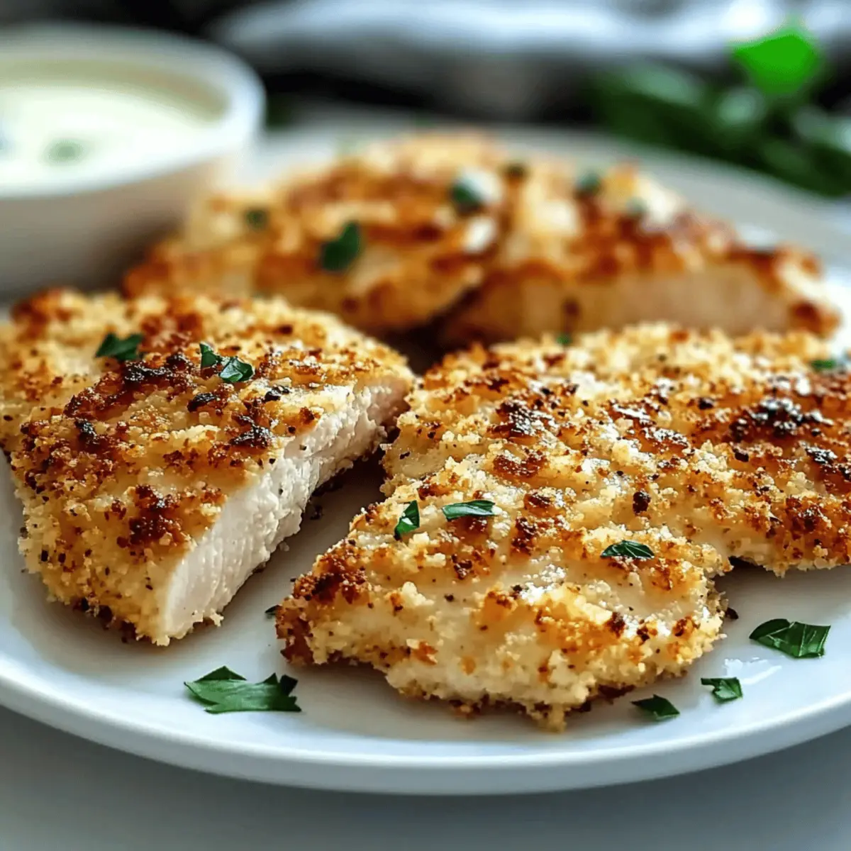 3. Coat Chicken: Whisk together Parmesan cheese and panko breadcrumbs. Press each seasoned chicken breast into the breadcrumb mixture, coating both sides well.