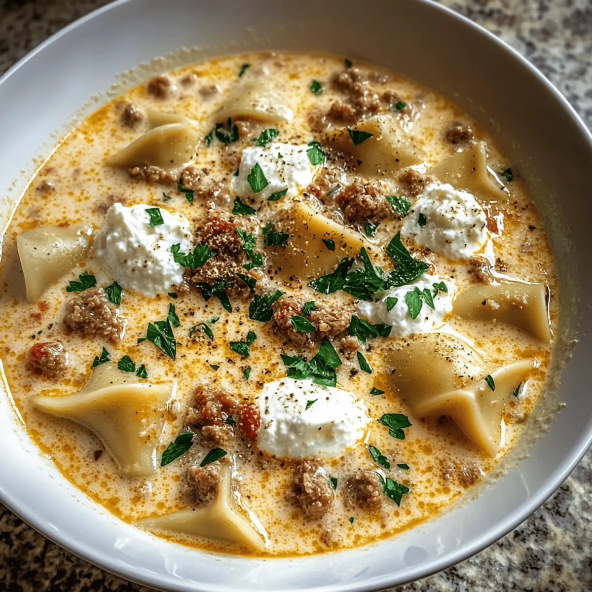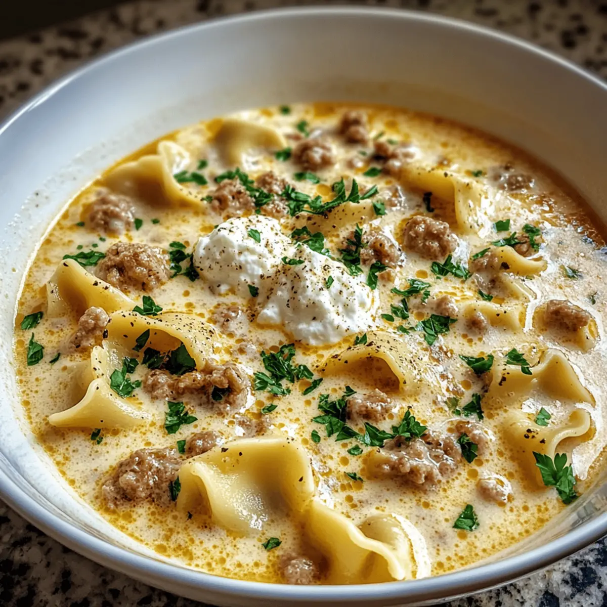 Indulge in this comforting Alfredo Lasagna Soup, blending rich Italian sausage and creamy Alfredo sauce for a delightful twist on traditional lasagna.