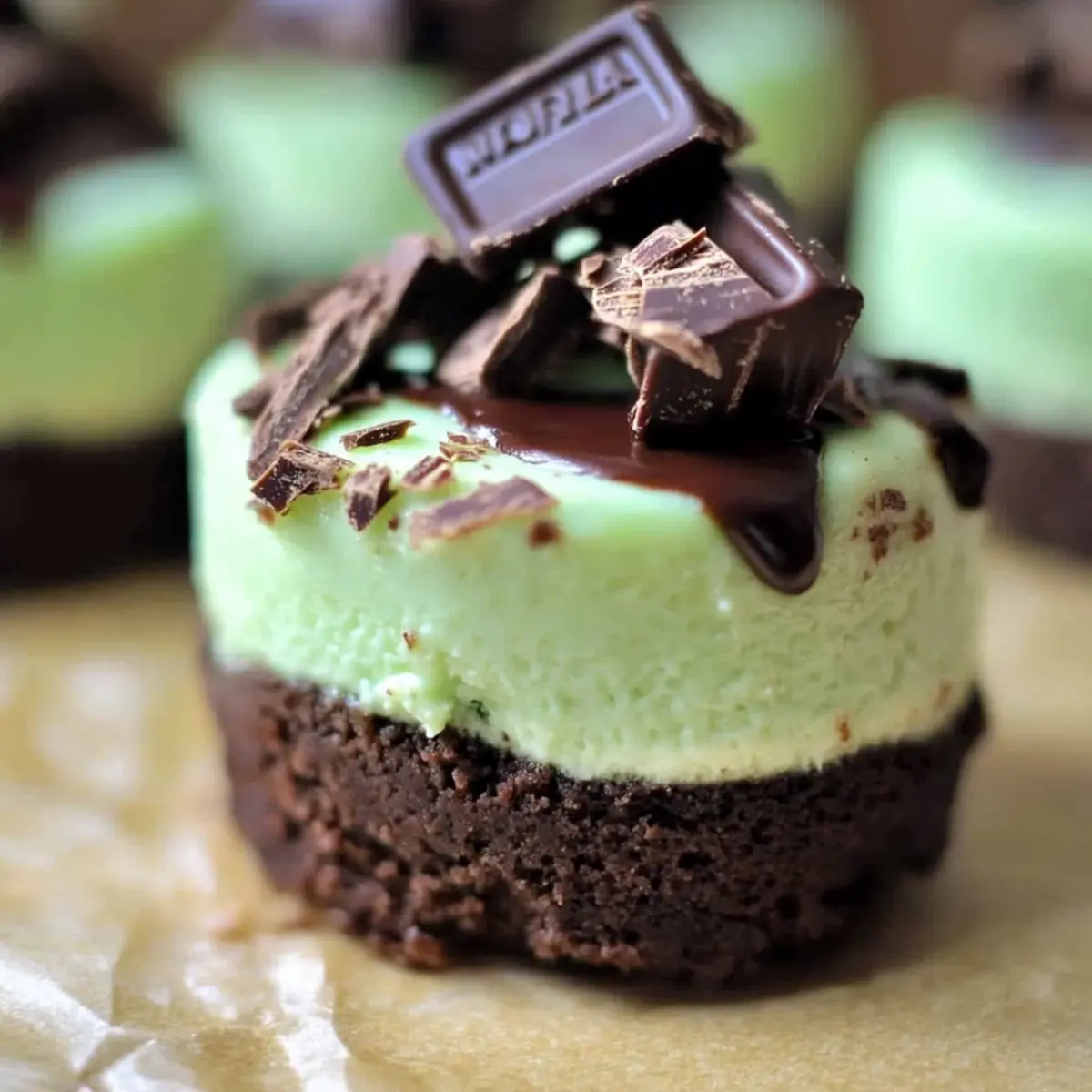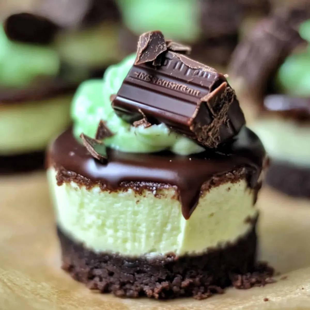 Facebook Twitter Pinterest LinkedInAs I unwrapped the Andes mints, their sweet aroma filled the air, instantly transporting me to my favorite dessert memories. That’s when I knew I needed to create something extraordinary to share with friends: Andes Mint Mini Cheesecakes. These delightful bite-sized treats are not just a feast for your taste buds but also bring a touch of elegance to any gathering. Perfectly minty and decadent, these mini cheesecakes are a wonderful party-worthy dessert that will impress your guests while being incredibly freezer-friendly for easy make-ahead preparation. Whether you’re hosting a festive gathering or simply satisfying your sweet cravings, these cheesecakes promise to deliver pure joy. Ready to elevate your dessert game with a minty twist? Let’s jump in! Why are Andes Mint Mini Cheesecakes a Must-Try? Irresistible Flavor: The combination of creamy mint-infused cheesecake and rich chocolate crust creates a delightful taste explosion in every bite. Crowd-Pleasing Treat: Perfectly portioned for parties, these mini cheesecakes are not only visually appealing but also serve as a great conversation starter among dessert lovers. Effortless Preparation: Simplifying your life, these cheesecakes can be frozen ahead of time—so you can enjoy the fun without the fuss! Versatile Variations: Get creative! Substitute mint extract with your favorite flavors or try different toppings for a unique twist that matches any occasion. Elegant Presentation: Impress your guests with these petite, beautifully topped desserts that look as gorgeous as they taste. Dive into a world of minty delight with these Andes Mint Mini Cheesecakes that are sure to become a new favorite! For more fabulous dessert ideas, check out our delicious party-worthy dessert recipes. Andes Mint Mini Cheesecakes Ingredients For the Crust • Nonstick baking spray – Prevents sticking; spray the pan lightly before use. • 1¼ cups chocolate graham cracker crumbs – Provides the chocolatey crust essential for flavor and structure; can substitute with standard graham crackers. • 2 tablespoons sugar – Adds sweetness to the crust. • 4 tablespoons butter (melted) – Binds the crust together and adds richness. For the Cheesecake Filling • 2 (8-ounce) boxes of cream cheese (softened) – The base of the cheesecake providing creaminess and volume; for a lighter version, consider low-fat cream cheese but it may affect texture. • ¼ cup plus 2 tablespoons sugar – Sweetens the cheesecake filling; adjust to taste. • 1 egg – Provides structure and richness; make sure it’s at room temperature for better mixing. • 1 teaspoon mint extract – Adds mint flavor; can substitute with crème de menthe in equal measure. • 4 drops green food coloring – Enhances visual appeal; optional based on preference. For the Topping • 1¼ cups chocolate chips – Used for the chocolate topping; ensure to use good quality for best flavor. • 15 Andes mints (coarsely chopped) – Adds texture and extra mint flavor topping the cheesecakes; brings that signature Andes taste to every bite. Now you have all the essential ingredients to whip up these delightful Andes Mint Mini Cheesecakes, perfect for any occasion! Step‑by‑Step Instructions for Andes Mint Mini Cheesecakes Step 1: Preheat the Oven and Prepare the Pan Start by preheating your oven to 325°F (163°C). While the oven warms, grab your mini cheesecake pan and lightly spray it with nonstick baking spray to prevent sticking. This preparation ensures that your Andes Mint Mini Cheesecakes will easily release from the pan after baking. Step 2: Make the Crust In a mixing bowl, combine 1¼ cups of chocolate graham cracker crumbs, 2 tablespoons of sugar, and 4 tablespoons of melted butter. Stir until the mixture resembles wet sand. Evenly distribute this mixture into the prepared cheesecake pan, pressing it down gently with your fingers or the back of a spoon to create a firm, cohesive crust that will hold your cheesecakes together. Step 3: Prepare the Cheesecake Filling In a stand mixer, blend together 2 (8-ounce) boxes of softened cream cheese and ¼ cup plus 2 tablespoons of sugar until the mixture is smooth and creamy. Add in 1 room temperature egg, 1 teaspoon of mint extract, and 4 drops of green food coloring. Mix on low speed until everything is just combined; be careful not to over-mix, as this can create air bubbles that may crack during baking. Step 4: Bake the Cheesecakes Spoon the creamy cheesecake filling evenly over the prepared crusts in the mini cheesecake pan. Place the pan in the preheated oven and bake for about 20 minutes. As they bake, watch for the filling to set and slightly puff up, indicating they are nearly done—this will create that perfect creamy texture. Step 5: Cool Gradually Once baked, turn off the oven and slightly prop the door open. Allow the cheesecakes to cool in the oven for about 5 to 10 minutes. This gradual cooling helps prevent the tops from cracking. Afterward, transfer the mini cheesecakes to the refrigerator and chill for several hours, or ideally overnight, to let them set fully. Step 6: Finish with Chocolate and Mint Topping Once the Andes Mint Mini Cheesecakes are chilled, melt 1¼ cups of chocolate chips in the microwave in 30-second intervals, stirring until smooth. Drizzle the melted chocolate over each cheesecake. Finally, sprinkle with the coarsely chopped Andes mints, creating a delightful topping that not only enhances the flavor but also adds a beautiful decorative touch to your mini desserts. Expert Tips for Andes Mint Mini Cheesecakes • Room Temperature Cream Cheese: Ensure your cream cheese is at room temperature for easier mixing, resulting in a smoother filling and avoiding lumps. • Avoid Over-Mixing: Mix the filling just until combined after adding the egg to prevent incorporating too much air, which can lead to unsightly cracks during baking. • Cool Gradually: Prop the oven door open a