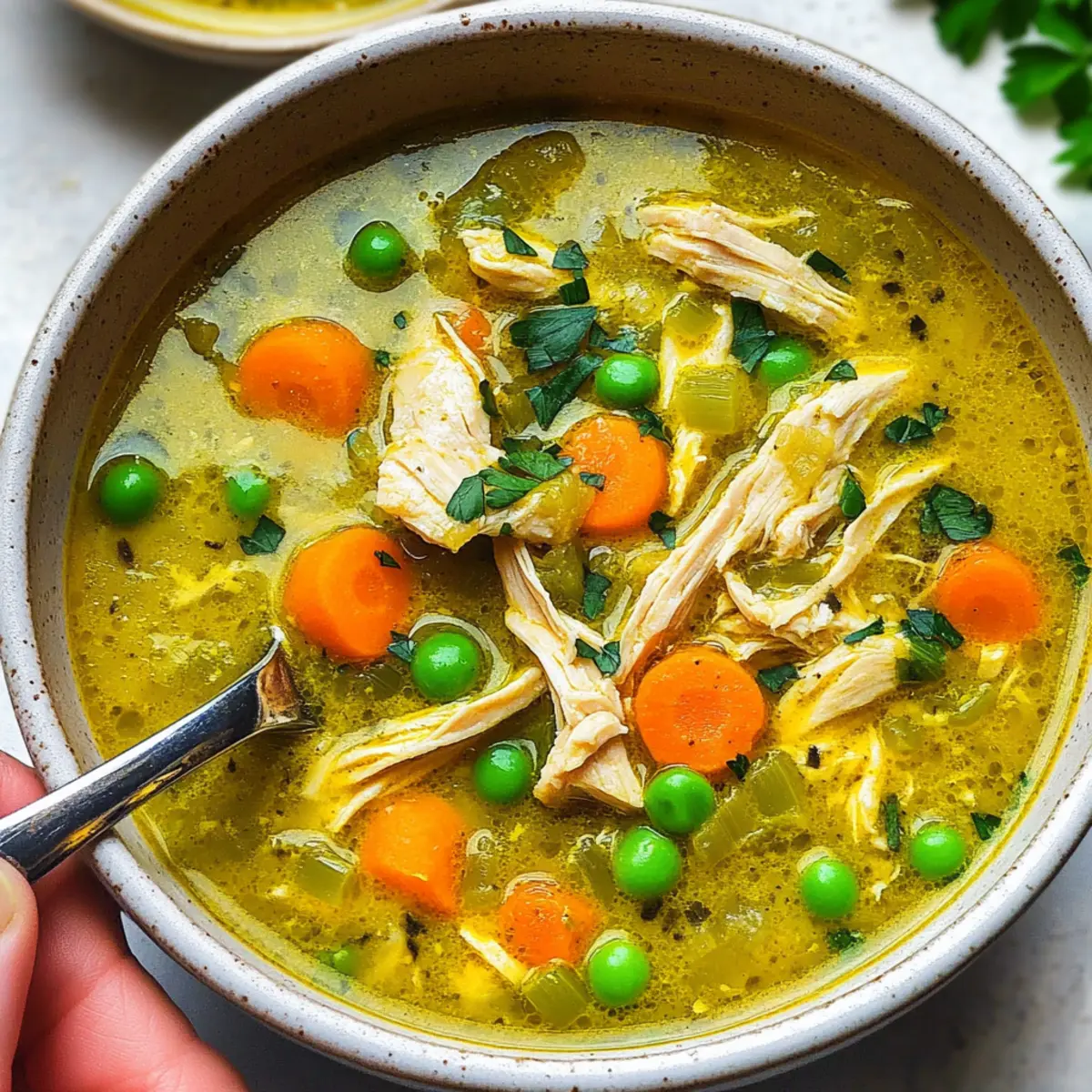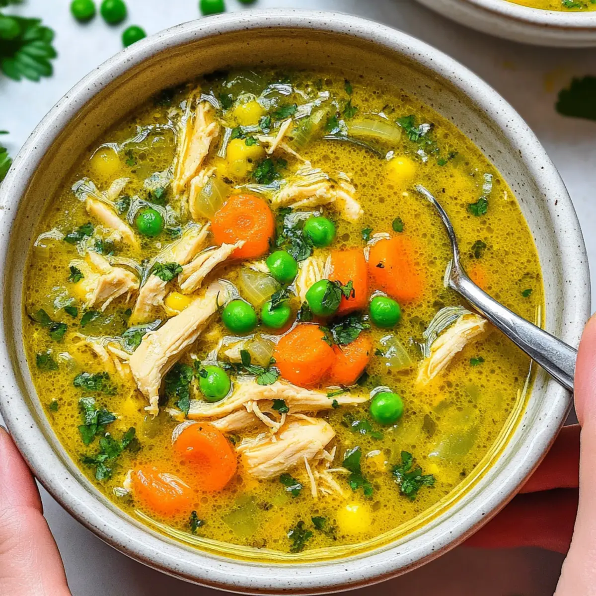 Facebook Twitter Pinterest LinkedInOn a chilly afternoon, the kitchen fills with a delightful warmth that feels like a hug in a bowl. As I stir together a pot of Anti Inflammatory Turmeric Chicken Soup, I can’t help but feel grateful for this nourishing recipe that effortlessly combines comfort and health. Packed with aromatic leeks, vibrant carrots, and tender chicken, this soup not only warms my soul but also boasts anti-inflammatory properties, making it a perfect choice for anyone in need of a wholesome meal. The best part? It’s a one-pot wonder that comes together quickly, letting you enjoy more time at the table than in the kitchen. Are you ready to discover an easy way to elevate your cooking and embrace the benefits of turmeric? Let’s dive in! Why is Turmeric Chicken Soup So Appealing? Comforting warmth radiates from every bowl, making it a go-to recipe for chilly nights. Nutritious ingredients blend beautifully, ensuring you’re nourishing your body without compromising flavor. Versatile for different dietary needs, this soup can be customized easily—try a vegan twist or load it with your favorite veggies! Quick prep time means you can whip this up in just under an hour, allowing more moments for enjoying dinner with family or friends. For another delightful homestyle option, check out my Hawaiian Chicken Sheet Pan recipe! Anti Inflammatory Turmeric Chicken Soup Ingredients • This vibrant, flavorful soup is packed with nourishing ingredients! For the Soup Base Leeks – Provides a sweet, mild onion flavor; substitute with green onions or shallots if necessary. Onions – Adds depth of flavor; can be omitted for a milder version or substituted with more leeks. Carrots – Offers sweetness and texture; use fresh for best results; frozen can be a shortcut. Celery – Contributes aromatic flavor; for those averse to texture, finely dice or substitute with fennel. For the Protein Chicken – Acts as the main protein source, providing heartiness; boneless thighs or breasts are ideal; can use rotisserie chicken for convenience. For the Broth Chicken Broth – Base of the soup for rich flavor; homemade or high-quality store-bought is recommended. Coconut Milk – Adds creaminess and richness; substitute with almond milk or omit for a lighter soup. For Flavor Turmeric – Provides anti-inflammatory properties and a subtle earthy flavor; increasing the amount gives more health benefits without overpowering taste. Additional Spices (garlic, salt, pepper) – Enhances overall flavor; adjust to taste and enjoy the warmth of the anti-inflammatory turmeric chicken soup! For the Final Touch Peas – Adds sweetness and color; use fresh or frozen; no significant substitutions needed. Step‑by‑Step Instructions for Anti Inflammatory Turmeric Chicken Soup Step 1: Sauté the Vegetables In a large soup pot over medium heat, add a splash of olive oil and sauté chopped leeks, diced onions, carrots, and celery for 5-7 minutes. Stir frequently until the vegetables are softened and fragrant, becoming slightly translucent. This aromatic base will set the stage for your anti-inflammatory turmeric chicken soup, making your kitchen smell heavenly. Step 2: Add Garlic and Spices Once the vegetables are softened, stir in minced garlic and cook for an additional minute until it becomes aromatic. Add the turmeric and other spices, such as salt and pepper, stirring well to coat the sautéed veggies. The vibrant yellow of the turmeric will brighten up the mixture and enhance the flavor profile of your soup. Step 3: Introduce the Chicken Next, add the chicken pieces to the pot, mixing them thoroughly into the vegetable and spice mixture. Allow the chicken to sear for about 2-3 minutes, turning occasionally to ensure an even coating of flavor. This step is crucial for infusing your anti-inflammatory turmeric chicken soup with a rich depth of taste. Step 4: Pour in the Broth Carefully pour in the chicken broth, bringing the mixture to a rolling boil. Once boiling, reduce the heat to low and let the soup simmer gently. Cover the pot and cook for 20-30 minutes, or until the chicken is cooked through and tender, making sure not to overcook it to maintain moisture. Step 5: Shred the Chicken When the chicken is cooked, remove it from the pot and place it on a cutting board. Shred or dice the chicken into bite-sized pieces using two forks or a sharp knife. This step not only makes the chicken easier to eat in your anti-inflammatory turmeric chicken soup but also helps distribute it evenly throughout the dish. Step 6: Add Peas and Coconut Milk Return the shredded chicken to the pot, along with fresh or frozen peas. Pour in the creamy coconut milk, stirring to combine all ingredients. Heat the soup again on low for about 5 minutes, allowing the peas to become tender and the flavors to meld beautifully, creating a rich and creamy texture. Step 7: Adjust Seasoning and Serve Finally, taste your anti-inflammatory turmeric chicken soup and adjust the seasoning with more salt and pepper, as needed. Serve hot in bowls, garnished with fresh herbs or a sprinkle of turmeric on top if desired. This comforting soup is not only nourishing but also a delight to share with loved ones. Expert Tips for Anti Inflammatory Turmeric Chicken Soup Avoid Overcooking: To prevent dry chicken, cook it until just done. Shred it when removed from the pot to keep it juicy and tender. Customize Your Veggies: Feel free to swap in your favorite seasonal vegetables like spinach or kale for added nutrients and vibrant color. Embrace the Simmer: Allow the soup to simmer gently for the best flavor infusion—this is where all the magic happens in your anti-inflammatory turmeric chicken soup! Taste and Adjust: Always taste towards the end of cooking. Spices can intensify, so adjust salt and pepper to your preference for the perfect finish. Make it Vegan: Substitute the chicken with beans or additional veggies and use vegetable broth, creating a deli