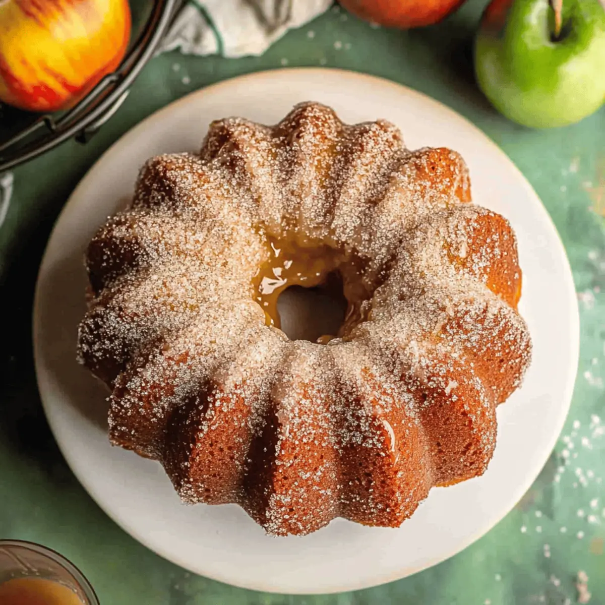 Preheat your oven to 350°F (175°C) and take a moment to grease a 12-cup bundt pan generously with butter or non-stick spray. This step is vital to ensure that your Apple Cider Donut Cake releases easily after baking. Set the pan aside while you gather and measure your ingredients, creating a comforting and inviting baking atmosphere.