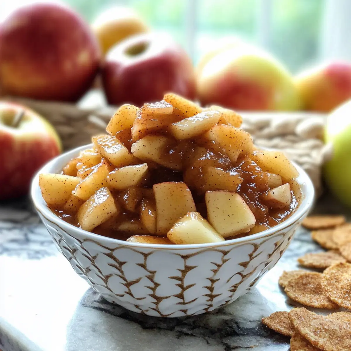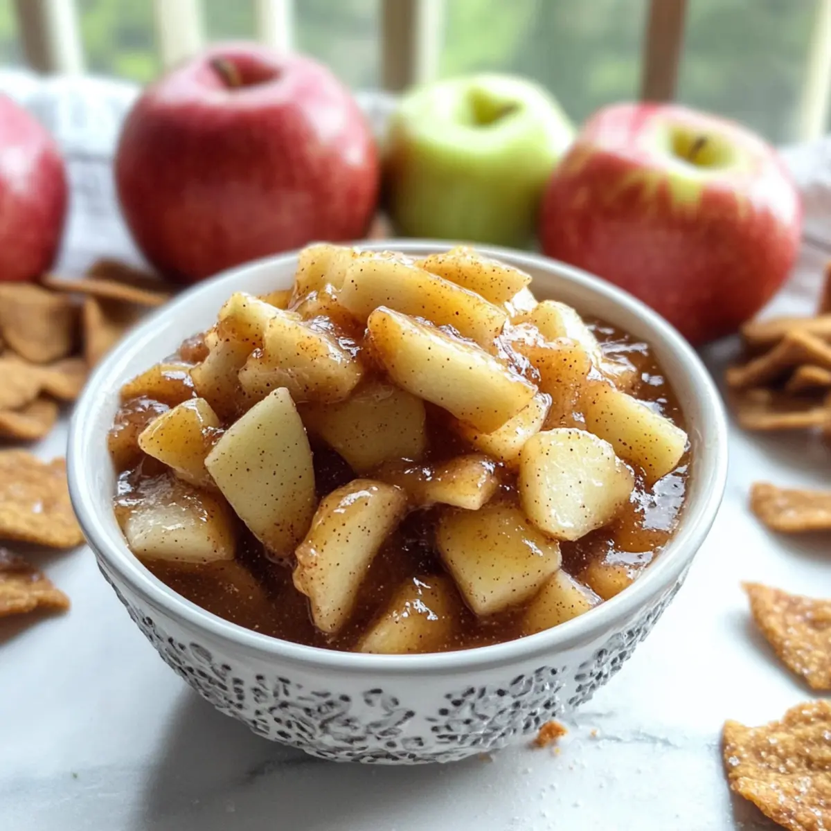 As the scent of cinnamon fills the air and leaves crunch underfoot, I can’t help but think of the perfect autumn treat: Apple Pie Salsa. This delightful twist on classic salsa combines tender apples with a sweet, cinnamon-infused syrup that captures the essence of fall in every bite. Whether you’re hosting a cozy gathering or simply looking for a quick and easy snack, this no-bake recipe is the answer—ready in no time and a guaranteed crowd-pleaser. Pair it with crunchy cinnamon sugar chips for a delicious appetizer or dessert that brings comfort and cheer to any occasion. Are you ready to take your taste buds on an adventure this season? Why is Apple Pie Salsa a Must-Try? Unique Flavor Fusion: This Apple Pie Salsa blends tender apples and warm cinnamon for a taste experience that’s truly one-of-a-kind. No-Bake Perfection: Quick and easy, this recipe requires no baking, making it a hassle-free option for any busy schedule. Crowd Pleaser: Ideal for gatherings, its vibrant colors and delightful flavors will captivate your guests and leave them wanting more. Versatility at Its Best: Serve it as a dip or dessert, and get creative by pairing it with cinnamon sugar chips or even a cheese platter. Seasonal Celebration: Embrace the flavors of fall in every bite, bringing warmth and comfort to your table. What’s not to love? Easy Apple Pie Salsa Ingredients For the Salsa • Brown Sugar – Provides sweetness and depth of flavor; substitute with coconut sugar for a lighter sweetness. • Sugar – Enhances the overall sweetness; use granulated sugar or reduce for a less sweet option. • Cinnamon – Adds warmth and spice, essential for the comforting fall flavor; adjust to taste. • Lemon Juice – Balances sweetness with acidity and prevents apple browning; fresh juice is best. • Water – Creates a syrupy texture for the salsa; can be replaced with apple juice for added flavor. • Apples (3 large, peeled & chopped) – The main ingredient, offering sweetness and texture; use a mix of sweet and tart varieties like Honeycrisp and Granny Smith for complexity. • Cornstarch (3 tbsp) – Used to thicken the salsa; arrowroot or tapioca starch are suitable substitutes. Step‑by‑Step Instructions for Apple Pie Salsa Step 1: Combine Ingredients In a medium saucepan, mix together 1 cup of brown sugar, 1/4 cup of granulated sugar, and 1 tablespoon of cinnamon. Add in 2 tablespoons of fresh lemon juice and 1/2 cup of water to create a sweet syrup. Stir in 3 large peeled and chopped apples, ensuring they’re well-coated with the sugary mixture. Step 2: Cook the Mixture Place the saucepan over medium heat and bring the mixture to a boil, watching for the bubbling edges, which should take about 5 minutes. Once boiling, reduce the heat to low and let it simmer gently for approximately 10 minutes. You’ll know it’s ready when the apples become tender yet still slightly firm. Step 3: Thicken the Salsa Remove 1/2 cup of the cooking liquid and transfer it to a small bowl. Mix in 3 tablespoons of cornstarch until smooth, creating a thickening agent for your Apple Pie Salsa. This step is key to achieving that perfect, syrupy consistency. Step 4: Final Cooking Return the cornstarch mixture to the saucepan and continue cooking on low heat. Stir constantly for about 5 minutes, or until the salsa thickens to your desired consistency. The mixture should bubble gently, and the aroma of cinnamon will fill your kitchen, making it irresistible. Step 5: Serve and Enjoy Once thickened, remove the Apple Pie Salsa from heat and let it cool for a few minutes. Serve it warm with cinnamon sugar chips for dipping, allowing the flavors to meld beautifully. This delightful salsa is perfect for sharing and is guaranteed to bring comfort to any gathering. Expert Tips for Apple Pie Salsa Even Sizing: Ensure apples are chopped into uniform pieces for consistent cooking and a delightful bite in every scoop of your Apple Pie Salsa. Frequent Stirring: Stir the mixture regularly to prevent sticking and achieve an even thickness; nobody likes a burnt bottom! Adjusting Consistency: If you prefer a chunkier salsa, simply reduce cooking time after adding apples—your taste buds will thank you! Sweetness Balance: Taste and adjust sweetness; perhaps a sprinkle more of sugar or a dash less, depending on your apple variety and preference. Use Variations: Experiment with fruits like pears or add dried cranberries for a fun twist that will elevate your Apple Pie Salsa to new levels! How to Store and Freeze Apple Pie Salsa Fridge: Store any leftovers in an airtight container in the refrigerator for up to 3 days. This keeps your Apple Pie Salsa fresh and flavorful. Freezer: For longer storage, freeze the salsa in a freezer-safe container for up to 3 months. Thaw in the refrigerator overnight before reheating. Reheating: Gently reheat on the stove over low heat, stirring frequently until warmed through. This helps restore its comforting taste and aroma. Avoid Moisture: Ensure the container is well-sealed to prevent ice crystals from forming, which can affect the texture of your delicious salsa. Apple Pie Salsa Variations & Substitutions Feel free to put your own spin on this delightful Apple Pie Salsa and make it uniquely yours. Dried Cranberries: Add dried cranberries for a refreshing tartness that perfectly contrasts the sweet apples. Chopped Nuts: Top with your favorite chopped nuts, like pecans, for added crunch and nutty flavor that enhances every bite. Pears: Substitute some or all of the apples with ripe pears for a softer, sweeter alternative that still brings fall vibes. Granny Smith Apples: Use only Granny Smith apples for an extra tart flavor that balances the sweetness nicely. Honey or Maple Syrup: Swap sugar for honey or maple syrup to give the salsa a natural sweet boost and a unique flavor twist. Coconut Whipped Cream: Serve it with a dollop of coconut whipped cream for a creamy addition that makes it feel like desse