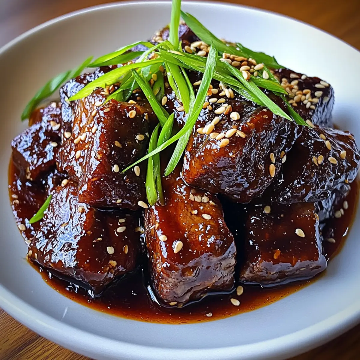 Facebook Twitter Pinterest LinkedInAs I stirred the rich, simmering marinade, a warm aroma of ginger and garlic enveloped my kitchen, instantly transporting me to a bustling street market in Asia. This Asian Sticky BBQ Chuck Roast is a delightful fusion of sweet and savory flavors that slow-cooks to mouthwatering perfection. Not only is it a crowd-pleaser destined to have everyone asking for seconds, but its simplicity makes it an ideal choice for busy weeknights or leisurely family gatherings. And if you’re looking for a gluten-free option, I’ve got you covered with easy substitutions. So, grab your apron and prepare to impress your loved ones with this dish—you might even find it becomes a new family favorite! What side dish will you pair it with to take your meal to the next level? What makes this roast so irresistible? Melt-in-Your-Mouth Tenderness: Cooked low and slow, this roast is incredibly tender and shreds effortlessly. Irresistible Glaze: The sweet and savory sticky glaze layers flavor and adds a beautiful shine to the dish. Easy Substitutions: Need it gluten-free? Just swap soy sauce for tamari, and you’re good to go! Crowd-Pleasing Delight: Perfect for any gathering, your guests will rave about this unique and flavorful dish, making it a must-try. Versatile Serving Options: Serve over jasmine rice, with noodles, or as sliders; it’s a versatile centerpiece that suits any occasion! Asian Sticky BBQ Chuck Roast Ingredients • Discover the perfect blend of flavors with this mouthwatering dish! For the Roast • Chuck Roast – A well-marbled cut that becomes incredibly tender when slow-cooked; consider brisket or beef shoulder as alternatives. For the Marinade • Soy Sauce – Adds salty umami depth to the flavors; use tamari for a gluten-free option. • Hoisin Sauce – This sweet-savory paste enriches the sauce and contributes to its delicious gloss. • Honey – Enhances natural sweetness and aids in caramelization during cooking. • Rice Vinegar – Provides a zesty acidity that perfectly balances the dish’s flavors. • Brown Sugar – Deepens sweetness and works synergistically in caramelization. • Garlic (minced) – Infuses a warm, savory essence into your marinade blend. • Ginger (fresh, minced) – Offers a refreshing kick that also tenderizes the meat. • Sesame Oil – Contributes a nutty aroma and depth of flavor to the marinade. • Chili Flakes (optional) – Add these for a subtle heat and greater complexity in flavors. For the Glaze • Cornstarch (slurry) – Essential for thickening the sauce into a glossy and appealing glaze. • Sesame Seeds (for garnish) – Introduces a delightful crunch and visual charm. • Green Onions (sliced for garnish) – Adds freshness and a mild onion flavor that complements the dish beautifully. Immerse yourself in the magic of this Asian Sticky BBQ Chuck Roast, where every ingredient plays a pivotal role in creating a memorable meal! Step‑by‑Step Instructions for Asian Sticky BBQ Chuck Roast Step 1: Prepare the Roast Start by placing your chuck roast in a slow cooker or a large, sturdy oven-safe pot. Ensure the pot has enough room for the roast to fit comfortably. This cut of meat is key for the Asian Sticky BBQ Chuck Roast, as it becomes incredibly tender with slow cooking. Step 2: Make the Marinade In a medium-sized mixing bowl, whisk together soy sauce, hoisin sauce, honey, rice vinegar, brown sugar, minced garlic, fresh ginger, sesame oil, and optional chili flakes until the mixture is smooth and well combined. This savory and sweet marinade will infuse the meat with rich, Asian flavors as it cooks. Step 3: Coat the Meat Pour the prepared marinade over the chuck roast, ensuring that every side of the meat is well coated. Use a spatula or your hands to rub the marinade into the meat, allowing it to soak up all those delicious flavors. This step is essential for the tasty glaze you’ll create later. Step 4: Cook For the slow cooker, set it to low heat and let the Asian Sticky BBQ Chuck Roast cook for about 6–8 hours, or until the meat is fork-tender. If using the oven, preheat it to 325°F (160°C) and cook the roast for 3–4 hours. The perfect doneness will leave the meat juicy and easy to shred. Step 5: Rest the Meat Once cooking is complete, carefully remove the roast from the pot and place it on a cutting board. Cover it loosely with aluminum foil and let it rest for about 10–15 minutes. This resting period allows the juices to redistribute, ensuring a moist and flavorful Asian Sticky BBQ Chuck Roast. Step 6: Make the Glaze While the roast rests, take the cooking liquid from the pot and pour it into a saucepan. Bring it to a simmer over medium heat. Gradually add the cornstarch slurry, whisking continuously for 3–5 minutes until it thickens into a glossy glaze. This glaze will elevate the dish’s flavor and appearance. Step 7: Finish the Dish After making the glaze, return the shredded roast to the pot or a serving dish. Generously pour the thickened glaze over the meat, ensuring each piece is well coated. This final touch transforms your Asian Sticky BBQ Chuck Roast into a mouthwatering centerpiece for any meal. Step 8: Garnish To serve, sprinkle sesame seeds and sliced green onions over the coated roast for a pop of color and flavor. This will not only enhance the visual appeal of your dish but also add a delightful crunch and freshness as you enjoy your delicious Asian Sticky BBQ Chuck Roast. Expert Tips for Asian Sticky BBQ Chuck Roast Flavor Booster: Use fresh ingredients: Fresh ginger and garlic elevate the dish, enhancing the umami flavors in your Asian Sticky BBQ Chuck Roast. Marinade Time: Let it soak: For the best taste, marinate the chuck roast overnight in the fridge; this deepens the flavors and ensures tenderness. Avoid Overcooking: Check doneness: Use a meat thermometer to prevent overcooking; aim for around 195°F (90°C) for perfect shredding texture. Glaze Finishing Tou