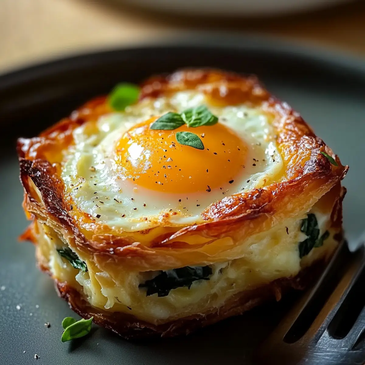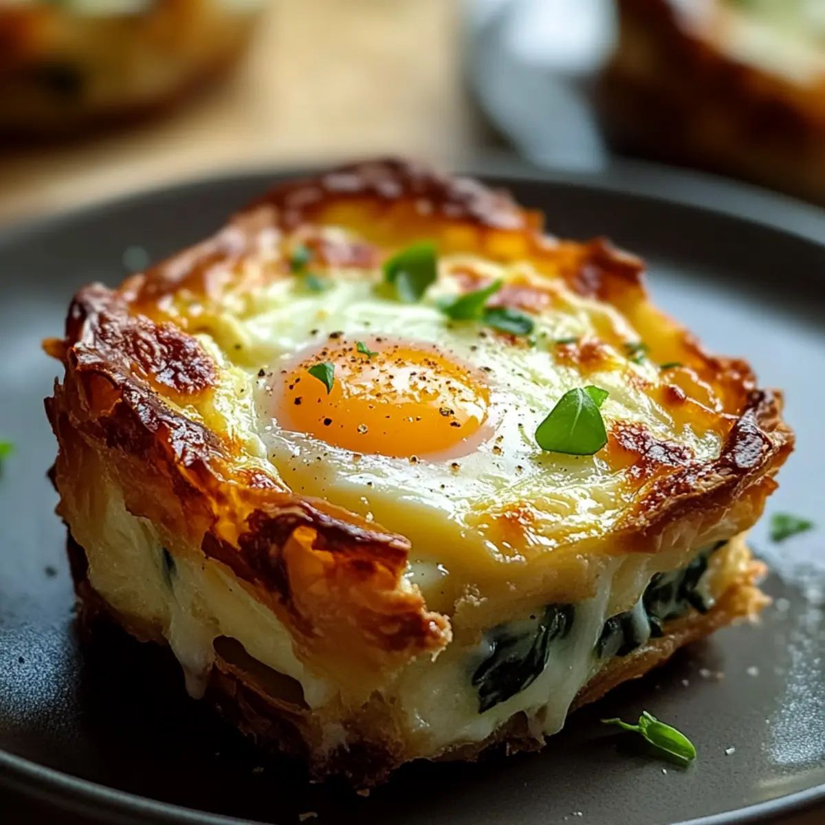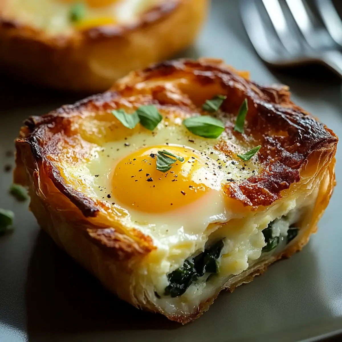 Facebook Twitter Pinterest LinkedInAs I stirred my morning coffee one breezy Sunday, the idea of an elegant yet easy brunch danced in my mind. Enter the Baked Eggs Napoleon, a comforting dish that effortlessly elevates your weekend table. With flaky puff pastry embracing creamy spinach and melted Gruyere cheese, these little culinary treasures transform ordinary eggs into an impressive feast. Not only is this brunch recipe a delightful crowd-pleaser, but it also lends itself to endless customization, allowing you to play with flavors and ingredients based on what you have on hand. Whether you’re whipping it up for family or hosting brunch with friends, isn’t it time you treated yourself to something special? Let’s delve into this comforting creation together! Why is Baked Eggs Napoleon a Must-Try? Elegance Redefined: Impress your guests with this visually stunning dish that looks like it belongs in a five-star restaurant. Customizable Delight: Easily swap in your favorite cheeses or seasonal veggies, making it perfect for any palate or occasion. Effortless Preparation: With just a few steps, this recipe is straightforward, allowing you to focus on enjoying the company rather than stressing in the kitchen. Crowd-Pleasing Comfort: This dish beautifully combines flavors and textures, ensuring every bite offers a comforting experience that guests will rave about. Perfect for Any Meal: Ideal for brunch, lunch, or even dinner, you can enjoy Baked Eggs Napoleon at any time of day! Why not serve it alongside a light salad or some Pizza Pasta Bake for a complete meal? Get ready to fall in love with this sophisticated yet cozy recipe that’s sure to become a staple in your home! Baked Eggs Napoleon Ingredients For the Pastry Shells Puff Pastry – Use frozen sheets for easy preparation; thaw them before use for the best results. Unsalted Butter – Adds richness and is perfect for greasing; substitute with olive oil for a dairy-free option. For the Filling Fresh Spinach – Provides flavor and nutrition; kale or Swiss chard are great substitutes if desired. Gruyere Cheese – Offers creaminess and flavor; feel free to swap with cheddar or goat cheese. Prosciutto/Cooked Ham – Great for a savory finish; crumbled bacon or sausage can also be a delicious alternative. Heavy Cream – Enhances the richness of the eggs; half-and-half or dairy-free creamer works for lighter versions. Parmesan Cheese – Recommended for extra flavor and texture complexity; optional but adds a nice touch. Shallot and Garlic – Deliver aromatic depth; you can substitute with onion or garlic powder to taste. Nutmeg – A pinch lends warmth; omit if you’re sensitive to strong flavors. Salt and Pepper – Essential seasonings to adjust according to your taste and ingredient saltiness. For Garnish Chives/Parsley – Brighten the dish with freshness and color; feel free to explore other herbs based on your preference. Enjoy crafting your Baked Eggs Napoleon, and don’t hesitate to personalize it with your favorite ingredients for an unforgettable brunch experience! Step‑by‑Step Instructions for Baked Eggs Napoleon Step 1: Prepare the Oven and Puff Pastry Begin by thawing your frozen puff pastry overnight in the refrigerator or at room temperature for about 30 minutes. Preheat your oven to 400°F (200°C) while you grease the insides of four 4-inch ramekins using unsalted butter or olive oil to ensure that the pastry won’t stick. Step 2: Form Pastry Shells Roll out the thawed puff pastry on a lightly floured surface to a thickness of about 1/8 inch. Using a round cutter, cut circles large enough to fit into the ramekins, ensuring a slight overhang. Gently press the pastry circles into the greased ramekins, arranging them nicely to form your Baked Eggs Napoleon shells. Step 3: Blind Bake Pastry To blind bake the pastry, line each shell with parchment paper and fill it with baking weights or dry beans to prevent bubbling. Place the ramekins in the preheated oven and bake for 12-15 minutes until the edges are golden brown. Afterward, carefully remove the weights and parchment, then return the shells to the oven for an additional 3-5 minutes to set the base. Step 4: Prepare Filling While the pastry shells are baking, heat a skillet over medium heat and add a tablespoon of butter. Sauté finely chopped shallots and minced garlic until fragrant and translucent, about 2-3 minutes. Add fresh spinach, cooking until wilted, which should take approximately 2-3 minutes, before removing from heat to stir in cream cheese, heavy cream, Parmesan, and a pinch of nutmeg. Season with salt and pepper to taste. Step 5: Assemble Once your pastry shells are ready, carefully fill each one with equal amounts of the creamy spinach mixture, spreading it evenly. Next, crack a fresh egg on top of each filled pastry shell, ensuring the yolk remains intact. Lightly season the eggs with a pinch of salt and pepper to enhance the flavors. Step 6: Finish Prepping Brush the exposed edges of the pastry with a beaten egg for a beautiful golden color during baking. If desired, sprinkle a bit of your favorite seasoning or fresh herbs around the edges for added flair. This final touch will elevate the presentation of your Baked Eggs Napoleon. Step 7: Final Bake Return the assembled ramekins to the oven and bake for 12-18 minutes, keeping an eye on them to achieve your desired yolk consistency. For runny yolks, aim for 12-14 minutes, while firm yolks will require 17-18 minutes. The egg whites should be set and the pastry deep golden brown when done. Step 8: Garnish and Serve Once baked to perfection, remove the ramekins from the oven and let them cool for a minute. Garnish each dish with freshly chopped chives or parsley for a pop of color and freshness. Serve immediately, either in the ramekins for a rustic touch or gently slide them onto plates for a more refined presentation. What to Serve with Baked Eggs Napoleon Transform your brunch experience by 