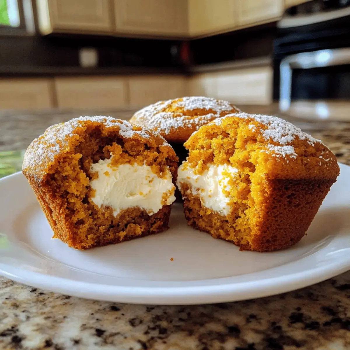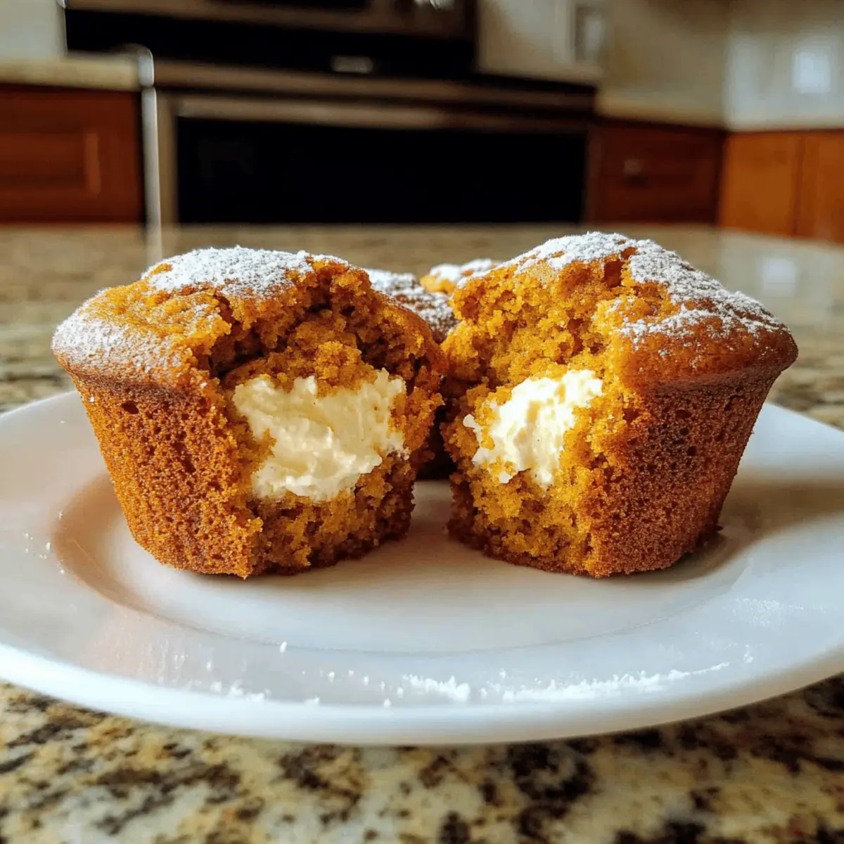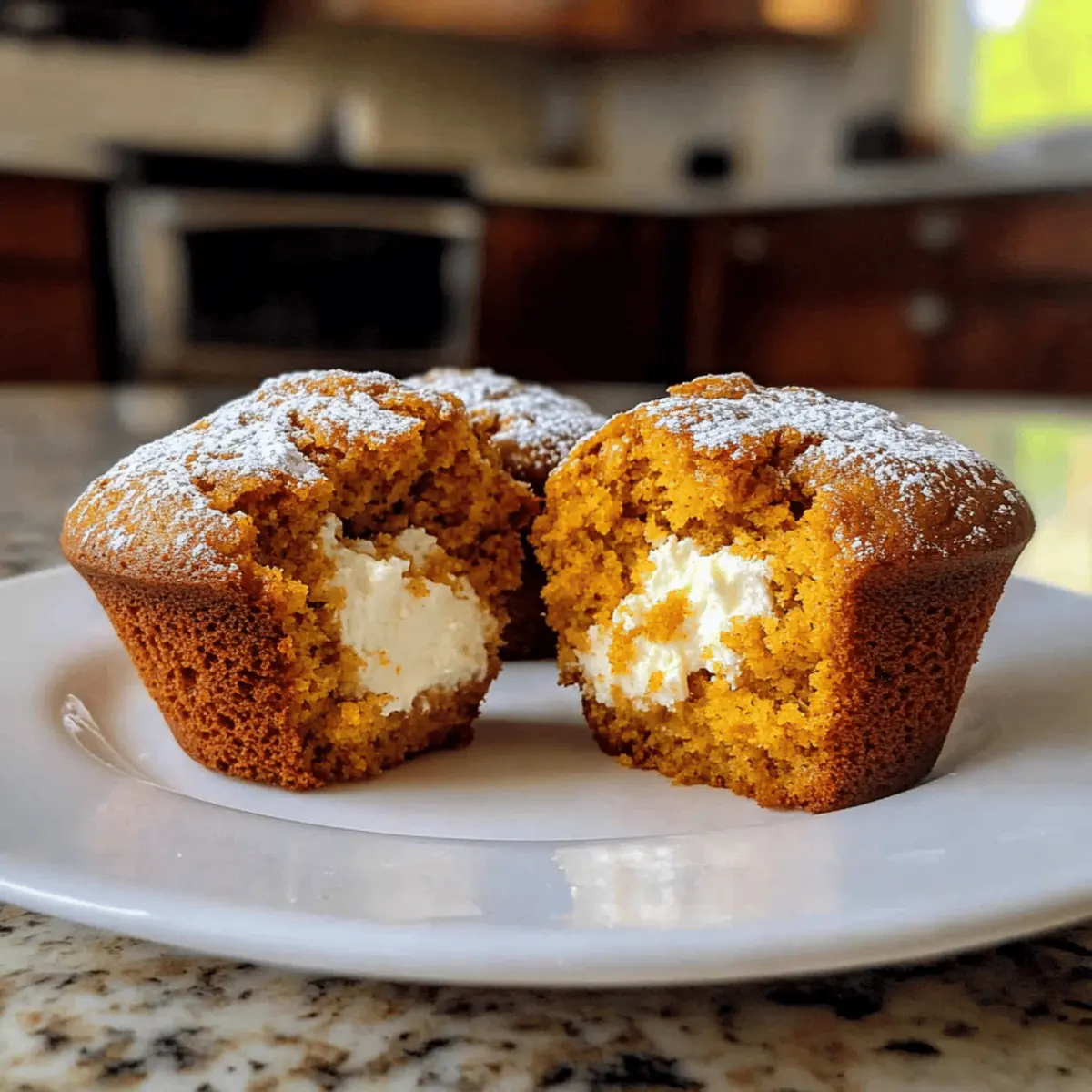 As the first leaves turn golden and the air takes on a crispness, I find myself gravitating toward warm, cozy recipes like these Bakery-Style Pumpkin Cream Cheese Muffins. The moment you pull them from the oven, their inviting aroma of cinnamon and nutmeg fills your kitchen, embracing you in the comforting essence of autumn. Not only are they irresistibly moist, but their heavenly cream cheese center adds a delightful surprise with every bite. Perfect for lazy brunches or chilly afternoons with a cup of coffee, these muffins promise to be a crowd-pleaser while being surprisingly simple to whip up. Ready to embrace the flavors of the season and create your own little bakery moment at home? Let’s dive into this cozy recipe together! Why Are These Muffins So Special? Cozy Comfort: The combination of pumpkin and warm spices makes these muffins a perfect treat for autumn. Irresistible Creamy Center: Each bite reveals a luscious cream cheese filling that elevates them beyond ordinary muffins. Easy to Make: With straightforward steps, even novice bakers can achieve bakery-style results at home. Versatile Options: Consider adding chocolate chips or nuts for a personalized touch! Perfect Pairing: Enjoy these muffins warm with your favorite coffee or tea, turning any moment into a cherished experience. Don’t forget to check out our Sausage Egg Cheese Breakfast Roll-Ups for another delightful treat! Bakery-Style Pumpkin Cream Cheese Muffin Ingredients For the Muffins • All-purpose flour – Provides structure; consider swapping with whole wheat flour for a healthier option. • Baking soda – Acts as a leavening agent, ensuring your muffins rise beautifully. • Baking powder – Works with baking soda for ideal rise; make sure it’s fresh for the best results. • Ground cinnamon – Adds warmth and that quintessential pumpkin spice flavor that we love. • Ground ginger – Enhances spiciness; can be substituted with fresh ginger for a bold twist. • Ground nutmeg – Contributes nutty, aromatic notes that bring out the fall flavors. • Ground cloves – Adds depth; feel free to omit if you don’t have any on hand. • Salt – Balances sweetness and elevates the overall flavors of the muffins. • Granulated sugar – Sweetens the muffin base perfectly. • Light brown sugar – Adds moisture and a hint of caramel flavor; substitute with all granulated sugar if needed. • Unsalted butter – Provides richness and moisture; use melted and cooled for better blending. • Pumpkin puree – The star ingredient! Make sure to use pure pumpkin puree, not pie filling. • Eggs – Bind everything together for a moist texture. • Buttermilk – Contributes to fluffiness and adds a slight tang; swap with milk plus a tablespoon of vinegar if necessary. • Vanilla extract – Enhances the entire flavor profile of the muffins. For the Cream Cheese Filling • Cream cheese – Provides that creamy, tangy center; ensure it’s softened for easy mixing. • Powdered sugar – Sweetens the cream cheese filling to perfection. • Vanilla extract (for filling) – Enriches the flavor of the cream cheese filling beautifully. Embrace the warmth of the season with these Bakery-Style Pumpkin Cream Cheese Muffins, perfect for any cozy occasion! Step‑by‑Step Instructions for Bakery-Style Pumpkin Cream Cheese Muffin Step 1: Preheat the Oven Begin by preheating your oven to 375°F (190°C). While the oven warms up, line a 12-cup muffin pan with paper liners to ensure easy removal of your delightful Bakery-Style Pumpkin Cream Cheese Muffins. This preparation helps create that perfect bakery-style finish we all love. Step 2: Combine the Dry Ingredients In a large mixing bowl, whisk together the all-purpose flour, baking soda, baking powder, ground cinnamon, ground ginger, ground nutmeg, ground cloves, and salt. This mixture is crucial, as it adds the warm, cozy autumn flavor to your muffins. Make sure these dry ingredients are well combined for even distribution of spices. Step 3: Mix the Wet Ingredients In a separate medium bowl, mix the granulated sugar, light brown sugar, melted and cooled unsalted butter, pumpkin puree, eggs, buttermilk, and vanilla extract until smooth and well blended. This step creates the moist base of your Bakery-Style Pumpkin Cream Cheese Muffins and ensures all ingredients meld together beautifully. Step 4: Combine Wet and Dry Ingredients Pour the wet ingredients into the dry mixture, using a spatula to fold them together gently. Stir until just combined; be careful not to overmix, as lumps are perfectly fine. This gentle approach helps retain the muffins’ light, fluffy texture that everyone loves. Step 5: Prepare the Cream Cheese Filling In a small bowl, mix the softened cream cheese, powdered sugar, and additional vanilla extract until you achieve a smooth and creamy consistency. This delightful filling adds a rich contrast to the spiced pumpkin batter, making your Bakery-Style Pumpkin Cream Cheese Muffins truly special. Step 6: Fill the Muffin Liners Start by filling each muffin liner halfway with the pumpkin batter. Next, add about 1-2 tablespoons of your luscious cream cheese filling to the center of each muffin, then carefully cover it with the remaining pumpkin batter. This layering ensures you’ll get that irresistible surprise with each bite. Step 7: Bake the Muffins Place the muffin pan in the preheated oven and bake for 20-25 minutes, or until the tops are golden brown and a toothpick inserted into the muffins comes out clean, avoiding the cream cheese filling. Enjoy the warm, inviting aromas wafting through your kitchen as they bake to perfection. Step 8: Cool and Enjoy Once baked, allow the muffins to cool in the pan for about 5 minutes before transferring them to a wire rack. This cooling step makes them easier to handle and prevents sogginess at the bottom. Let them cool completely before digging in, and experience the cozy delights of your Bakery-Style Pumpkin