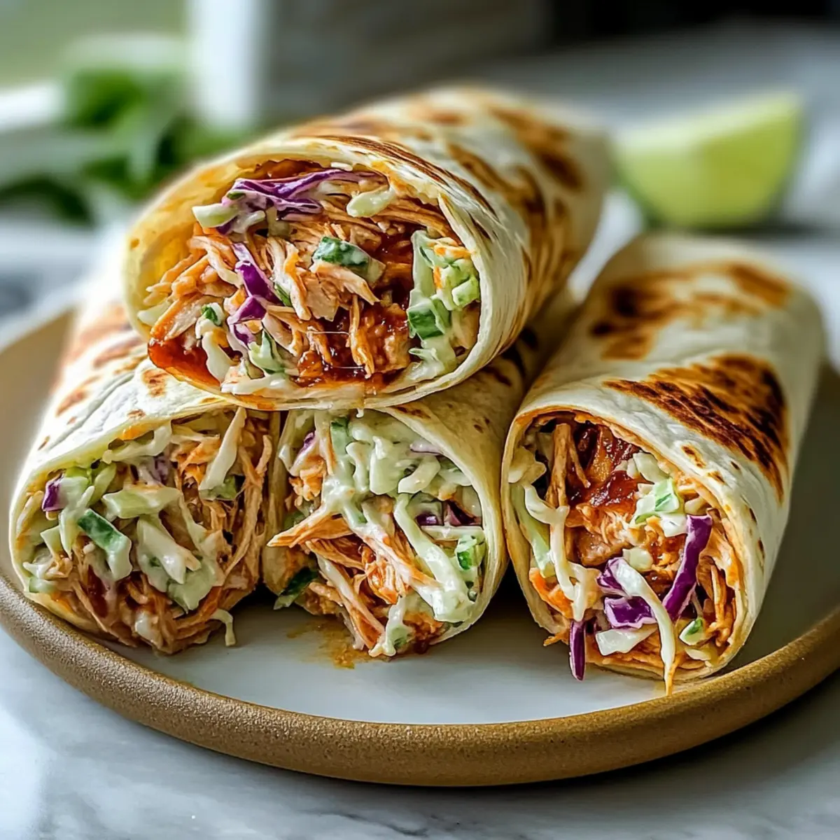 Facebook Twitter Pinterest LinkedInAs I stood in my kitchen, the sizzling sounds of BBQ chicken filled the air, promising a quick and satisfying meal ahead. If you’re looking for a delectable yet effortless lunch, these BBQ Chicken Coleslaw Wraps are your new go-to. In just 25 minutes, you can assemble this family-friendly dish that combines tender, smoky chicken with crisp coleslaw, all wrapped in a fluffy tortilla. What makes these wraps even more enchanting is their versatility—you can swap proteins, use different sauces, or even choose whole wheat tortillas to suit your dietary needs. Whether you need a fuss-free meal for a busy day or a fun picnic treat, these wraps are sure to delight your taste buds. Curious about how to whip up this quick delight? Let’s dive into the recipe! Why Are These Wraps So Versatile? Convenience at its Finest: These BBQ Chicken Coleslaw Wraps come together in just 25 minutes, making them perfect for those hectic weekdays. Flavorful Goodness: The rich taste of smoky BBQ chicken paired with crisp, tangy coleslaw will elevate your lunch experience. Customizable: Feel free to switch up proteins, like using pulled pork or black beans, and experiment with different tortillas for a unique twist. Meal Prep Friendly: Easily prepare the components in advance and assemble right before eating, ensuring fresh textures. Family Favorite: Kids and adults alike will love these wraps, making mealtime enjoyable for everyone! For more tasty options, check out my recipes for Honey BBQ Chicken or BBQ Chicken Skewer Salad. BBQ Chicken Coleslaw Wraps Ingredients Are you ready to create these delightful BBQ Chicken Coleslaw Wraps? For the Wraps Cooked Chicken Breast – shredded into bite-sized pieces; it’s your main protein for flavor-packed wraps. BBQ Sauce – ½ cup of your favorite kind adds sweetness and tang; try spicy chipotle for a kick! Flour Tortillas – 4 large, burrito-sized tortillas for the perfect wrap; substitute with whole wheat or spinach for added nutrients. For the Coleslaw Coleslaw Mix – 2 cups of shredded cabbage and carrots provide crunch and texture; making your own is a great option! Mayonnaise – ¼ cup dresses the slaw with creaminess; Greek yogurt is a lighter alternative if desired. Apple Cider Vinegar – 1 tablespoon adds tanginess; can be swapped for lemon juice for a fresh twist. Sugar – 1 tablespoon balances the vinegar’s acidity perfectly. Salt and Pepper – to taste, enhancing all flavors in your wraps. Optional Enhancements Fresh Cilantro – ¼ cup, chopped; adds a fresh, herby flavor if you’re feeling inspired! Green Onions – ¼ cup, sliced; brings an extra layer of flavor to your wraps. Now you have all the ingredients ready to bring these BBQ Chicken Coleslaw Wraps to life! Enjoy the cooking adventure! Step‑by‑Step Instructions for BBQ Chicken Coleslaw Wraps Step 1: Mix the BBQ Chicken In a medium mixing bowl, take your shredded cooked chicken and pour in ½ cup of your favorite BBQ sauce. Stir it all together until every piece of chicken is generously coated with sauce, ensuring an even, vibrant color. This step should take about 3 minutes. Set aside to let the flavors meld while you prepare the coleslaw. Step 2: Prepare the Coleslaw Dressing In another larger bowl, combine 2 cups of coleslaw mix, ¼ cup mayonnaise, 1 tablespoon apple cider vinegar, and 1 tablespoon of sugar. Sprinkle salt and pepper to taste, then mix thoroughly. You’re looking for a creamy consistency with an appealing crunch from the cabbage and carrots, which should take about 5 minutes to achieve. Step 3: Rest the Coleslaw Allow your prepared coleslaw to rest for approximately 10 minutes at room temperature. This wait helps the vegetables soak up the dressing, enhancing their flavors and achieving a delightful tanginess. You’ll see the cabbage soften slightly while still remaining crisp—perfect for a satisfying bite in your BBQ Chicken Coleslaw Wraps. Step 4: Assemble the Wraps Lay out one large flour tortilla on a clean flat surface. Using a spoon, add a generous portion of the BBQ chicken down the center of the tortilla, followed by a layer of the dressed coleslaw. Aim for a vibrant mix visible through the wrap, showcasing the colors of both the chicken and slaw for a visually appealing dish. Step 5: Roll it Up Fold the shorter sides of the tortilla inwards, then starting from the bottom edge, roll your wrap tightly towards the top. Ensure to keep it snug to avoid filling spilling out. A firm roll will create a beautiful and cohesive wrap that holds all the delicious flavors of your BBQ Chicken Coleslaw Wraps together. Step 6: Cut and Serve Using a sharp knife, cut each wrap in half diagonally for easier handling. This not only makes it more manageable for eating but also shows off the appetizing layers of BBQ chicken and coleslaw. Serve immediately, or wrap in parchment paper to enjoy later—perfect for lunches on the go! What to Serve with BBQ Chicken Coleslaw Wraps Enhance your meal with delightful sides and drinks that balance and complement the flavors of these savory wraps. Sweet Potato Fries: Crispy outside and fluffy inside, they provide a comforting side that pairs perfectly with the BBQ flavors. Their natural sweetness balances the tangy coleslaw beautifully. Crunchy Potato Chips: A classic addition, offering a satisfying crunch that contrasts with the wraps’ textures. Serve with your favorite dip for extra flavor and fun! Garden Salad: A refreshing mix of greens and seasonal veggies dressed in a light vinaigrette makes for a vibrant, nutritious side. The freshness cuts through the richness of the BBQ chicken. Iced Tea: Serve chilled for a quenching beverage that complements your meal’s smoky notes. Opt for a sweetened or unsweetened version based on your preference. Coleslaw Variations: Pair with a different slaw, like apple-cabbage, for a playful twist. The extra crunch and tanginess will add an exciting layer to you