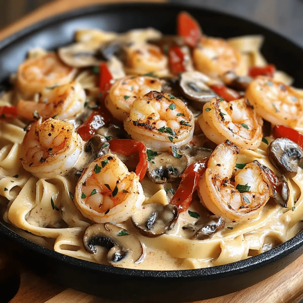 A hint of spice fills the air as I prepare this delicious Blackened Shrimp Stroganoff, a vibrant twist on a beloved classic. This dish brilliantly blends the creamy richness of traditional stroganoff with fiery Cajun flavors, creating a bowl of indulgent comfort that’s perfect for busy weeknights. Not only is it quick and easy to whip up, but it also offers a delightful burst of seafood goodness that’s sure to impress everyone at the table. Ideal for those who seek a satisfying meal without hours in the kitchen, you’ll find that this recipe is as simple as it is scrumptious. Are you ready to elevate your dinner game and embrace this bold culinary adventure? Why is this recipe a must-try? Creamy Indulgence: The Blackened Shrimp Stroganoff uniquely merges rich creaminess with zesty Cajun heat, creating a dish that’s both comforting and exciting. Quick and Easy: Perfect for those hectic weeknights, this recipe comes together in under 30 minutes, making it a go-to for busy lifestyles. Seafood Delight: If you’re a seafood lover, you’ll revel in the juicy shrimp and smoky flavors that set this pasta dish apart. Versatile Base: Feel free to swap the fettuccini for gluten-free pasta, rice, or even spiralized veggies for a healthier twist. Crowd-Pleaser: With its bold flavors and creamy textures, this dish is bound to impress your family and friends, making it ideal for gatherings. Looking for something equally satisfying? Check out our Hamburger Stroganoff Discover for another comforting meal option! Blackened Shrimp Stroganoff Ingredients For the Shrimp • Shrimp – Use peeled and deveined shrimp for quick cooking time. • Cajun seasoning – Adds a smoky, spicy kick; swap with a homemade blend if desired. • Olive oil – Ideal for marinating and cooking; can substitute with canola or vegetable oil. For the Pasta • Fettuccini pasta – The classic choice; swap with gluten-free pasta for dietary needs. For the Sauce • Butter – Adds richness to the sauce; margarine works for a dairy-free version. • Mushrooms – Provide a wonderful umami flavor; substitute with cremini or omit if preferred. • Shallots – Infuse sweetness; can be replaced with onion if necessary. • Chicken broth – Creates the sauce base; use vegetable broth for a vegetarian option. • Sour cream – Ensures creaminess; consider Greek yogurt as a healthier alternative. • Cornstarch – Thickens the sauce; use arrowroot or omit for a thinner consistency. For the Extras • Roasted red bell peppers – Adds color and sweetness; fresh peppers can be used if available. • Capers – Imparts a briny flavor; omit or substitute with olives if needed. • Salt and pepper – Essential for seasoning; adjust to yourself and your family’s taste. Feel free to dive into this scrumptious Blackened Shrimp Stroganoff and enjoy the delightful flavors that come together in this incredible dish! Step‑by‑Step Instructions for Blackened Shrimp Stroganoff Step 1: Marinate Shrimp In a medium bowl, mix together peeled and deveined shrimp with olive oil and Cajun seasoning. Ensure every shrimp is generously coated, allowing the flavors to meld. Let the shrimp marinate for at least 10 minutes while you prep the other ingredients, as this will enhance the taste of your Blackened Shrimp Stroganoff. Step 2: Cook Fettuccini In a large pot, bring salted water to a rolling boil and add the fettuccini. Cook according to the package instructions, about 8-10 minutes, until al dente. Once cooked, drain the pasta carefully in a colander, shaking off excess water, and keep it warm by covering it with a kitchen towel to maintain moisture for your upcoming Blackened Shrimp Stroganoff. Step 3: Sauté Vegetables Heat a large frying pan over medium heat and add butter. Once melted, sauté sliced mushrooms and chopped shallots for about 4-5 minutes, or until the mushrooms are golden brown and the shallots are soft and translucent. This aromatic mixture will add depth to the creamy sauce, perfecting your Blackened Shrimp Stroganoff’s flavor profile. Step 4: Cook Shrimp Increase the heat to medium-high, then add the marinated shrimp to the same pan. Sear the shrimp for 2-3 minutes, flipping them halfway through, until they turn pink and opaque. Keep an eye on them as they cook quickly! Once done, transfer the shrimp to a plate and set aside to prevent overcooking while you prepare the sauce for your Blackened Shrimp Stroganoff. Step 5: Make Sauce In the same frying pan, pour in the chicken broth and bring to a boil, stirring to deglaze the pan. Allow it to reduce for 2-3 minutes until slightly thickened, then mix sour cream with cornstarch and a splash of chicken broth. Add this mixture to the pan, cooking for an additional minute until bubbly and thick, creating a luscious sauce for your Blackened Shrimp Stroganoff. Step 6: Combine Ingredients Return the cooked shrimp, sautéed vegetables, roasted red bell peppers, and capers to the bubbling sauce. Gently stir to combine and heat through for about 2 minutes, allowing all the flavors to meld. Adjust seasonings with salt and pepper, enhancing the taste of the Blackened Shrimp Stroganoff to your preference. Step 7: Serve On warm plates, layer the cooked fettuccini and generously ladle the creamy Blackened Shrimp Stroganoff on top. You can garnish with fresh herbs for an added touch of color and flavor. Now, dig in and enjoy the delightful balance of spice and creaminess that defines this delicious dish! Make Ahead Options Preparing your Blackened Shrimp Stroganoff in advance is a time-saving dream for busy home cooks! You can marinate the shrimp and sauté the vegetables up to 24 hours in advance; simply refrigerate them separately to maintain quality. Additionally, you can make the creamy sauce ahead of time, as it stores well in the fridge for up to 3 days. Just reheat the sauce gently on the stovetop, then add the cooked shrimp and sautéed vegetables before tossing everything toget