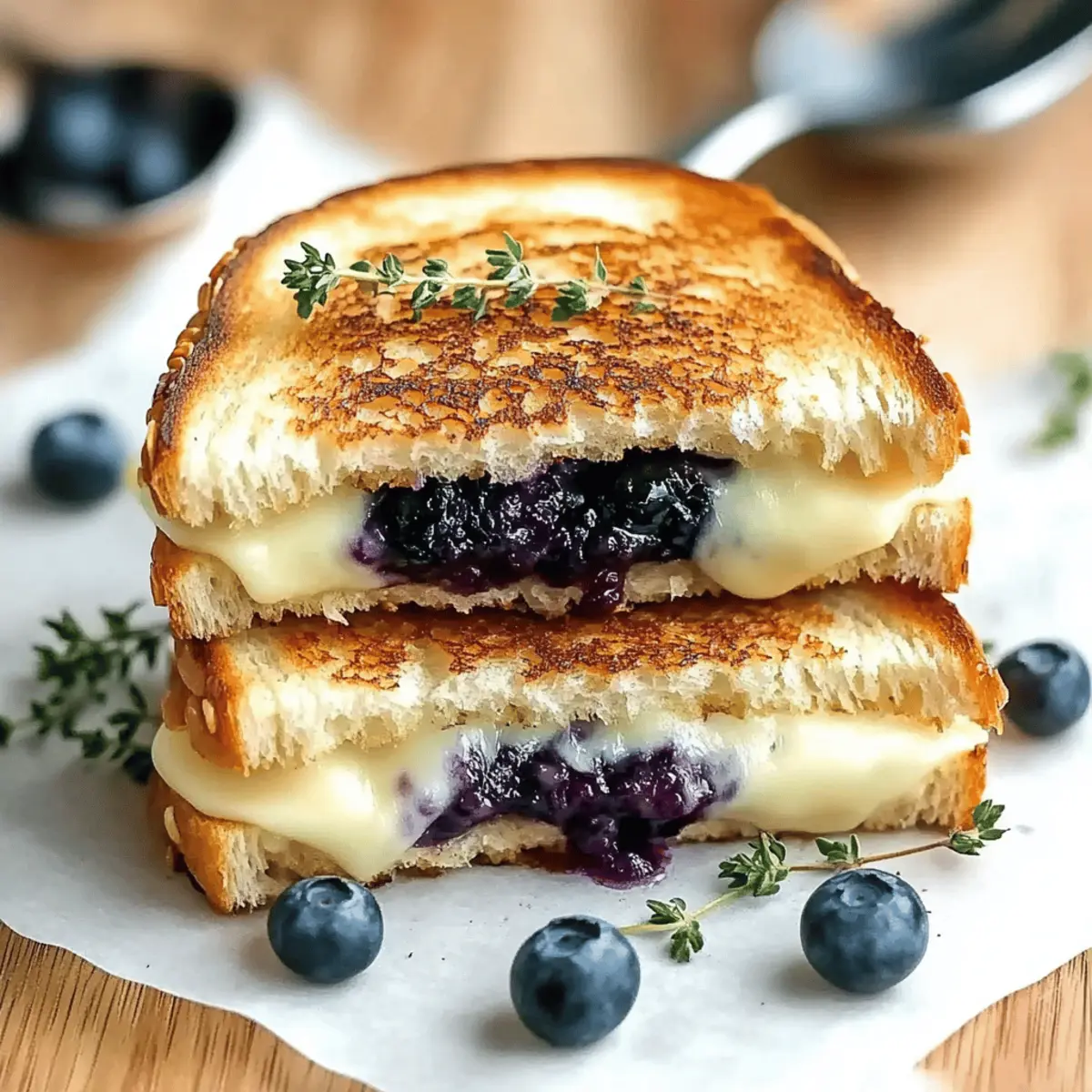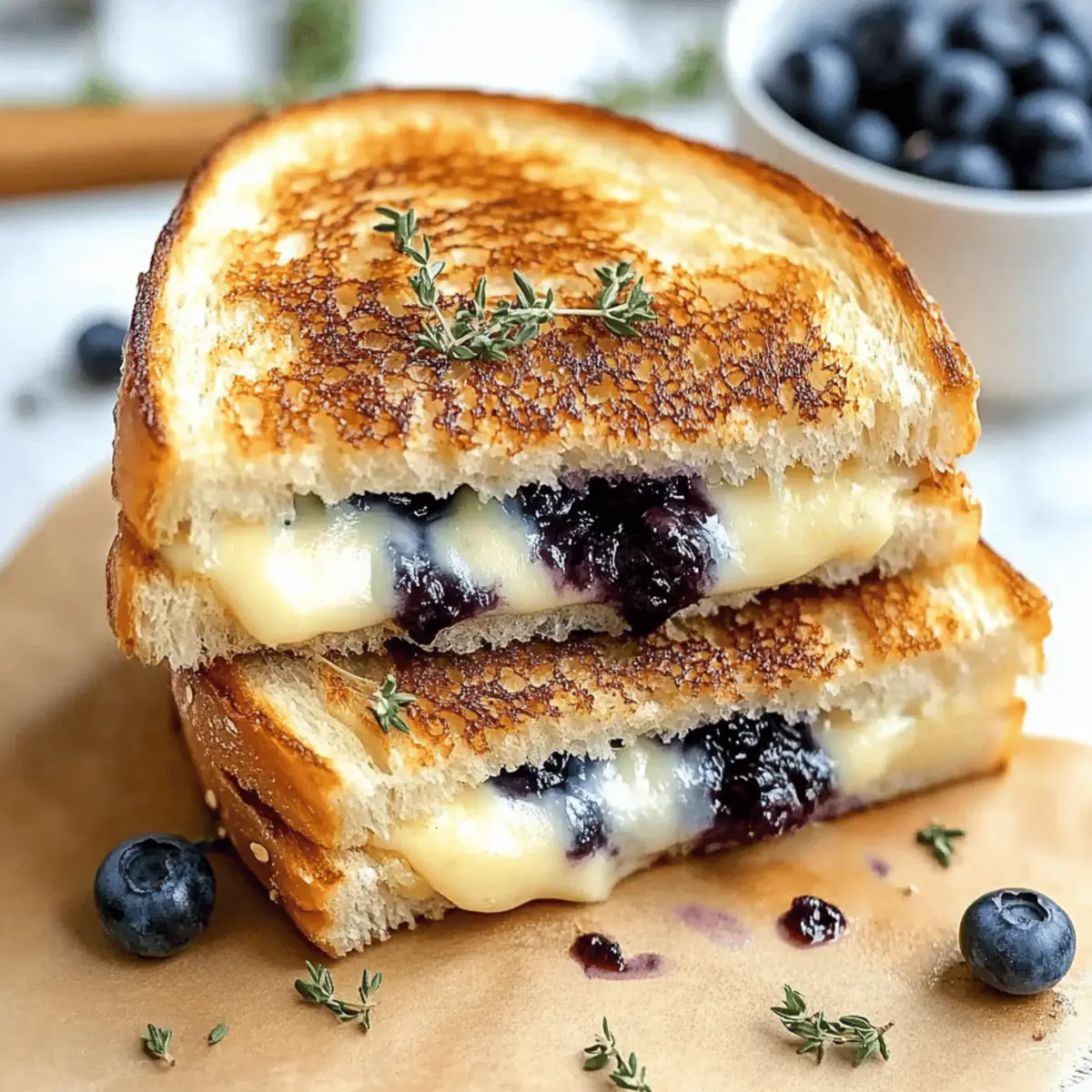 As I stood in the kitchen, the sweet aroma of cooking blueberries mingled with the rich scent of melting cheese, I realized I was on the brink of a flavor revelation. This Crispy Blueberry Grilled Cheese takes the classic comfort food and elevates it to heights you wouldn’t expect. With the perfect balance of crispy, buttery bread and gooey, melty cheeses, this dish transforms into something extraordinary thanks to a luscious blueberry compote infused with thyme. It’s not just a meal; it’s a culinary adventure that’s quick to prepare and completely customizable, making it perfect for cozy brunches or casual weeknight dinners. Curious about how this sweet-savory masterpiece comes together? Let’s dive into the delicious details! Why Choose Blueberry Grilled Cheese? Unique Flavor Fusion: This Crispy Blueberry Grilled Cheese brilliantly combines sweet-tart blueberries with savory, melted cheese for an exciting twist on a classic. Textural Bliss: Enjoy the crispy exterior that contrasts beautifully with the gooey cheese—each bite is pure delight! Customizable Adventure: Feel free to experiment with fruits or cheeses to make it your own; try strawberry or brie for a fun twist. Quick & Easy: You can whip this up in no time—ideal for brunch or weeknight dinners when you want big flavor without fuss. Crowd-Pleasing: Impress family and friends with a dish that’s sure to spark conversation, making it a showstopper at any gathering. Pair it with a refreshing salad or some cozy Tomato Soup for a meal that’s both delicious and satisfying! Blueberry Grilled Cheese Ingredients Get ready to indulge in a simple yet extraordinary flavor experience with this recipe! For the Sandwich Crusty Bread – Choose sourdough or artisan for the best crunch. Fresh Blueberries – Adds sweetness; feel free to swap in blackberries or raspberries for a twist. White Cheddar Cheese – Offers a sharp, tangy flavor; opt for medium to sharp for a richer taste. Mozzarella Cheese – Provides creaminess and excellent melt; whole milk mozzarella is best. Butter – Unsalted works best for frying, giving a golden, crispy finish. For the Blueberry Compote White Sugar – Sweetens the compote; adjust based on berry sweetness for your perfect flavor. Lemon Juice – Brightens the compote; fresh is best, but bottled works in a pinch. Lemon Thyme – Infuses aromatic flavor; regular thyme can replace if necessary. This Blueberry Grilled Cheese is not just a sandwich; it’s a delightful culinary experience waiting to happen! Step‑by‑Step Instructions for Crispy Blueberry Grilled Cheese Step 1: Make the Blueberry Compote In a medium saucepan, combine 1 cup of fresh blueberries, 1/4 cup of white sugar, 1 tablespoon of lemon juice, and 1 teaspoon of lemon thyme. Bring the mixture to a gentle boil over medium heat, stirring occasionally. Allow it to simmer for about 20 minutes until the compote thickens and the blueberries burst, resembling a syrupy consistency. Remove from heat and let it cool for 10 minutes before using in your Crispy Blueberry Grilled Cheese. Step 2: Assemble the Sandwich While the compote cools, lay out 8 slices of crusty bread on a clean surface. Generously spread the blueberry compote over 4 of the slices. Evenly sprinkle 1/2 cup of white cheddar cheese and 1/2 cup of mozzarella cheese on top of the compote, ensuring a melty texture. Place the remaining bread slices on top to form sandwiches, pressing down gently to secure the fillings. Step 3: Cook the Sandwiches Heat a large skillet over medium heat, and add 2 tablespoons of unsalted butter, allowing it to melt and coat the bottom of the pan evenly. Carefully place two of the assembled sandwiches in the skillet. Cover with a lid and grill for about 2-3 minutes, or until the bottom is beautifully golden and crispy. The cheese should start to melt, creating that gooey texture typical of a perfect Blueberry Grilled Cheese. Step 4: Flip and Finish Cooking Once the first side is golden brown, carefully flip the sandwiches using a spatula. Cook for another 2-3 minutes with the lid on, allowing the second side to achieve a delightful crispness. Check for a melty cheese interior with a warm, inviting aroma emanating from the sandwiches. Remove these sandwiches to a cutting board and repeat the cooking process with the remaining sandwiches. Step 5: Serve and Enjoy After grilling, optionally sprinkle the sandwiches with flaky sea salt and extra thyme for an aromatic touch. Slice each Crispy Blueberry Grilled Cheese in half diagonally, revealing the luscious filling. Serve warm with a side of your favorite soup or salad, and prepare for the delightful combinations of textures and tastes in every bite. What to Serve with Crispy Blueberry Grilled Cheese? Get ready to create a delightful meal that perfectly balances sweetness and savory goodness, elevating your dining experience. Tomato Soup: The classic pairing offers a creamy contrast to the crisp sandwich, making each bite a comforting delight. A warm bowl of soup acts as the perfect dip, enhancing the flavors. Mixed Green Salad with Vinaigrette: A fresh salad brings bright acidity and crunch, balancing the richness of the grilled cheese. Crisp greens and a tangy dressing will refresh your palate between bites. Chips or Crispy Vegetables: Crunchy sides like kettle-cooked chips or crunchy carrot sticks add a satisfying texture and a salty bite, creating a fun contrast to the soft and gooey sandwich. Sparkling Lemonade: A refreshing beverage with a hint of citrus perfectly complements the sweet-tart blueberries. The fizziness will enliven your meal, making it feel festive and vibrant. Fruit Salad: A light, colorful fruit salad can enhance the meal, echoing the sweetness of the blueberry compote. Include a variety of fruits for a refreshing and wholesome side. Creamy Coleslaw: The creamy, tangy flavor of coleslaw pairs surprisingly well with the crispy sandwich, adding a crunchy texture that beautifully b