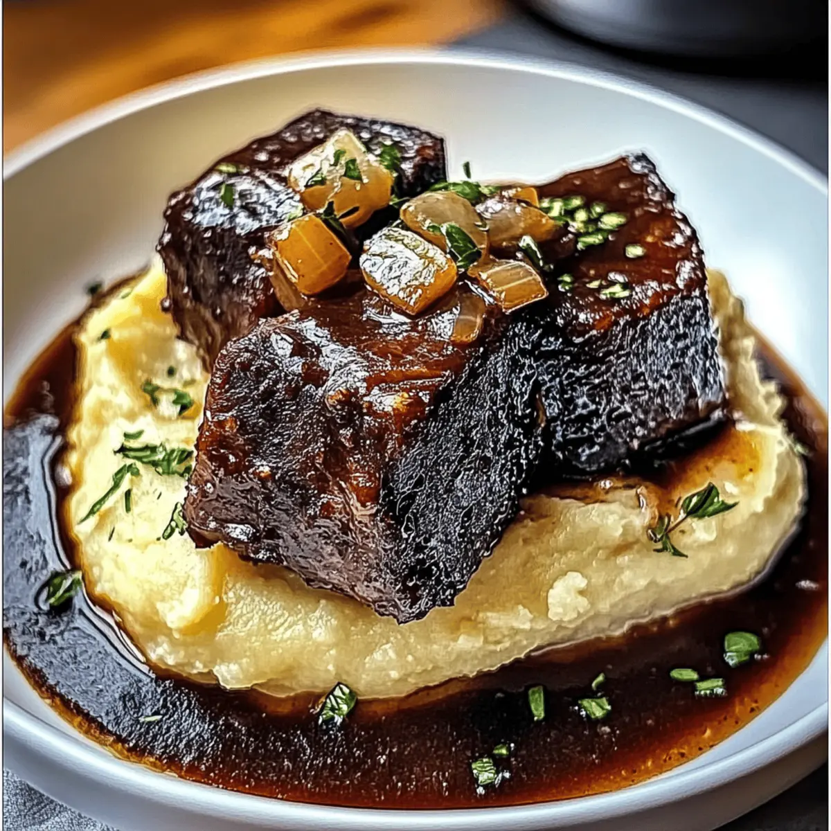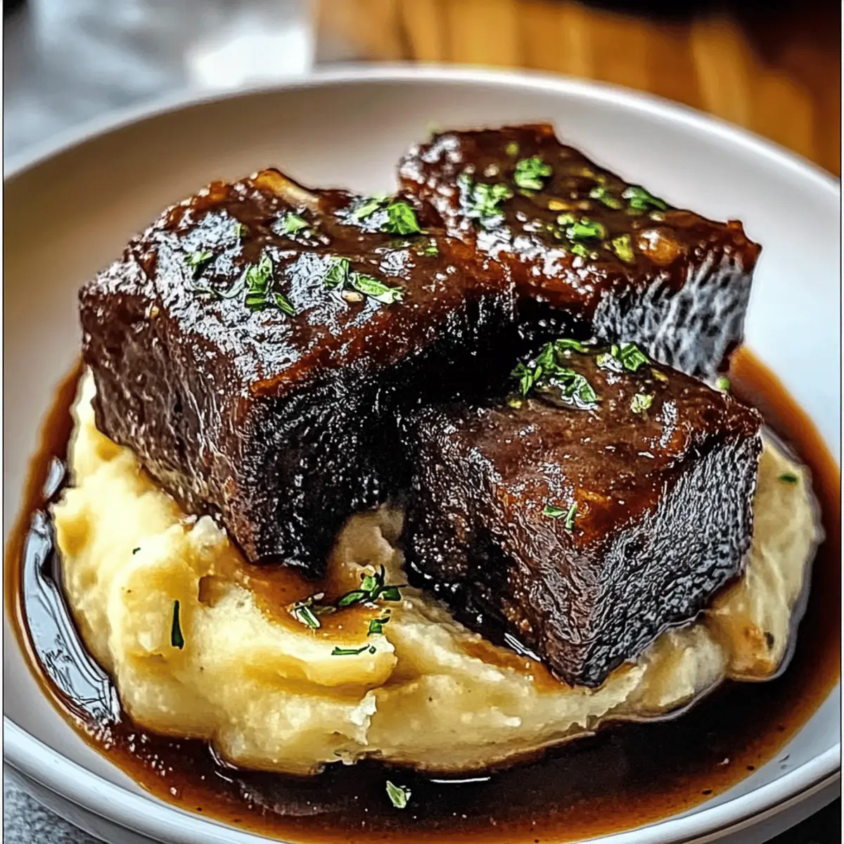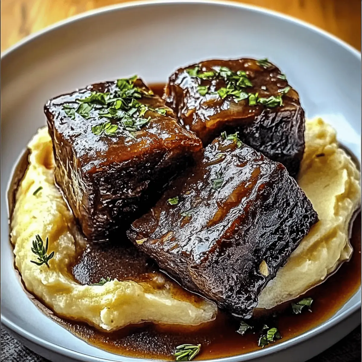 When the weather turns crisp, there’s something magical about the aroma of tender braised short ribs filling the kitchen. With each step of the cooking process—from searing to slow braising—I’m whisked away into a world of savory delight. This recipe for Braised Short Ribs with Garlic Mashed Potatoes takes comfort food to new heights, featuring fall-off-the-bone beef paired with creamy, garlicky potatoes that simply melt in your mouth. Not only is this dish a hearty feast that warms the soul, but it also satisfies those moments when you crave homemade goodness without hours of fuss. With just a Dutch oven and a bit of patience, you’ll create a dish that transforms an ordinary dinner into an extraordinary experience. Ready to learn how to bring this comforting classic to life? Let’s dive in! Why Choose Braised Short Ribs Tonight? Comforting Warmth: This recipe brings the ultimate cozy vibe, perfect for chilly nights when you crave heartwarming flavors. Effortless Elegance: With just a Dutch oven and a few ingredients, you’re set to impress without breaking a sweat! Flavor Explosion: The rich red wine combined with fresh garlic and herbs creates a depth of flavor you won’t forget. Versatile Sidekick: Pair these ribs with Garlic Roasted Chicken or a side of roasted root vegetables for a meal that caters to every palate. Leftover Heaven: Enjoy the convenience of leftovers that actually taste better the next day! Reheating couldn’t be easier. Perfect for Gatherings: Serve this dish at your next dinner party, and watch as it becomes the star of the meal, leaving guests raving about your culinary prowess! Braised Short Ribs with Garlic Mashed Potatoes Ingredients • Savor each bite of this comforting dish with the right ingredients that make your taste buds dance! For the Short Ribs Beef Short Ribs – Look for well-marbled pieces for maximum tenderness. Red Wine – Adds a rich depth to the braising liquid; for a non-alcoholic twist, use grape juice. Onions – These aromatics form the base of flavor; shallots can be a suitable substitute. Fresh Herbs (Thyme or Rosemary) – Enhance the aroma and flavor; dried herbs can work in a pinch. Seasoning (Salt & Pepper) – Essential for enhancing flavors throughout; adjust to your taste preference. For the Garlic Mashed Potatoes Potatoes (Yukon Gold or Russet) – Choose creamy potatoes for the perfect mash; they hold their texture well. Garlic – Fresh garlic provides a robust flavor; use more for extra garlicky goodness in your mash. Milk – Helps create a silky-smooth texture; cream can be used for an even richer taste. Butter – Adds richness to the mash; consider olive oil for a lighter option. With these ingredients on hand, you’re well on your way to creating mouthwatering braised short ribs with garlic mashed potatoes, the epitome of comfort food! Step‑by‑Step Instructions for Braised Short Ribs with Garlic Mashed Potatoes Step 1: Sear the Ribs Begin by heating your Dutch oven over medium-high heat. Once hot, add the beef short ribs and sear them on all sides for about 3-4 minutes until they develop a rich, golden-brown crust. This caramelization adds incredible flavor to your Braised Short Ribs with Garlic Mashed Potatoes. Step 2: Sauté Aromatics Remove the seared short ribs and set them aside on a plate. In the same pot, add diced onions and minced garlic, sautéing for about 2-3 minutes until they soften and release their aromatic fragrance. The fond left in the pot will enhance the flavor of your braising liquid. Step 3: Deglaze and Braise Pour in a cup of red wine, using a wooden spoon to scrape up any brown bits from the bottom of the pot. Allow the wine to simmer for about 2 minutes to reduce slightly. Return the short ribs to the pot, add fresh herbs, salt, and pepper, and cover tightly with a lid before reducing the heat to low. Let them braise gently for 2.5 to 3 hours, until the meat is fork-tender and succulent. Step 4: Prepare Garlic Mashed Potatoes While the ribs are braising, peel and chop your Yukon Gold or Russet potatoes into uniform pieces. In a large pot, bring salted water to a boil and add the potatoes along with several cloves of garlic. Cook for about 15-20 minutes, or until the potatoes are fork-tender and can be easily pierced. Step 5: Mash and Mix Once the potatoes are cooked, drain them thoroughly and return them to the pot. Add warm milk and butter, then mash until smooth and creamy, making sure not to overwork them to avoid a gluey texture. Season with salt and pepper to taste, and set aside while the ribs finish braising. Step 6: Serve After the short ribs have cooked to perfection, remove the pot from heat and let the meat rest for a few minutes. Plate a generous scoop of garlic mashed potatoes, add the tender, braised short ribs on top, and drizzle with the rich braising sauce. Garnish with fresh herbs for an added touch of elegance. Make Ahead Options These Braised Short Ribs with Garlic Mashed Potatoes are perfect for meal prep enthusiasts! You can sear the short ribs and prepare the braising liquid up to 24 hours in advance, then refrigerate everything in an airtight container to maintain their rich flavors. Additionally, mash the garlic potatoes a day ahead, allowing them to cool before storing in the fridge. To prevent browning, cover them tightly with plastic wrap. When you’re ready to serve, simply reheat the ribs in the braising liquid on the stovetop over low heat and warm the potatoes gently in the microwave, adding a splash of milk to restore creaminess. This way, you’ll have a deliciously comforting meal ready with minimal effort! What to Serve with Tender Braised Short Ribs with Garlic Mashed Potatoes To elevate your comforting dish into a beautifully complete meal, consider these delightful pairings. Roasted Root Vegetables: The natural sweetness of carrots and parsnips perfectly balances the savory flavors of the short ribs. Their caramelized edges add a satisfyi
