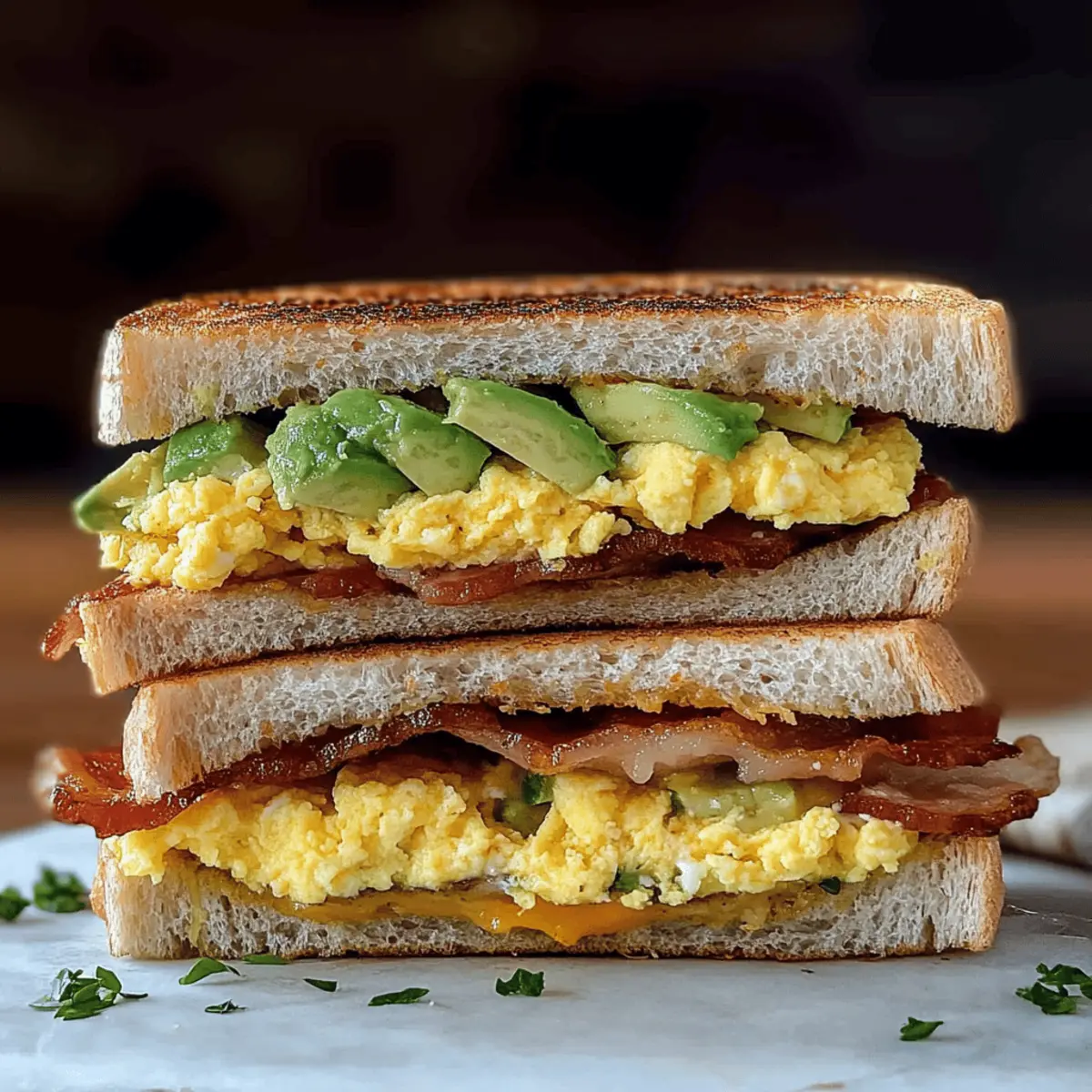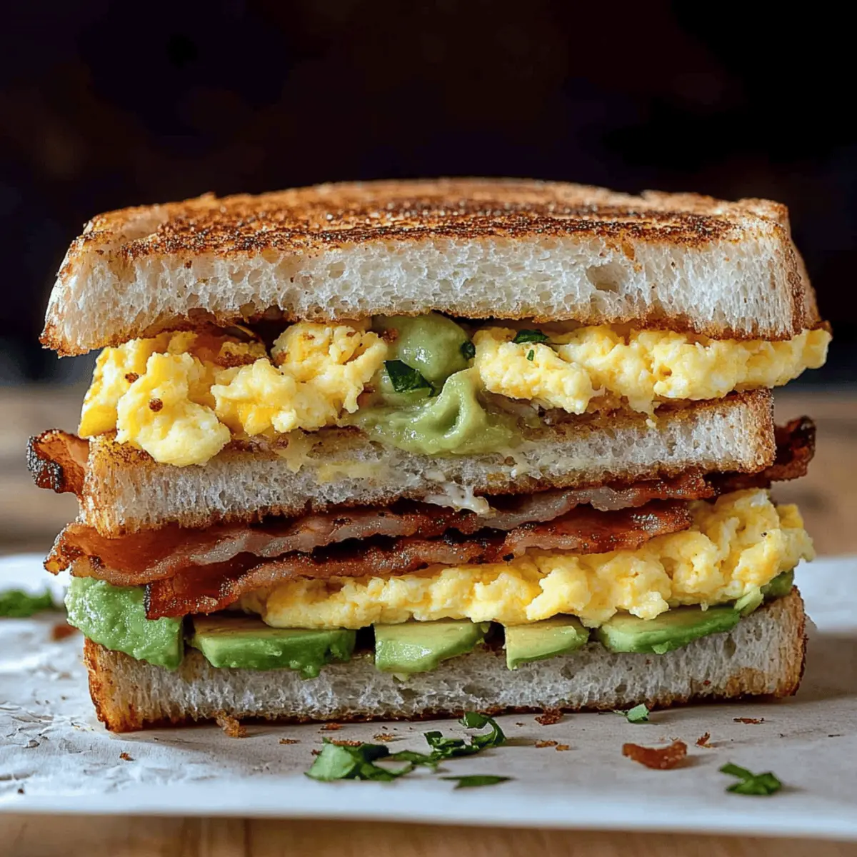 The aroma of sizzling bacon mingling with freshly scrambled eggs had me yearning for something truly satisfying. Enter my Hearty Breakfast Club Sandwich with Cowboy Butter—a deliciously layered masterpiece that transforms the ordinary breakfast into something extraordinary! Perfectly seasoned toast embraces creamy scrambled eggs, crispy bacon, savory sausage, and luscious avocado. This breakfast sandwich isn’t just hearty; it’s a comforting embrace to start your day right, offering a gourmet brunch experience without leaving your kitchen. Plus, it’s quick to prepare and a sure-fire crowd-pleaser, making it an ideal choice for both leisurely weekends and busy mornings. Curious about the secret ingredient that elevates this sandwich to brunch royalty? Let’s dive in! What Makes This Breakfast Sandwich Special? Decadent Layers: Each bite is a delightful blend of crispy bacon, savory sausage, and fluffy scrambled eggs. The layers harmonize beautifully, offering a comforting meal that’s hard to resist. Quick & Easy: No need for culinary expertise here! With simple steps, this sandwich comes together swiftly—perfect for busy mornings or lazy weekends. Versatile Ingredients: Feel free to swap in your favorites! Substitute turkey bacon with Egg Cheese Breakfast or experiment with different cheeses for a unique flavor profile. Hearty & Nourishing: Packed with protein and healthy fats from the avocado, this sandwich will keep you fueled throughout your day. Crowd-Pleasing: Impress family and friends with a meal that feels indulgent while being effortlessly homemade—ideal for brunch gatherings or just a special start to your day! Breakfast Club Sandwich Ingredients • Get ready to create a hearty masterpiece! For the Sandwich Thick-Cut Bacon – Adds a salty, crispy texture; swap for turkey bacon for a lighter option. Ground Pork Sausage – Provides seasoned meatiness; opt for pre-seasoned packages for time-saving convenience. Mild Cheddar Cheese – Melts to offer creamy flavor; try pepper jack for a spicy kick! Large Eggs – Essential for fluffy scrambled eggs; scrambled can easily be swapped for fried eggs. Kosher Salt and Black Pepper – Season to taste for the ultimate egg flavor enhancement. White Bread – A classic choice; whole grain or sourdough adds flavor and nutrition. Large Avocado – Brings creaminess and healthy fats; omit or replace with sliced heirloom tomatoes if desired. Unsalted Butter – For scrambling eggs and spreading on toast; enhances richness. For the Cowboy Butter Unsalted Butter – The base for this flavorful spread; adds a delightful creamy richness. Chopped Fresh Herbs – Use parsley, chives, or dill for a fresh flavor burst; elevate the whole sandwich experience! Garlic Powder – Adds depth and warmth; a little goes a long way to supercharge your cowboy butter. Lemon Juice – Brightens and balances the flavors; be careful not to overdo it! This delicious Breakfast Club Sandwich is sure to become a staple in your morning routine! Step‑by‑Step Instructions for Breakfast Club Sandwich Step 1: Cook Bacon Preheat your oven to 425°F (220°C). Line a baking sheet with foil for easy cleanup and arrange the thick-cut bacon in a single layer. Bake for 25-30 minutes, or until the bacon is crispy and golden brown. Keep an eye on it to avoid burning, then let it drain on a paper towel to remove excess grease. Step 2: Prepare Sausage Patties While the bacon cooks, shape the ground pork into larger patties. Heat a medium skillet over medium heat and add the patties. Cook for 3-4 minutes on each side until browned and cooked through, reaching an internal temperature of 160°F (70°C). In the last minute of cooking, place slices of mild cheddar cheese on top to melt beautifully. Step 3: Scramble Eggs After the sausage is cooked, wipe the skillet clean and reduce the heat to low. Add a tablespoon of unsalted butter to the pan and let it melt. Pour in the beaten large eggs seasoned with kosher salt and black pepper, stirring gently as they cook. Continue stirring until the eggs thicken and form soft curds, about 3-4 minutes. Step 4: Assemble Sandwich Once all components are ready, it’s time to create your Breakfast Club Sandwich. Start by spreading cowboy butter generously on each slice of toasted white bread. Layer on the sausage patty, followed by two crispy bacon slices, creamy avocado slices, and a generous portion of fluffy scrambled eggs. Top with a final slice of toast and secure the stack with a toothpick. Step 5: Serve Carefully slice your hearty Breakfast Club Sandwich into triangles for a beautiful presentation. Serve immediately while the layers are warm and inviting. These sandwiches are perfect for sharing, and they promise to bring comfort to your breakfast table! Breakfast Club Sandwich Variations Feel free to get creative with your Breakfast Club Sandwich—let your taste buds lead the way! Dairy-Free: Replace cheese with avocado slices or a dairy-free cream cheese alternative for a rich, creamy texture. Spicy Kick: Mix in jalapeños or a drizzle of hot sauce into your scrambled eggs for an exhilarating heat that spices things up! Vegetarian Delight: Swap sausage for hearty grilled mushrooms or seasoned tofu, making it a satisfying meat-free option. Herb-Infused: Add fresh herbs like basil or cilantro to your scrambled eggs for a freshness that brightens the entire sandwich. Bread Switch-Up: Experiment with different bread varieties—try ciabatta or a flaky croissant for a delightful twist on the classic! Savory Cravings: Incorporate sautéed spinach or roasted red peppers into your sandwich layers for added flavor and a beautiful pop of color. Breakfast Sweetness: For a unique experience, add thin slices of apple or pear; the slight sweetness contrasts beautifully with savory flavors. For even more breakfast inspiration, don’t forget to check out my recipe for a delicious Hawaiian Roll Breakfast or try creating fun variations like t
