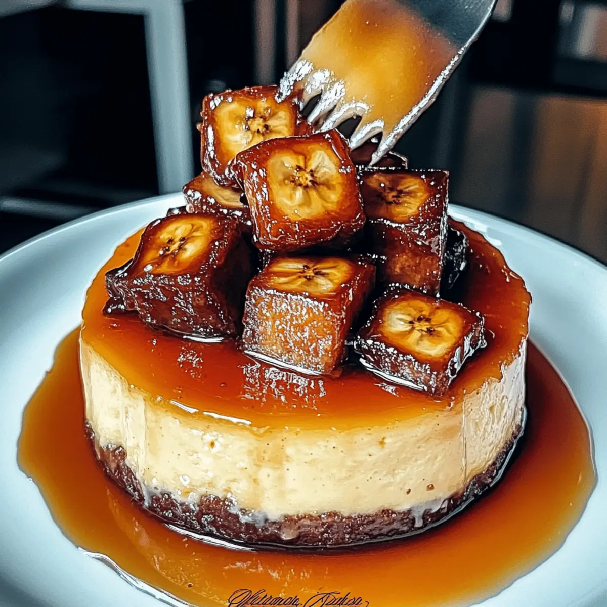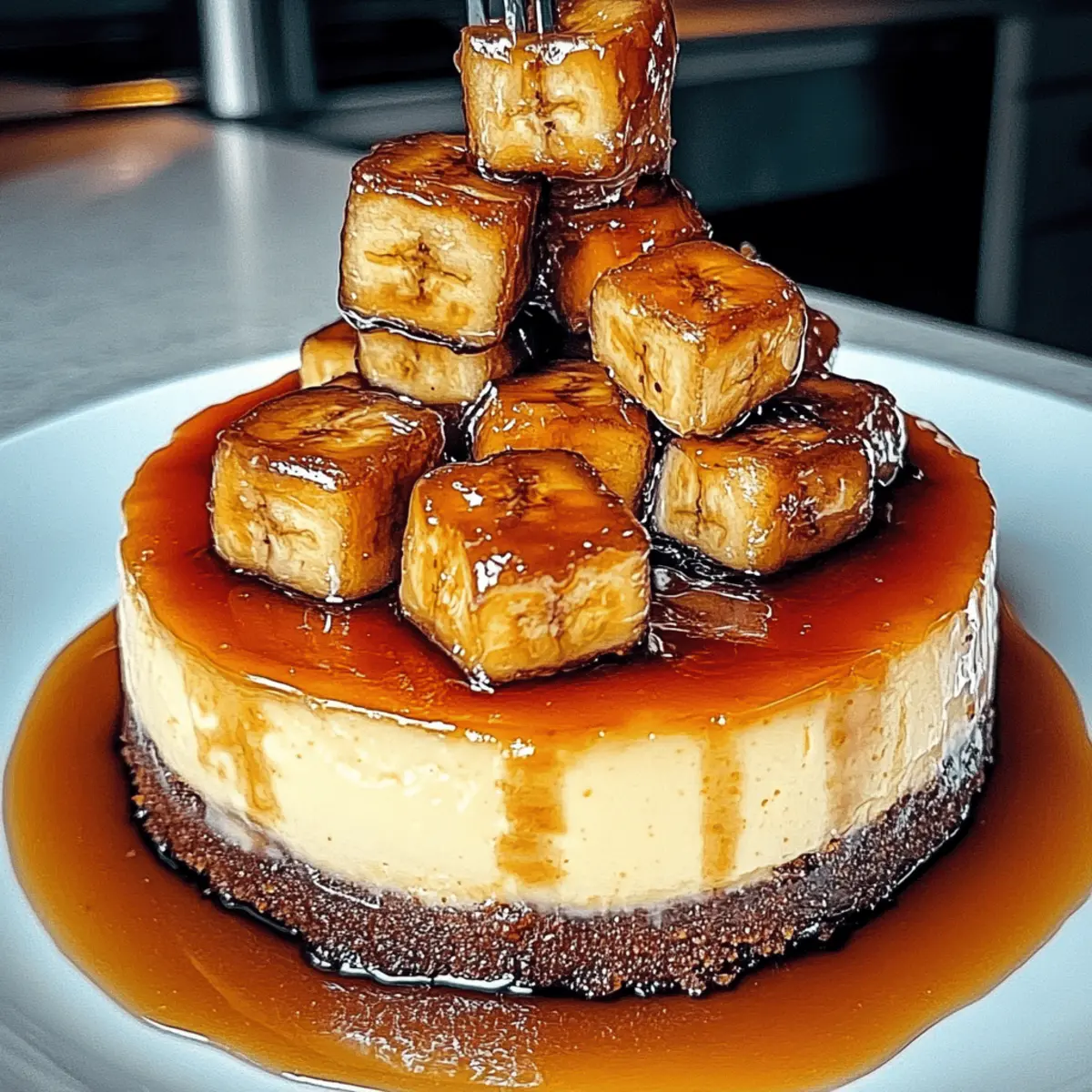 As I stood in my kitchen, the sweet aroma of caramelized bananas danced around me, creating an almost magical atmosphere. This Caramelized Banana Cheesecake with Rum Glaze isn’t just dessert; it’s an indulgent experience that elevates any gathering. With its rich and creamy texture paired with the warm sweetness of caramelized bananas, this cheesecake becomes a guaranteed crowd-pleaser. Plus, the luxurious rum glaze adds a depth of flavor that takes it over the top—making it the perfect choice for intimate evenings or festive celebrations. Whether you’re a seasoned home chef or simply someone craving a delightful homemade treat, you’re in for a real delight. Ready to dive into a slice of happiness? Let’s make it together! Why is this cheesecake irresistible? Indulgence at Its Finest: This Caramelized Banana Cheesecake is the perfect way to impress your guests or treat yourself! Rich, Creamy Texture: The smooth filling paired with caramelized bananas creates a heavenly bite that’s truly unforgettable. Crowd-Pleasing Appeal: Perfect for any occasion, this dessert is guaranteed to be a hit at family gatherings or dinner parties. Time-Saving Treat: With simple ingredients and straightforward steps, you can whip up this delightful cheesecake without a fuss. Unique Flavor Combination: The addition of dark rum glaze brings a sophisticated twist that elevates the traditional cheesecake experience. For even more delicious ideas, don’t miss my Fried Strawberry Cheesecake or try out the creamy Vegan Mango Cheesecake for a fresh take on dessert! Caramelized Banana Cheesecake Ingredients For the Crust • Graham Crackers – These provide the base structure for the crust; substitute with gluten-free crackers for a gluten-free option. • Butter – Binds the crust ingredients together; can use coconut oil for a dairy-free version. • Granulated Sugar – Adds sweetness to enhance both the crust and filling; brown sugar can be used for a deeper flavor in the crust. For the Filling • Full-Fat Cream Cheese – Delivers a rich, creamy texture to the filling; avoid whipped cream cheese for optimal results. • Eggs – Provides structure and stability; ensure they are at room temperature for the best outcome. • Sour Cream – Contributes tanginess and creaminess; can be replaced with Greek yogurt. • Vanilla Extract – Enhances the flavor; can be omitted if desired. For the Topping • Ripe Bananas – The star of the show—sweet and perfectly caramelized; fresh bananas yield the best results. • Brown Sugar – Used for caramelizing bananas and making the rum glaze; more depth of flavor is a bonus! • Dark Rum – Adds depth and richness to the glaze; substitute with rum extract for a non-alcoholic version. For the Rum Glaze • Butter – Helps to bind the ingredients together and adds richness; use unsalted for better control of saltiness. • Additional Brown Sugar – Intensifies sweetness for the glaze; keep an eye on it to avoid burning while simmering. Step‑by‑Step Instructions for Caramelized Banana Cheesecake with Rum Glaze Step 1: Prepare Crust Preheat your oven to 350°F (175°C). Crush 1 ½ cups of graham crackers in a food processor until fine. In a mixing bowl, combine the crushed crackers with 6 tablespoons of melted butter and ¼ cup of granulated sugar until it resembles wet sand. Press the mixture firmly into the bottom of a springform pan, creating an even layer. Bake for 8 minutes, then remove and let it cool completely. Step 2: Make Cheesecake Filling In a large mixing bowl, use an electric mixer to beat 16 ounces of softened cream cheese until smooth and creamy, about 2-3 minutes. Gradually add 1 cup of granulated sugar, mixing until well combined. Add 3 large eggs one at a time, mixing gently after each addition. Finally, fold in 1 cup of sour cream and 1 teaspoon of vanilla extract until just combined. The mixture should be fluffy and free of lumps. Step 3: Bake Cheesecake Pour the cheesecake filling over the cooled crust in the springform pan. Smooth the top with a spatula for an even surface. Bake in the oven at 325°F (163°C) for 55-65 minutes. The edges should be set with a slight jiggle in the center; this indicates it’s ready to come out. Avoid overcooking, as it will continue to firm up while cooling. Step 4: Cool Cheesecake Once baked, turn off the oven and crack the door open slightly. Allow the cheesecake to cool in the oven for 1 hour. Afterward, move it to the refrigerator and chill for at least 4 hours, or ideally overnight, to enhance the flavor and texture of the Caramelized Banana Cheesecake with Rum Glaze. Step 5: Caramelize Bananas In a skillet over medium heat, melt 2 tablespoons of butter. Slice 2 ripe bananas and add them to the skillet, sprinkling with ¼ cup of brown sugar. Cook for 4-5 minutes, gently flipping until the bananas are golden brown and glossy. Remove them from the heat and allow them to cool slightly before using them as a topping. Step 6: Prepare Rum Glaze In a small saucepan, combine ½ cup of brown sugar, 2 tablespoons of butter, and ¼ cup of dark rum. Cook over medium heat, stirring constantly, until the mixture simmers and thickens—about 3-4 minutes. If too thin, mix in a teaspoon of cornstarch dissolved in water to achieve desired consistency. Remove from heat and let it cool slightly. Step 7: Assemble Carefully remove the chilled cheesecake from the springform pan and place it on a serving platter. Top it generously with the caramelized bananas, making sure to distribute them evenly. Drizzle the warm rum glaze over the bananas and cheesecake, allowing it to soak in slightly. Your Caramelized Banana Cheesecake with Rum Glaze is now ready to serve! What to Serve with Caramelized Banana Cheesecake with Rum Glaze Indulge in a full-flavored dessert experience by pairing delightful accompaniments with this creamy delicacy. Whipped Cream: The light, airy texture enhances the richness of the cheesecake, offeri
