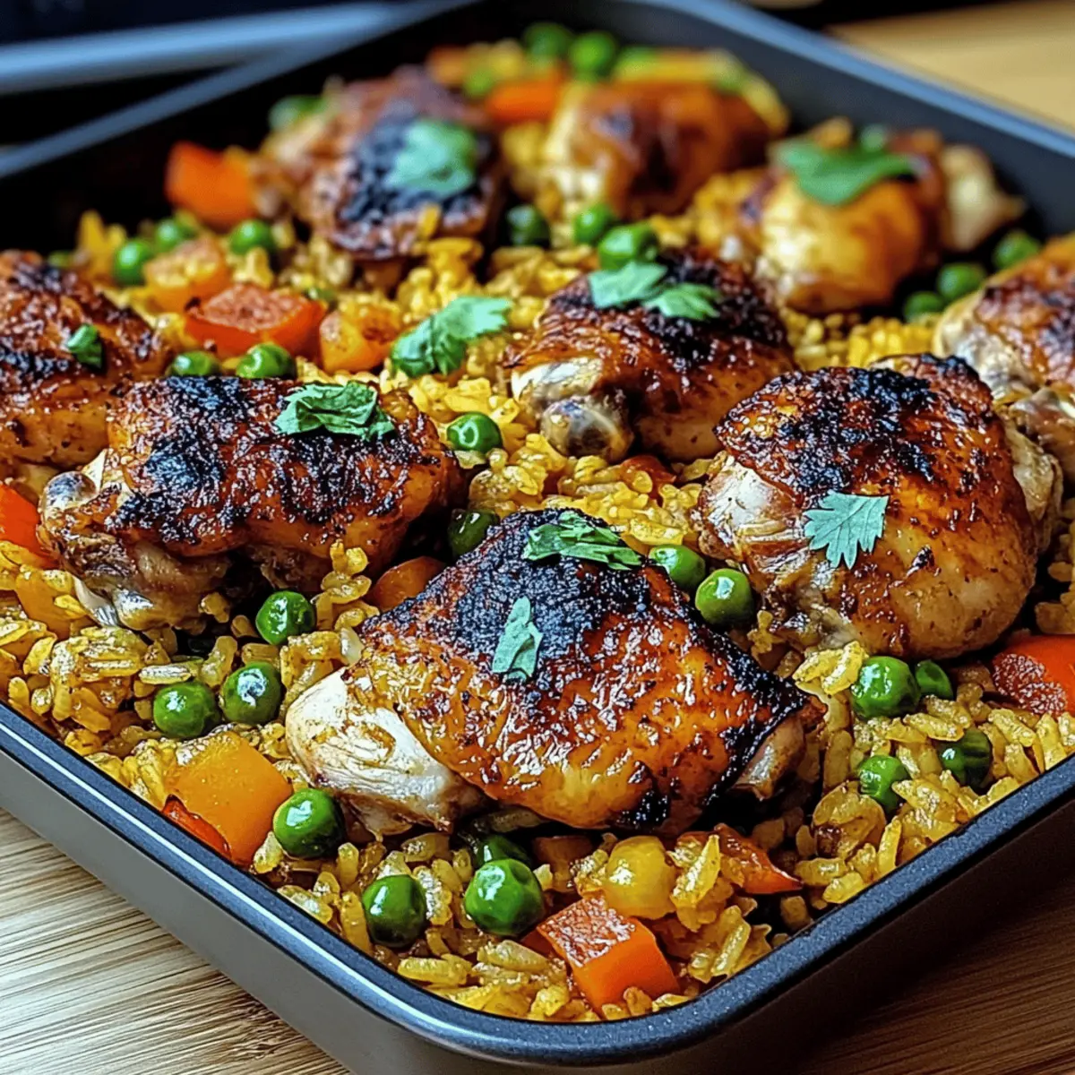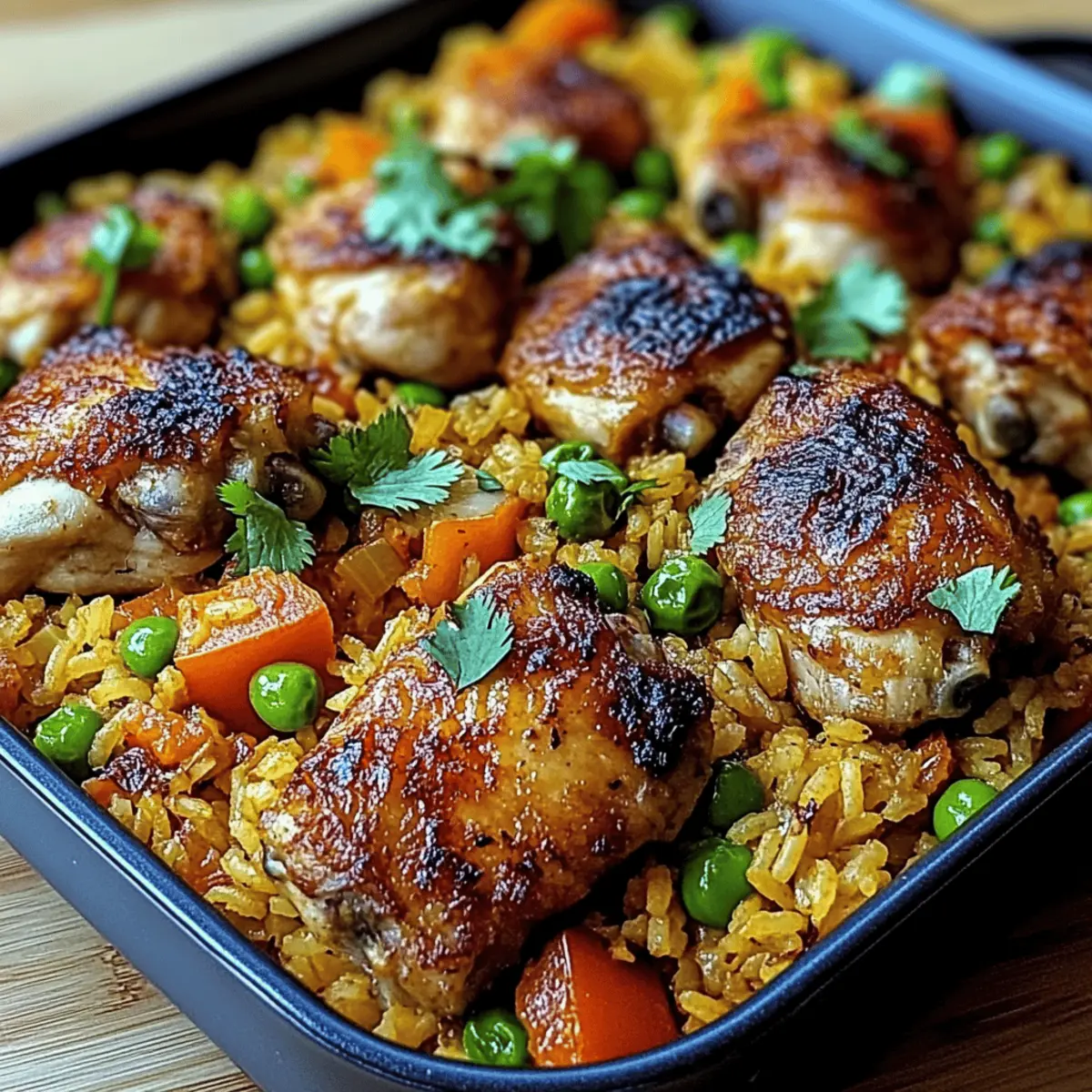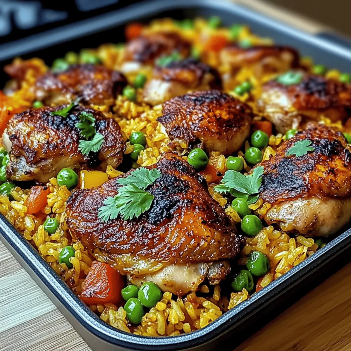 As the tropical sun dips below the horizon, the enticing aroma of Caribbean spices fills the air, inviting me to gather everyone around the table. This is where my Quick and Easy Caribbean Chicken and Rice recipe comes in—your new go-to one-pan meal that effortlessly transforms busy weeknights into family feasts. With tender chicken, fluffy rice, and a vibrant medley of colorful vegetables, this dish is packed with flavor and love. The best part? It’s ready in just 45 minutes, making it perfect for busy nights, yet it’s so satisfying that everyone from kids to adults will be wanting seconds. Are you ready to take your taste buds on a flavorful getaway without ever leaving your kitchen? Why is Caribbean Chicken and Rice Irresistible? Simplicity in Preparation: This dish is a one-pan wonder that requires minimal fuss, making it a breeze for any home cook. Bursting with Flavor: The blend of spices and fresh ingredients creates a lively taste that transports you straight to the Caribbean. Family-Friendly Delight: Kids and adults alike will love the colorful presentation and savory goodness—perfect for any weeknight meal! Versatile Ingredients: Feel free to swap in your favorite veggies or grains, like quinoa for a nutritious twist. Quick to Make: In just 45 minutes, you can have a satisfying dinner on the table that brings everyone together. Consider pairing it with a side of fried plantains for a complete island experience! Caribbean Chicken and Rice Ingredients • Discover the essential components of this colorful dish! For the Chicken Olive Oil – Adds richness and aids in sautéing; substitute with any cooking oil or butter. Boneless Skinless Chicken Thighs – Provides rich flavor and protein; try chicken breast or firm tofu for a vegetarian version. Salt – Enhances flavor; adjust to your taste. Black Pepper – Adds mild heat; use a different ground pepper for a spicy twist. Garlic Powder – Contributes savory depth; fresh minced garlic can be a great substitute. Onion Powder – Enhances flavor; feel free to swap in fresh diced onion. Paprika – Adds sweetness and vibrant color; substitute with smoked paprika for a different flavor profile. Cayenne Pepper – Adds optional heat; adjust based on your spice preference. For the Vegetables Onion – Adds sweetness and texture; no substitutions necessary. Red Bell Pepper – Delivers sweetness and a pop of color; use any color bell pepper if preferred. Garlic – A fresh flavor component; increase for a stronger garlic taste. Frozen Peas – Contributes color and subtle sweetness; any frozen mixed vegetables can work as a substitute. For the Rice Base Long-Grain White Rice – Acts as the dish’s hearty base; consider quinoa or brown rice as healthier alternatives. Diced Tomatoes (canned, undrained) – Adds moisture and acidity; fresh diced tomatoes can also be used with moisture adjustments. Chicken Broth – Infuses depth of flavor; vegetable broth is a good option for a vegetarian version. Black Beans (canned, rinsed, drained) – Adds protein and fiber; substitute with other beans like kidney or pinto. For Garnish and Serving Fresh Cilantro – Adds a fresh, herby finish; parsley is a milder substitute. Lime Wedges – Bring a zesty kick; lemon wedges can serve the same purpose. This delightful combination promises a satisfying experience in every bite, making your Caribbean Chicken and Rice a meal to remember! Step‑by‑Step Instructions for Caribbean Chicken and Rice Step 1: Heat the Oil Start by heating 2 tablespoons of olive oil in a large skillet over medium-high heat. Allow the oil to shimmer, indicating it’s hot and ready, which should take about 1–2 minutes. This step is crucial for achieving that delightful golden-brown sear on your chicken pieces in the upcoming step. Step 2: Sear the Chicken Add 1 pound of boneless, skinless chicken thighs to the skillet, ensuring they are in a single layer for even cooking. Season with salt, black pepper, garlic powder, onion powder, paprika, and optional cayenne pepper. Cook the chicken for 5–7 minutes, flipping halfway through until both sides are browned and edges look crisp. Once browned, remove the chicken from the pan and set aside. Step 3: Sauté the Vegetables In the same skillet, add 1 chopped onion and 1 diced red bell pepper. Sauté the vegetables over medium heat for about 3–4 minutes until the onion is translucent and the peppers are tender. Then, stir in 2 minced garlic cloves for the last minute to infuse that wonderful aroma, making this Caribbean Chicken and Rice even more delicious. Step 4: Toast the Rice Next, add 1 cup of long-grain white rice to the skillet, stirring it well to combine with the sautéed vegetables. Toast the rice for 1–2 minutes, allowing it to absorb the flavors and slightly turn golden. This step enhances the overall flavor of your Caribbean Chicken and Rice dish. Step 5: Combine Ingredients Pour in 1 can of diced tomatoes (undrained), 2 cups of chicken broth, and 1 cup of rinsed black beans into the skillet. Then, return the cooked chicken to the pan, stirring everything together well. Increase the heat and bring the mixture to a boil, allowing it to bubble joyously for a minute. Step 6: Simmer the Dish Once boiling, reduce the heat to low and cover the skillet. Let it simmer for 20 minutes undisturbed, allowing the rice to absorb the broth and meld the flavors perfectly. After this time, the rice should be tender and the dish aromatic, ready for the next step. Step 7: Add the Peas Carefully add 1 cup of frozen peas on top of your chicken and rice mixture. Cover the skillet again and cook for an additional 5 minutes to heat through. The peas will add a burst of color and sweetness to your Caribbean Chicken and Rice, making it even more delightful. Step 8: Fluff and Serve Finally, remove the skillet from the heat and let it sit, covered, for 5 minutes. Afterward, use a fork to gently fluff the rice and distribute the chicke