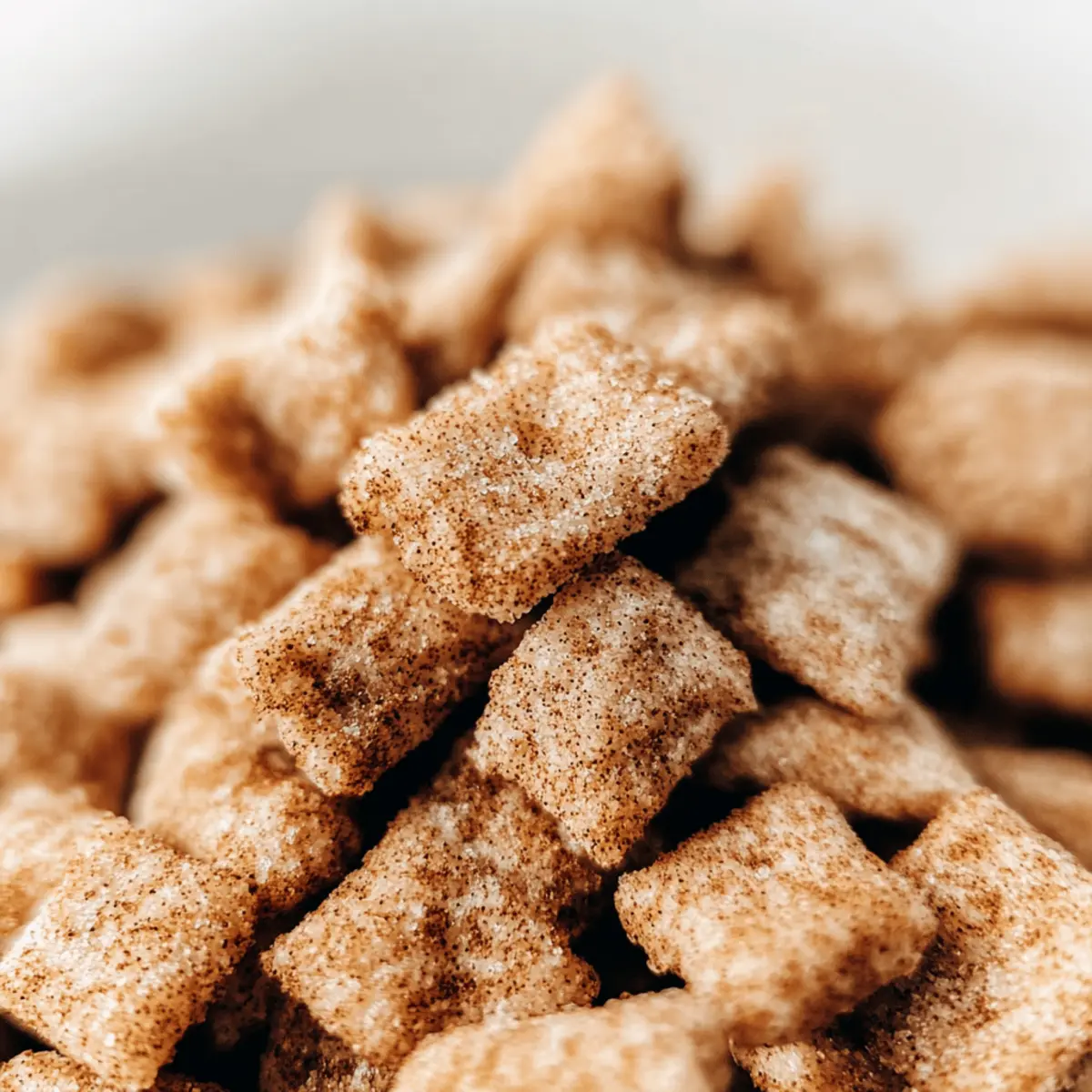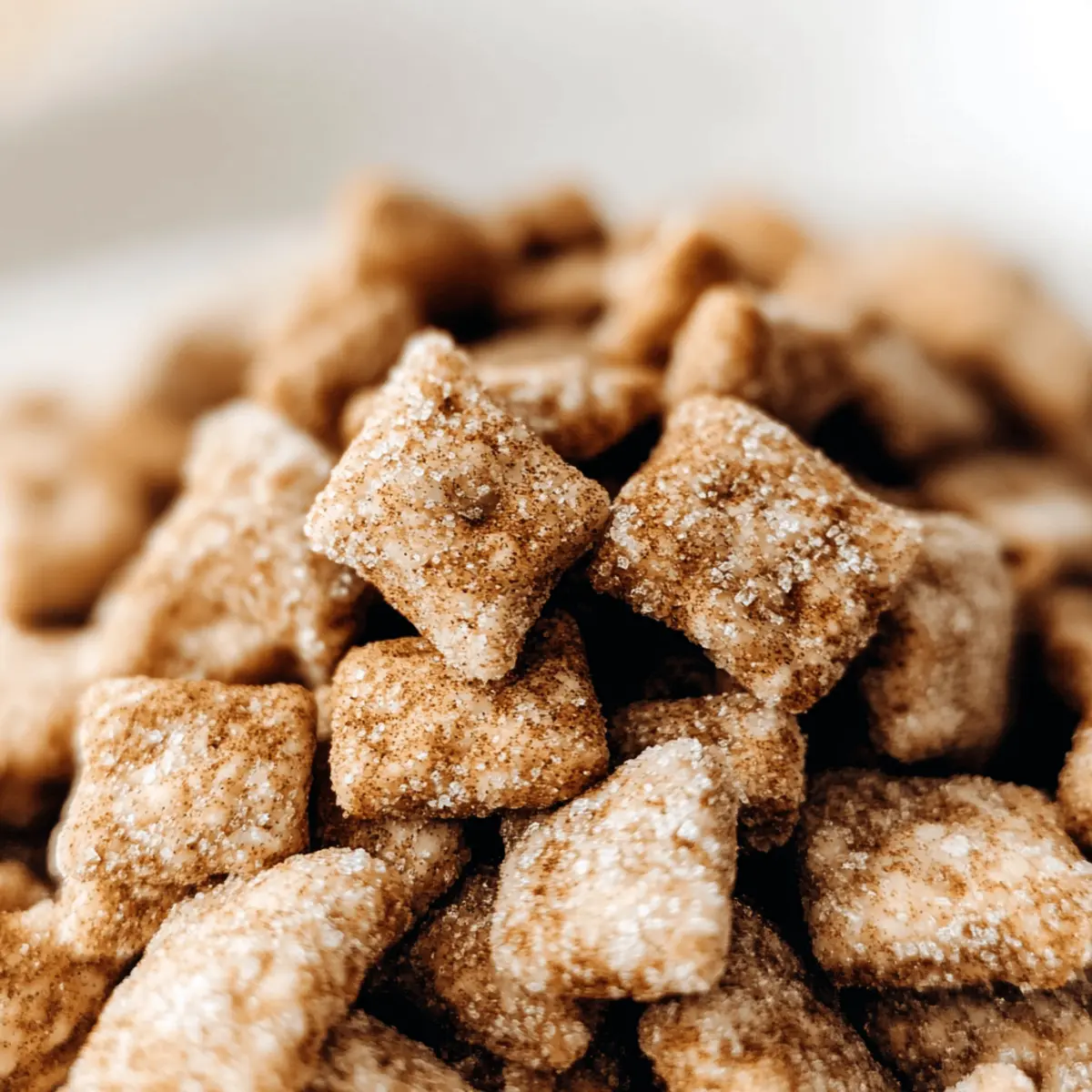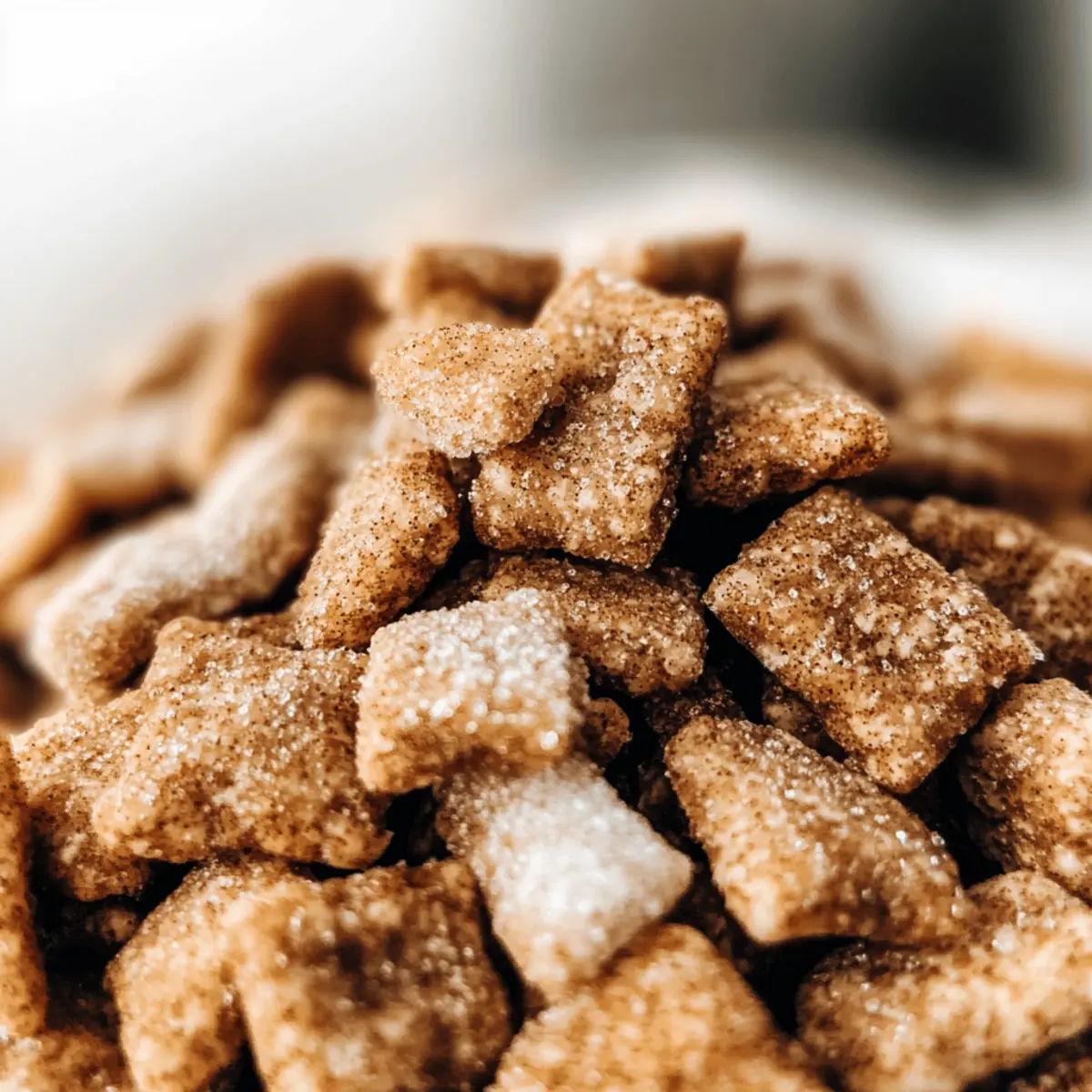 As the crisp autumn air begins to swirl, I find myself craving cozy flavors that wrap me in warmth. That’s when my thoughts turn to Chai Snickerdoodle Puppy Chow—a delightful no-bake snack that marries the aromatic spices of chai with the nostalgic sweetness of snickerdoodles. This recipe is not only incredibly simple to whip up, but it’s also vegan, gluten-free, and nut-free, making it a perfect treat for a variety of dietary preferences. With a creamy white chocolate and SunButter coating that’s simply irresistible, it’s an excellent choice for festive gatherings or thoughtful homemade gifts. Why settle for store-bought snacks when you can create this comforting, sweet crunch at home? Ready to dive into a bowl of bliss? Why Is This Puppy Chow So Addictive? Irresistible flavors come together beautifully in this Chai Snickerdoodle Puppy Chow, ensuring every bite is unforgettable. No-Bake Ease means you can whip it up in no time, making it ideal for busy schedules. Vegan and Gluten-Free options guarantee enjoyment for everyone, even those with dietary restrictions. Customizable sugar coatings let you tailor the sweetness to your liking, while cozy chai spices create a warm, inviting atmosphere perfect for sharing. Why not elevate your snack game and serve this delightful treat at your next gathering? You’ll want to keep a stash handy, as it’s perfect for any occasion! Chai Snickerdoodle Puppy Chow Ingredients Get ready to create a cozy masterpiece! For the Coating White Chocolate – Provides a sweet and creamy coating; substitute with semi-sweet or dark chocolate for a richer flavor. SunButter – Acts as a nut-free alternative to peanut butter, adding a nutty flavor; if using thicker SunButter, consider adding a touch of oil for easier mixing. For the Cereal Base Cereal (e.g., Chex) – The base structure of your puppy chow; any similar puffed cereal can be used. For the Chai Spice Mix Chai Spice Mix – A blend of warm spices (cinnamon, nutmeg, ginger, etc.) to complement the sweetness; premade mixes can be substituted. For Sugar Coating Options Coarse Turbinado Sugar – Adds a crunchy and sparkly texture; can be replaced with powdered sugar for a classic finish. Powdered Sugar – Provides a classic sugary coating that results in a less clumpy texture; optional and can replace coarse sugar for a smoother finish. This Chai Snickerdoodle Puppy Chow is sure to become a favorite in your home, perfect for festive gatherings and cozy nights alike! Step‑by‑Step Instructions for Chai Snickerdoodle Puppy Chow Step 1: Prepare the Chai Spice Mix In a small bowl, combine your favorite chai spices such as cinnamon, nutmeg, and ginger. Aim for a balanced flavor by being light on black pepper. Whisk the spices together until well mixed and set this fragrant blend aside, ready to add warmth to your Chai Snickerdoodle Puppy Chow. Step 2: Mix Coating Ingredients In a large microwave-safe bowl, combine white chocolate and SunButter. Heat in the microwave in 30-second intervals, stirring in between until the mixture is completely melted and smooth. This creamy coating will envelop your puppy chow, so ensure it’s well blended before moving on to the next step. Step 3: Coat the Cereal Add your choice of puffed cereal, like Chex, to the melted coating. Using a large spatula or your hands, gently mix until each piece of cereal is thoroughly coated with the mixture, leaving no dry spots. This step should yield a beautiful, glossy finish, showcasing your Chai Snickerdoodle Puppy Chow’s enticing texture. Step 4: Prepare Sugar Coating In a separate bowl, mix your chosen sugar (coarse turbinado or powdered) with the prepared chai spice mix. Stir well to evenly distribute the spices throughout the sugar. This coating will enhance the sweetness and provide a delightful crunch, setting the stage for the next step that brings everything together. Step 5: Coat with Sugar Transfer the coated cereal into a sizable ziplock bag or a bowl with the sugar mixture. If using a bag, seal it tightly and shake until every piece is well coated. If using a bowl, mix gently with a spatula for even coverage. Your Chai Snickerdoodle Puppy Chow will start to take on that classic sweet sparkle! Step 6: Set to Chill Spread the sugar-coated cereal mixture onto a lined baking sheet, ensuring it’s in a single layer to allow for even setting. Place the baking sheet in the refrigerator and chill for 4 hours, or overnight, for the best results. This step is crucial for allowing the chocolate to harden and create those perfect clusters. Step 7:Finalize Once chilled, remove your Chai Snickerdoodle Puppy Chow from the fridge. Break apart any clusters and transfer them to airtight containers for storage. Keep your delicious snack refrigerated or frozen for the best flavor and texture. Now it’s ready to share or indulge in your cozy moments! Chai Snickerdoodle Puppy Chow Variations Feel free to get creative with your Chai Snickerdoodle Puppy Chow and explore delightful twists that make it your own! Nut-Free Twist: Substitute SunButter with pumpkin seed butter or tahini to accommodate nut allergies. Each alternative adds its unique flavor while keeping this snack deliciously vegan. Boosted Texture: Mix in chopped nuts or dried fruits like cranberries or raisins for an extra layer of flavor and crunch. This addition transforms your puppy chow into a delightful trail mix. Spice it Up: Swap out the chai spice mix for pumpkin spice to capture the essence of autumn in every bite. It’s a playful twist that stays true to cozy vibes! Chocolate Lovers: Replace white chocolate with semi-sweet or dark chocolate for a richer, more decadent treat. The darker flavor pairs beautifully with the spices. Crispy Coating: Instead of the traditional sugar coatings, try dusting your puppy chow with crushed graham crackers or cinnamon sugar for a crunchy, sweet surprise. Maple Sweetness: Drizzle pure maple syrup over your coated cereal before 