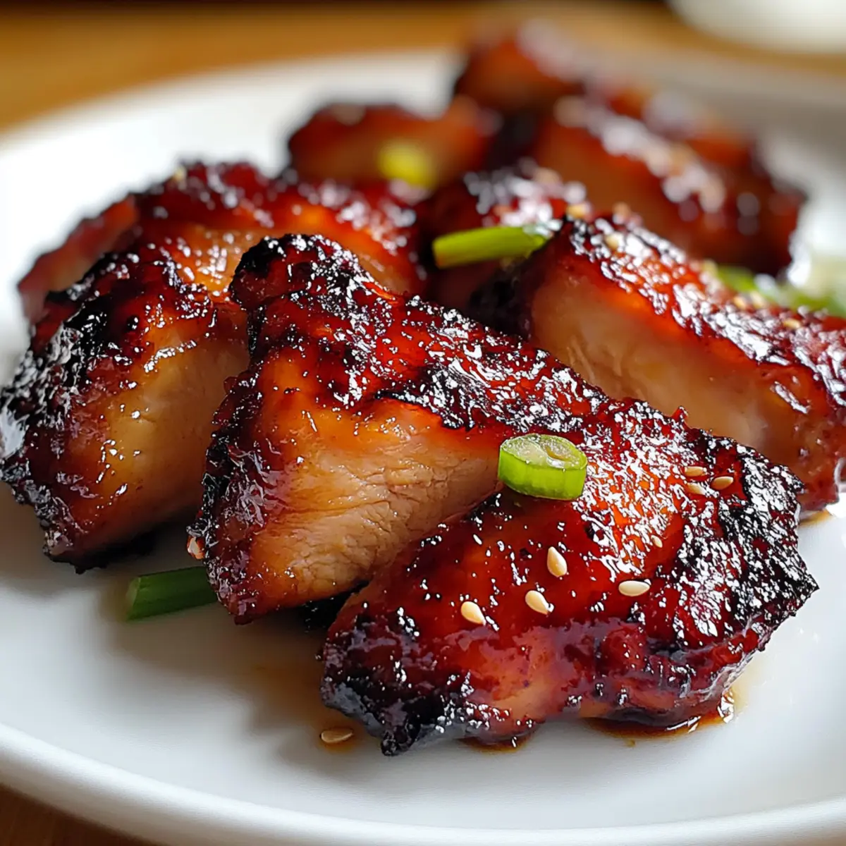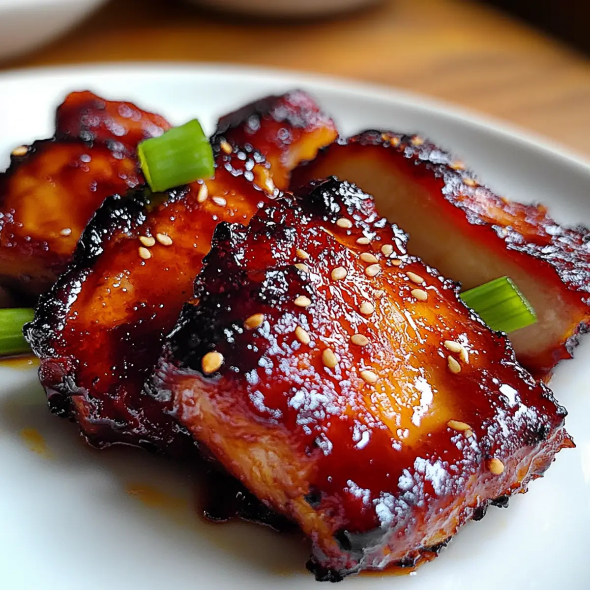Facebook Twitter Pinterest LinkedInThe savory aroma of sticky Char Siu Chicken wafts through the air, instantly transporting me to my favorite Chinese barbecue joint. With just a handful of accessible ingredients, this dish transforms ordinary weeknight dinners into a culinary adventure that even your takeout cravings can’t resist. Plus, it only requires 10 minutes of prep time, making it an absolute lifesaver for busy evenings. The sweet and savory glaze made from hoisin sauce and honey creates an enticing caramelization that clings to the juicy chicken thighs, promising maximum flavor with minimal hassle. Are you ready to impress your family with this irresistible recipe? Let’s dive into the deliciousness! Why is Char Siu Chicken a must-try? Effortless Preparation: With just 10 minutes of active prep time, you can whip up a flavorsome dish that requires minimal effort. Flavor Explosion: The sweet-savory glaze from hoisin sauce and honey tantalizes your taste buds, transforming humble chicken thighs into a mouthwatering delight. Versatile Serving Options: Serve your delicious char siu chicken alongside steamed rice or in lettuce wraps for a fresh twist—perfect for any occasion! Family Favorite: This dish is a guaranteed hit that turns weeknight dinners into culinary celebrations, making it a wonderful alternative to fast food. Crowd-Pleasing Appeal: Make a large batch and impress your guests at gatherings—everyone will be reaching for seconds! Don’t forget to check out my other crowd-pleasers like Hawaiian Chicken Sheet and Grilled Chicken Broccoli for more easy dinner options. Char Siu Chicken Ingredients For the Marinade • Hoisin Sauce – Essential for that authentic sweet and savory flavor profile. • Honey – Provides natural sweetness and contributes to the sticky glaze; maple syrup works too! • Soy Sauce – Enhances the umami depth; opt for low-sodium if you’re watching your salt intake. • Five-Spice Powder – Infuses warmth and complexity; a mix of cinnamon and star anise can work in a pinch. • Garlic (fresh) – Brings aromatic zest to the marinade; garlic powder is a quick substitute if needed. • Ginger (fresh) – Adds a refreshing bite; powdered ginger can be used in a hurry but fresh is preferred. For the Chicken • Chicken Thighs – Juicy and flavorful, these are the star of the show; chicken breasts can be substituted, but may dry out the dish. This Char Siu Chicken recipe is not just another weeknight dinner; it’s a culinary experience ready to charm your family and friends! Step‑by‑Step Instructions for Irresistible Char Siu Chicken Step 1: Marinate the Chicken In a medium-sized bowl, whisk together hoisin sauce, honey, soy sauce, five-spice powder, minced garlic, and fresh ginger until well combined. Add the chicken thighs, ensuring each piece is thoroughly coated in the delectable marinade. Cover the bowl with plastic wrap and let it marinate for at least 30 minutes at room temperature, or refrigerate for up to overnight for maximum flavor penetration. Step 2: Preheat Oven/Grill Preheat your oven to 400°F (200°C) or prepare your grill for direct cooking. If you plan to use both, start with baking the chicken first and finish on the grill for that classic charred flavor. Ensure the grill grates are clean and lightly oiled to prevent sticking, while the oven heats up to create a perfectly cooked interior. Step 3: Bake the Chicken Line a baking sheet with aluminum foil for easy cleanup, then place the marinated chicken thighs on the sheet, spacing them out evenly. Bake in the preheated oven for 20-25 minutes, or until the chicken is cooked through and the glaze is sticky and caramelized. The internal temperature should reach 165°F (74°C) for safety; look for golden edges to indicate readiness. Step 4: Finish on Grill For added depth of flavor, transfer the baked chicken thighs to the prepared grill. Grill each side for about 2 minutes, allowing the sugar in the marinade to create a beautifully charred exterior. If you don’t have a grill, you can also broil the chicken in the oven for 2-3 minutes, watching closely to prevent burning, until it achieves a slightly charred look. Step 5: Rest and Serve Once finished, remove the chicken from the grill or oven and let it rest for a few minutes. This step allows the juices to redistribute for a tender bite. Slice the chicken and serve it garnished with toasted sesame seeds and sliced green onions, elevating the irresistible flavors of your homemade char siu chicken. Storage Tips for Char Siu Chicken Fridge: Store leftovers in an airtight container in the refrigerator for up to 3 days. This preserves the delicious flavor of your char siu chicken while keeping it fresh. Freezer: For longer storage, freeze the cooked char siu chicken in a freezer-safe container for up to 3 months. Thaw in the fridge overnight before reheating. Reheating: Gently reheat chicken in a skillet over medium heat, adding a splash of water to revive the glaze’s consistency and enhance moisture. Room Temperature: If serving at a gathering, keep the chicken out for no more than 2 hours to ensure food safety. Enjoy the warm, sticky goodness! What to Serve with Irresistible Char Siu Chicken Elevate your homemade dining experience with these delightful side options that perfectly complement the vibrant flavors of your char siu chicken. Steamed Jasmine Rice: The fluffy texture of jasmine rice absorbs the savory glaze, balancing the dish beautifully. A classic pairing that never fails to please! Asian Slaw: Crunchy, colorful veggies tossed in a tangy dressing add freshness and brightness, creating a fun contrast to the sticky chicken. Simple Cucumber Salad: A cool, refreshing cucumber salad with vinegar provides a crisp bite that cuts through the richness of the glaze, enhancing each mouthful. Stir-Fried Bok Choy: Lightly sautéed bok choy, tossed in garlic and sesame oil, adds a tender, vibrant green side that complements