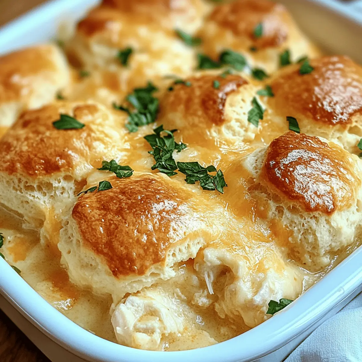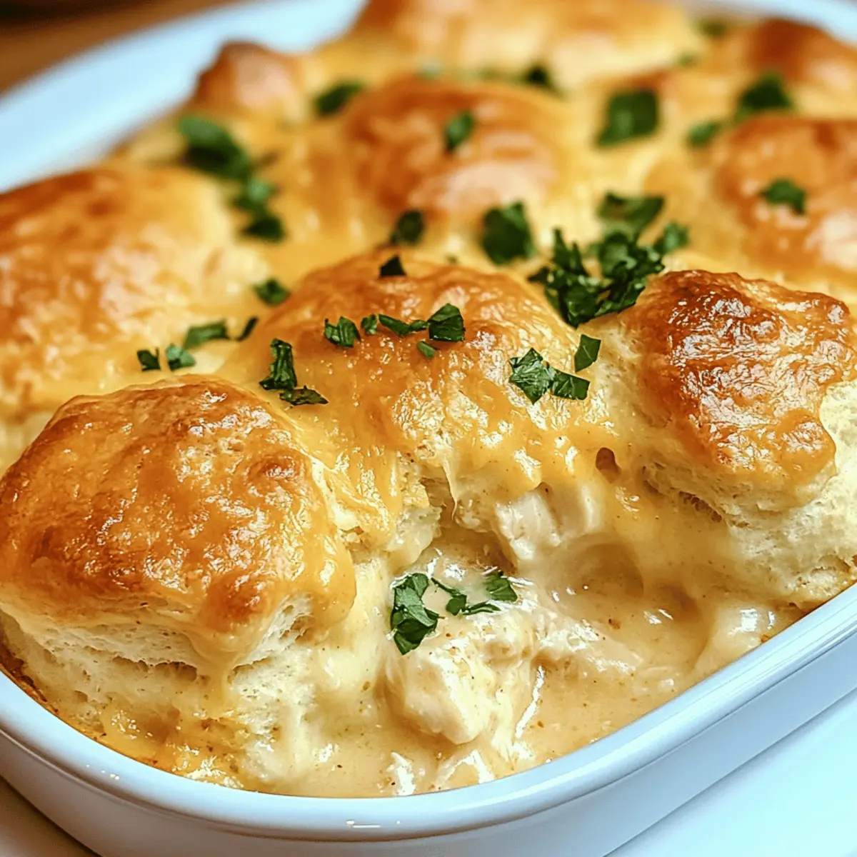 Comforting, Cozy Flavors: This dish is the epitome of comfort food, blending rich, creamy chicken with buttery cheddar biscuits that transport you to a cozy diner.