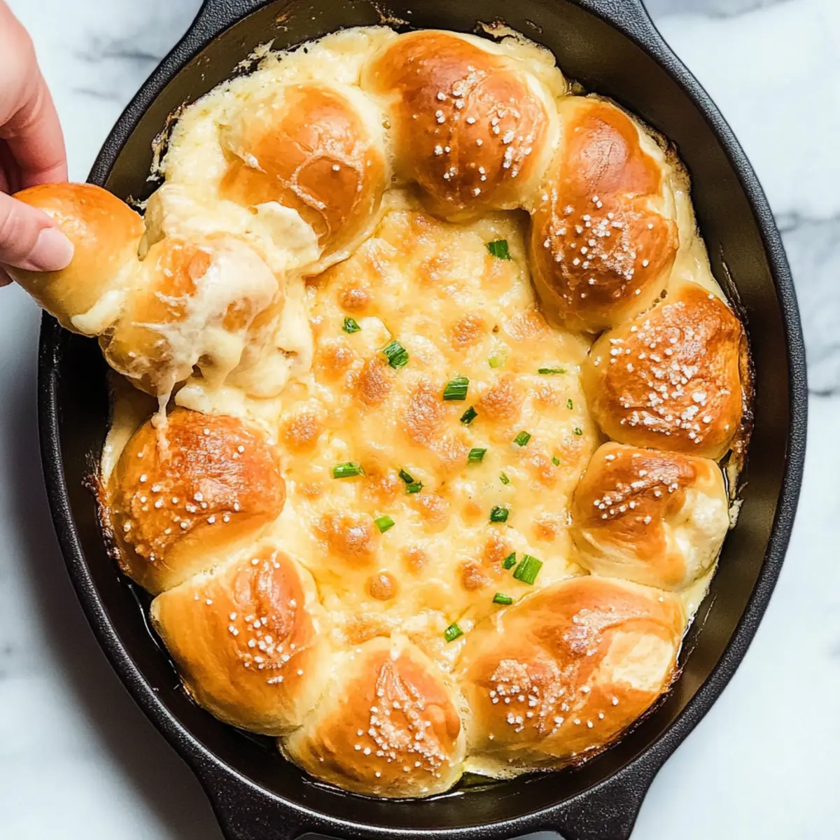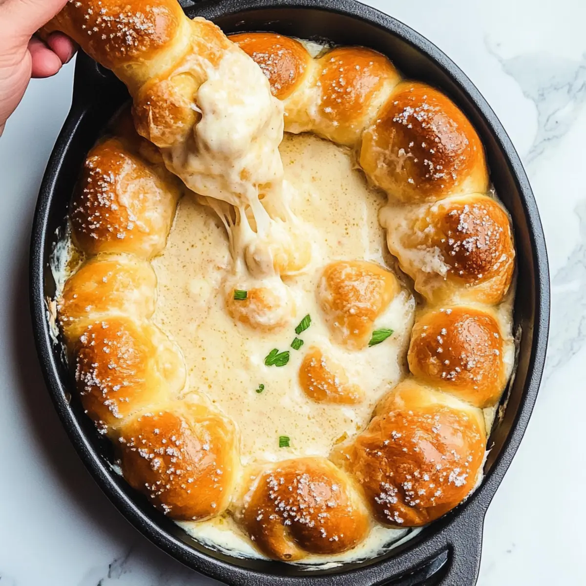 Facebook Twitter Pinterest LinkedInThe aroma of melted cheese wafts through the air as I lift the lid off my favorite skillet, revealing a bubbling, gooey masterpiece. Today, I’m sharing a recipe for a creamy Guinness beer cheese dip, the ultimate companion for warm, freshly baked pretzels. Perfect for gatherings like St. Patrick’s Day or any casual get-together, this dish combines rich flavors with an irresistible texture that makes it a favorite among friends and family alike. Not only is it quick to prepare, but it’s also a crowd-pleaser that transforms snacking into an experience. Trust me, once you dive into this mouthwatering cheese dip for pretzels, you’ll be planning your next celebration in no time! Ready to elevate your appetizer game? Let’s get cooking! Why is this cheese dip irresistible? Creamy, Dreamy Texture: The combination of melted cheeses creates a velvety dip that you’ll want to savor with every bite. Quick Prep Time: With just a few easy-to-follow steps, this dish is perfect for those spontaneous gatherings or St. Patrick’s Day celebrations. Crowd-Pleasing Flavor: Whether you’re sharing with friends or family, the rich flavors of Guinness and cheese appeal to everyone’s taste buds. Homemade Goodness: Pair this dip with warm homemade pretzels for an unforgettable experience that outshines any fast food. If you’re intrigued by delicious cheesy bites, don’t forget to check out my Sausage Egg Cheese Breakfast Roll-Ups for another scrumptious treat! Cheese Dip for Pretzels Ingredients For the Cheese Dip • Sharp White Cheddar – The main cheese adds rich flavor; you can swap it with mild cheddar if you prefer something milder. • Mozzarella – Provides a stretchy texture that’s perfect for dipping; try provolone if you can’t find mozzarella. • Dubliner or Gruyere Cheese – Adds nutty depth; aged Gouda works as a tasty substitute. • Whole Milk – Blends the cheese smoothly; half-and-half can make it creamier if desired. • Cream Cheese – Enhances the overall creaminess; for a lighter option, consider using Neufchâtel cheese. • Dijon Mustard – Infuses tangy flavor; yellow mustard can be a milder alternative. • Freshly Chopped Chives – Brightens the dip and adds a fresh touch; green onions also do the trick beautifully. • Garlic – Adds an aromatic note to the mix; garlic powder is a convenient substitute if needed. • Guinness or Other Stout – Infuses a unique flavor into the dip; non-alcoholic stout or beef broth can be used for a non-alcoholic version. • Kosher Salt – Enhances all the flavors; remember to adjust based on the saltiness of the cheese. For the Pretzels • Refrigerated Biscuits – The base for your homemade pretzels; any canned dough works for an easier prep. • Baking Soda – Essential for achieving that classic pretzel crust texture; don’t skip this ingredient! • Egg (for washing) – Gives the pretzels that golden finish; whisk it with water for an easy application. • Coarse Salt – Topping for added crunch on pretzels; sea salt serves as a great substitute. Get ready to create a delightful cheese dip for pretzels that will amaze your guests! Step‑by‑Step Instructions for Cheese Dip for Pretzels Step 1: Preheat the Oven Begin by preheating your oven to 350°F (175°C). This temperature will ensure that your cheese dip for pretzels bakes evenly, allowing all those delicious flavors to meld perfectly. While the oven heats, you can gather and prepare your ingredients for a seamless cooking experience. Step 2: Cook the Garlic In a medium saucepan over medium heat, sauté minced garlic in a drizzle of olive oil for about 1-2 minutes until fragrant. Next, pour in the whole milk and Guinness beer, stirring gently. Bring this mixture to a gentle simmer for about 3-4 minutes, letting the beer’s rich aroma infuse the mixture perfectly. Step 3: Melt the Cheeses Once your milk and beer mixture is simmering, lower the heat and add the cream cheese, stirring until it melts completely. Gradually incorporate the sharp white cheddar, mozzarella, and Gruyere cheese. Continuously stir for about 5-7 minutes until the cheese melt together into a creamy, luscious dip, ensuring a smooth and delicious consistency. Step 4: Prepare the Pretzels While your cheese is melting, take your refrigerated biscuits and cut each one in half. Shape these halves into small balls. Prepare a separate pot with boiling water and add baking soda. Carefully simmer the balls in this soda water for 60 seconds, which will create that iconic pretzel texture, then drain them on a clean towel. Step 5: Assemble in Skillet Grab a cast-iron skillet or a baking dish and arrange your pretzel balls around the edge, leaving the center open. Pour the creamy cheese dip into the center, ensuring it’s surrounded by the pretzel bites. Sprinkle any remaining sharp cheddar cheese on top for an extra cheesy layer before baking. Step 6: Bake the Cheese Dip Place your assembled skillet into the preheated oven and bake for 32-35 minutes. Keep an eye on the dip as it cooks; it’s ready when the cheese is bubbly, and the pretzels turn a beautiful golden brown, filling your kitchen with wonderful aromas. Step 7: Garnish and Serve Once baked, remove the skillet from the oven and let it cool slightly. Before serving, sprinkle freshly chopped chives over the top for a vibrant pop of color and flavor. Serve this irresistible cheese dip for pretzels hot, and watch as your guests dig in with excitement! Expert Tips for Cheese Dip for Pretzels • Melt Properly: Ensure all cheeses are completely melted before serving. This creates the silky, smooth consistency everyone loves in a cheese dip for pretzels. • Avoid Overcrowding: When simmering your biscuit balls, avoid overcrowding the pot. This allows each pretzel to puff up nicely and avoid sogginess. • Keep an Eye on Baking: Watch the pretzels closely while baking. Remove them when they’re golden brow