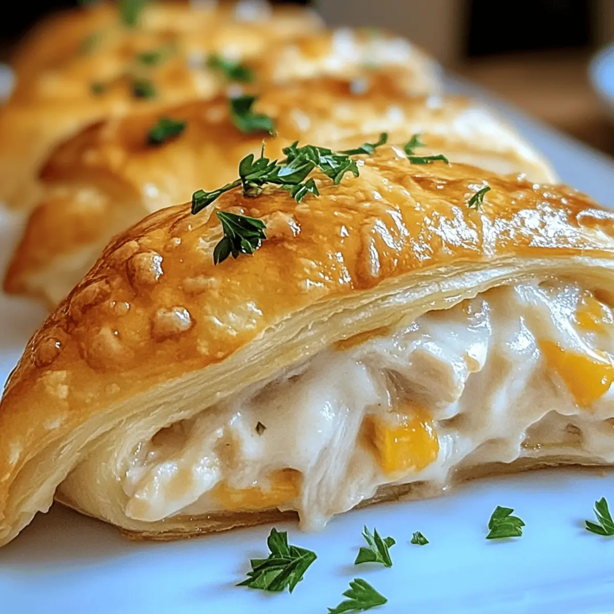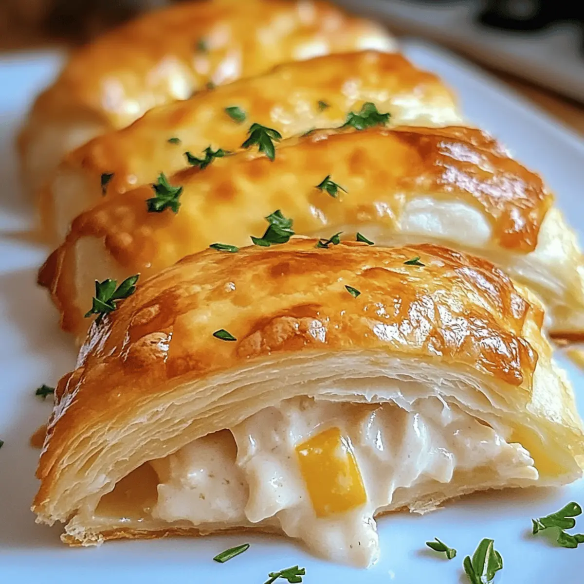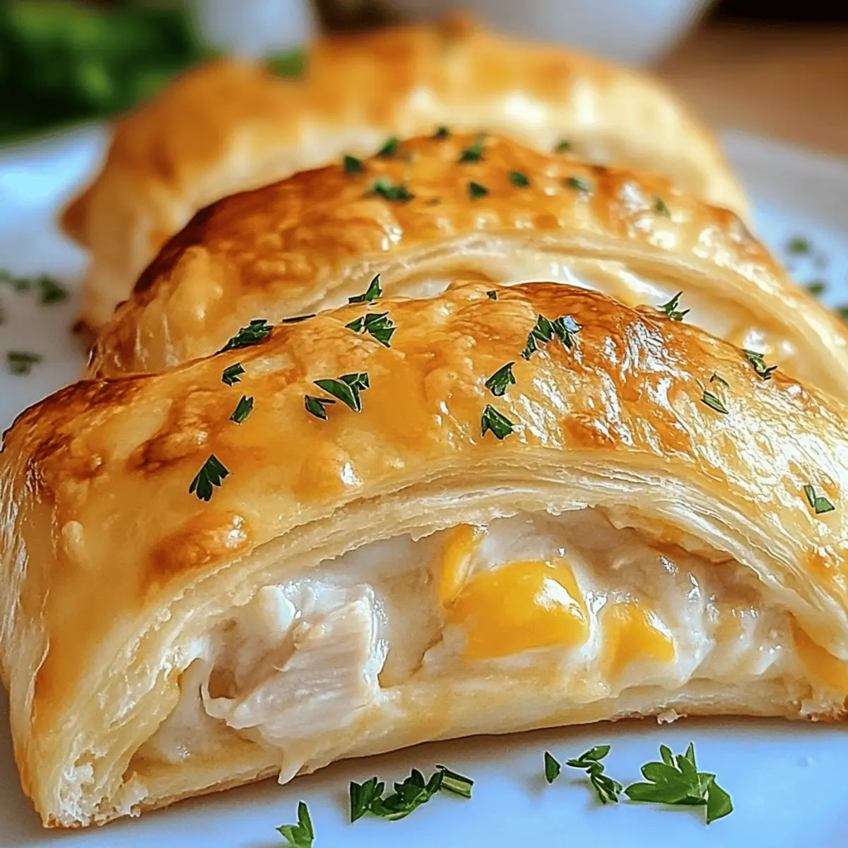 Stumbling upon a cozy kitchen filled with the warm aroma of crispy pastry is like uncovering a secret recipe for happiness. That’s exactly what you’ll experience while whipping up these Cheesy Chicken Crescent Rolls, a delightful comfort food that’s destined to become a staple in your culinary repertoire. What I love about this easy recipe is how it brings together flaky crescent dough, savory shredded chicken, and gooey melted cheese—a combination that’s perfect for busy weeknights or festive gatherings alike. In just 30 minutes, you’ll have these golden-brown treasures ready to impress family and friends, all while keeping your cooking stress to a minimum. Are you ready to dive into the deliciousness and explore how to make these delightful rolls your own? Why are Cheesy Chicken Crescent Rolls a Must-Try? Comforting Deliciousness: The warm filling of shredded chicken and cream cheese wrapped in flaky dough will wrap you in joy with every bite. Quick Preparation: With just 30 minutes from prep to plate, these crescent rolls fit perfectly into your busy schedule. Customizable Flavors: Feel free to mix in diced jalapeños for spice or add cooked spinach for a nutritious twist—there’s no limit to your creativity! Perfect for Any Occasion: Whether it’s a family dinner or a festive party, these rolls are sure to be a hit. Pair them with a side like the Hawaiian Chicken Sheet for a complete meal! Crowd-Pleaser: Everyone loves cheesy, savory bites they can easily pick up and enjoy. These rolls are always the first to disappear! Cheesy Chicken Crescent Rolls Ingredients • Get ready to create a delectable treat! For the Rolls Crescent Roll Dough – Provides a flaky texture and a comforting base; consider puff pastry for a different flavor! Shredded Cooked Chicken – The star protein that adds flavor; rotisserie chicken makes for a quick and easy substitute. Cream Cheese – Adds creaminess to the filling; make sure it’s softened for easier mixing. Shredded Cheddar Cheese – Gives a gooey texture when melted; swap it out for mozzarella or pepper jack for variety. Garlic Powder – Infuses aromatic flavor into the filling; fresh minced garlic can also elevate the taste. Chopped Parsley – Adds freshness and a pop of color; it’s optional but greatly enhances the final dish. Salt & Pepper – Boosts the overall flavor; feel free to adjust according to your personal taste. Optional Add-Ins Cooked Spinach – A nutritious boost that blends wonderfully with the chicken. Diced Jalapeños – Perfect for adding a spicy kick to your rolls, making them extra exciting! Bell Peppers – Add a crunchy, sweet bite for a colorful twist. Remember, these Cheesy Chicken Crescent Rolls are all about flexibility; let your taste guide you! Step‑by‑Step Instructions for Cheesy Chicken Crescent Rolls Step 1: Preheat the Oven Begin by preheating your oven to 375°F (190°C). While the oven heats up, take a baking sheet and lightly grease it with cooking spray or butter, ensuring a non-stick surface for the Cheesy Chicken Crescent Rolls. This golden temperature will ensure your rolls bake to a beautiful, flaky perfection. Step 2: Prepare the Filling In a medium mixing bowl, combine shredded cooked chicken, softened cream cheese, and shredded cheddar cheese. Add garlic powder, chopped parsley, salt, and pepper, blending the ingredients until smooth and creamy. The mixture should be well-combined, resembling a thick, cheesy spread that will bring all the flavors together in each bite. Step 3: Roll the Dough Open the package of crescent roll dough and carefully unroll it on a clean surface. Separate the dough into individual triangles as indicated on the packaging. This flaky crescent dough serves as the perfect wrap for your delicious filling, so keep the triangles intact to ensure optimal rolling. Step 4: Assemble the Rolls On the wide end of each triangle, place a generous spoonful of the creamy chicken filling. Gently roll the dough towards the pointed end, tucking in the sides as you go to prevent any filling from escaping during baking. Arrange the assembled rolls with the point facing down on your prepared baking sheet for optimal cooking. Step 5: Bake the Rolls Carefully place the baking sheet in your preheated oven, setting a timer for 12 to 15 minutes. Keep an eye on the rolls as they bake; they should puff up and turn a lovely golden brown when done. This is the visual cue that your Cheesy Chicken Crescent Rolls are ready to come out of the oven. Step 6: Cool and Serve Once your rolls are perfectly golden, remove them from the oven and allow them to cool for a few minutes on the baking sheet. This short cooling period will help the filling to set slightly. Serve warm, perhaps with a side of ranch dressing or marinara for a delightful dipping experience. How to Store and Freeze Cheesy Chicken Crescent Rolls Room Temperature: Store baked rolls in an airtight container for up to 2 hours if you plan to eat them right away; they’re best enjoyed warm! Fridge: Keep leftover Cheesy Chicken Crescent Rolls in an airtight container for up to 3-4 days. To maintain freshness, gently reheat them in the oven. Freezer: For longer storage, freeze assembled but unbaked rolls for up to 2 months. Wrap tightly in plastic wrap and foil. When ready to bake, allow them to thaw overnight in the fridge before baking. Reheating: To reheat cooked rolls, place them in a preheated oven at 350°F (175°C) for about 10-15 minutes or until warmed through, ensuring the filling remains creamy. Expert Tips for Cheesy Chicken Crescent Rolls • Do Not Overfill: Keep your filling amount moderate to prevent leaks during baking, which can create a messy kitchen. • Use Fresh Ingredients: For the best flavor, use freshly cooked chicken and softened cream cheese; flavor enhances when ingredients are fresh. • Baking Time Matters: Keep an eye on your crescent rolls, as baking times may vary slightly with different ovens