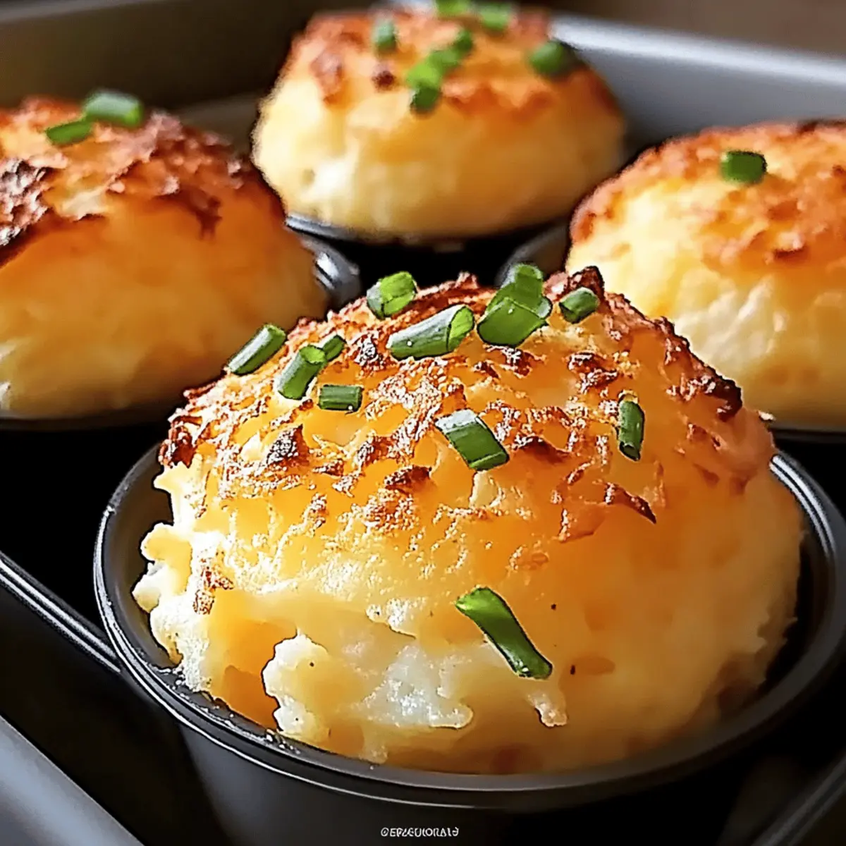 As I scoured my fridge on a rainy day, I stumbled upon a container of leftover mashed potatoes that had been cast aside. I felt a rush of inspiration—what if I transformed them into crispy, delightful Cheesy Mashed Potato Puffs? Perfect for a quick snack or an inviting appetizer at gatherings, these puffs are not just a clever way to use up leftovers; they’re an easy, crowd-pleasing treat that packs cheesy goodness into every bite. With minimal prep time required, you’ll have warm, golden morsels ready to dip in your favorite sauce in no time! So, what’s stopping you from turning those forgotten mashed potatoes into something magical today? Why are Cheesy Mashed Potato Puffs irresistible? Crispy on the outside, each bite offers a delightful crunch that balances beautifully with the soft, gooey cheese inside. Quick and easy to make, these puffs transform leftover mashed potatoes into an irresistible snack that everyone will love. Versatile in flavors, you can mix and match cheeses or add delectable veggies, ensuring no two puffs are the same. Perfect for any occasion, serve them as appetizers at your next gathering or enjoy them as a cozy, comforting treat on a rainy day. For more cheesy delights, check out our Cheesy Garlic Bread or Cheesy Sausage Egg! Cheesy Mashed Potato Puffs Ingredients For the Puffs • Mashed Potatoes – The heart of this dish; chilled mashed potatoes yield the best texture for crispy puffs. • Cheese – Choose your favorite, like sharp cheddar or creamy mozzarella, for that perfectly gooey center. • Eggs – These bind the mixture together; for a vegan alternative, consider using flaxseed meal instead. • Breadcrumbs – This creates a delectable crispy coating; gluten-free breadcrumbs work just as well! • Spices – Garlic powder and onion powder elevate the flavor; feel free to adjust according to your taste. • Optional Veggies (spinach, broccoli) – Finely chop to sneak in some added nutrition without compromising texture. Now that you have all the ingredients, let’s get ready to make these fantastic Cheesy Mashed Potato Puffs! Step‑by‑Step Instructions for Cheesy Mashed Potato Puffs Step 1: Preheat the Oven Begin by preheating your oven to 400°F (200°C). This step is essential for achieving that perfect golden-brown exterior on your Cheesy Mashed Potato Puffs. While the oven warms up, it’s a great time to gather your mixing bowl and other ingredients so you’re ready to create your delicious snack. Step 2: Mix the Ingredients In a large mixing bowl, combine your chilled mashed potatoes, cheese of choice, eggs, and spices. Use a sturdy fork or spatula to mix everything until it’s well blended. The mixture should be thick yet smooth, with no lumps remaining. This is vital for ensuring your puffs hold their shape during baking. Step 3: Shape the Puffs Now, take small portions of the potato mixture and roll them into balls about the size of a golf ball. Aim for an even size to ensure consistent cooking. Once shaped, roll each ball in breadcrumbs for a crispy coating. This step is crucial as it adds the delightful crunch that complements the cheesy center. Step 4: Prepare the Baking Tray Next, lightly grease a baking tray with cooking spray or a small amount of oil to prevent sticking. Arrange the breaded potato puffs on the tray, leaving a little space between each to allow for even cooking. This helps them crisp up nicely without overcrowding. Step 5: Bake the Puffs Carefully transfer the baking tray to your preheated oven and bake for 15-20 minutes. Keep an eye on them as they cook; you’re looking for a beautiful golden hue and a crispy exterior. The Cheesy Mashed Potato Puffs are done when they are firm and lightly browned on the outside. Step 6: Serve and Enjoy Once baked, remove the puffs from the oven and let them cool for a couple of minutes. They are best enjoyed warm and crispy! Serve them with your favorite dipping sauces, such as ranch or marinara, for an irresistible snack experience. Get ready for compliments from family and friends! How to Store and Freeze Cheesy Mashed Potato Puffs Room Temperature: Store any unrefrigerated puffs in a cool area for up to 1 hour if you’re serving them at a gathering – but they’re best enjoyed fresh and warm! Fridge: Keep leftover Cheesy Mashed Potato Puffs in an airtight container in the refrigerator for up to 3-4 days. Reheat in the oven to regain that crispy texture. Freezer: Prepare puffs before baking and freeze in a single layer on a baking sheet. Transfer to an airtight container for up to 2 months; thaw in the fridge overnight before baking. Reheating: For optimal flavor and crunch, reheat puffs in a preheated oven at 375°F (190°C) for approximately 10-15 minutes. Enjoy! Make Ahead Options Cheesy Mashed Potato Puffs are perfect for meal prep, allowing you to enjoy delicious snacks any day of the week! You can prepare the potato mixture and form the puffs up to 24 hours ahead; simply store them in the refrigerator, tightly covered to maintain freshness. If you’re looking to prep even further in advance, shape the puffs and freeze them for up to 3 months. When you’re ready to enjoy, bake them straight from frozen, adding an extra 5-7 minutes to the baking time. This ensures that your Cheesy Mashed Potato Puffs come out just as golden and crispy, bringing comfort to your busy nights with minimal effort! Cheesy Mashed Potato Puffs Variations Feel free to get creative with your Cheesy Mashed Potato Puffs—let your taste buds guide you to make them even more delightful! Spicy Twist: Add chopped jalapeños or crushed red pepper for a fiery kick that will tantalize your taste buds. A little heat goes a long way, transforming your puffs into a bold snack. Loaded Puffs: Incorporate crispy bacon bits or diced green onions for a delicious twist on traditional flavors. It not only adds taste but also texture, making every bite a savory surprise. Herbed Delight: Try mixing in f