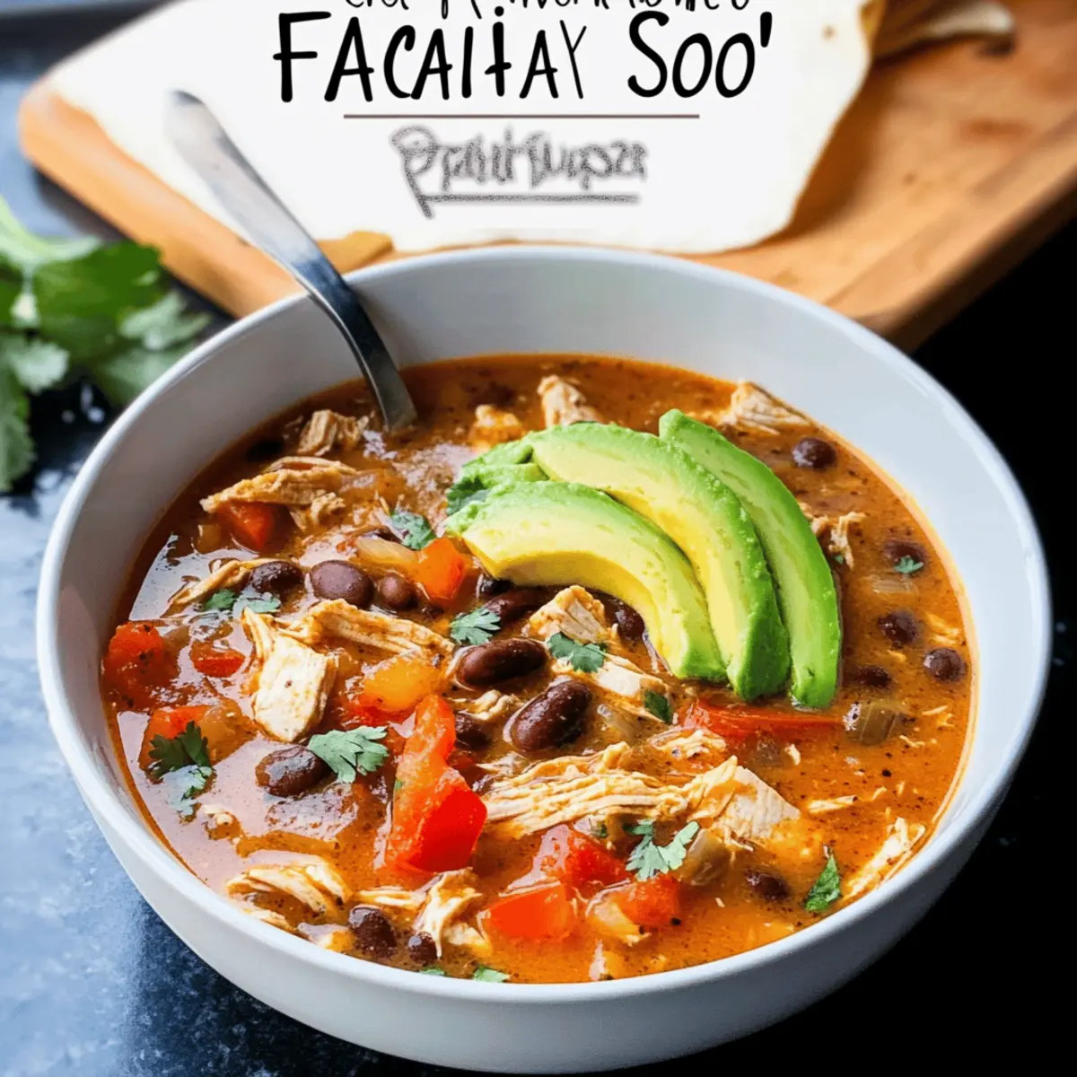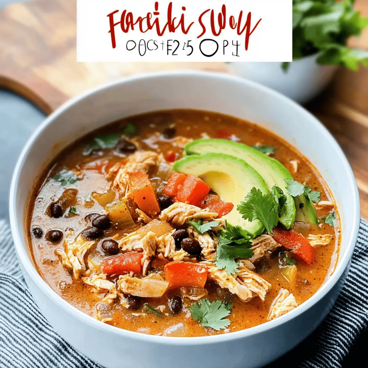 As I stirred the pot of my Chicken Fajita Soup, the aroma wafted through the kitchen, instantly transporting me to my favorite Mexican eatery. This comforting one-pot meal is a delightful twist on traditional fajitas, combining juicy chicken, vibrant bell peppers, and hearty black beans into a warm hug in a bowl. Not only is this recipe incredibly easy to prep, but it also yields scrumptious leftovers that taste even better the next day—perfect for those busy weekdays! With customizable toppings at your fingertips, you can tailor each bowl to your family’s taste preferences, making it a fun weeknight dinner everyone will love. Curiosity piqued? Let’s dive into this tasty recipe! Why is this Chicken Fajita Soup special? Flavor Explosion: Each bowl bursts with vibrant flavors, thanks to the combination of juicy chicken and zesty spices. Customizable Toppings: With ingredients like fresh cilantro, avocado, and tortilla strips, every serving can be tailored to individual preferences. Easy Meal Prep: This one-pot wonder requires minimal cleanup, making it perfect for busy weeknights or meal prep ahead of time. Nourishing Comfort: Packed with protein, fiber, and hearty veggies, it’s a comforting meal that nourishes both body and soul. Versatile Ingredients: Swap chicken for turkey or use beans for a vegetarian version without sacrificing taste—endless possibilities! If you’re looking for another easy meal idea, check out my Hawaiian Chicken Sheet recipe for more weeknight inspiration. Chicken Fajita Soup Ingredients For the Soup Base Olive Oil – Provides fat for frying; avocado oil can be used as an alternative. Butter – Adds a touch of richness; optional for a dairy-free version. Chicken Thighs – The main protein source that keeps the soup juicy; shredded rotisserie chicken can be used for convenience. Onion – Brings sweetness and depth; opt for yellow or white for a milder flavor. Bell Peppers – Contribute sweetness and vibrant colors; mix red, orange, and yellow, or try poblano for a twist. Garlic – Essential for flavor; always use fresh for best results. Flour – Acts as a thickener; replace with cornstarch for a gluten-free option. Chicken Bouillon Powder – Adds savory depth; for a vegetarian option, use vegetable bouillon. For the Hearty Fillers Long-Grain White Rice – Provides heartiness to each bowl; swap for brown rice but remember it requires longer cooking time. Black Beans – A source of protein and fiber; using canned means quicker prep, but dried beans work too if cooked first. Diced Green Chiles – Introduces a mild heat; fresh jalapeños can be used for a spicier kick. Crushed Tomatoes – Forms the base of the soup, balancing acid and sweetness; can substitute with diced tomatoes if desired. Low Sodium Chicken Broth – Offers a flavorful liquid base; switch to vegetable broth for a vegetarian version. For the Flavor Boost Cornstarch – Used to adjust thickness; can be omitted if a thinner soup is preferred. Spices (Salt, Chili Powder, Cumin, Smoked Paprika, Pepper, Oregano) – Season the soup to your liking; feel free to adjust spices for heat preference. For Topping Pepper Jack Cheese – Adds creaminess and flavor; omit for a dairy-free option or add as a topping. Tortilla Chips/Strips – Perfect for adding crunch; use to garnish each bowl. Fresh Cilantro – Enhances freshness and color; a must-have for a Mexican flair. Avocados – Creamy and nutritious; cut fresh just before serving for best texture. Lime Juice – A squeeze brightens the entire dish; essential for adding zing. Hot Sauce – Spice it up according to your taste; optional for those who enjoy heat. Whether you’re whipping up this Chicken Fajita Soup for a family meal or meal prepping for a busy week, the combination of flavors and versatility in toppings are sure to make it a favorite in your home! Step‑by‑Step Instructions for Chicken Fajita Soup Step 1: Sauté the Chicken and Onions In a large Dutch oven, heat 2 tablespoons of olive oil and 1 tablespoon of butter over medium-high heat. Once the butter has melted and starts to bubble, add 1 pound of diced chicken thighs and 1 chopped onion. Sauté for about 3 minutes until the chicken is browned and the onions are translucent, releasing a sweet aroma. Step 2: Add Bell Peppers and Garlic Next, add 2 cups of sliced bell peppers (mix of red, orange, and yellow) and 2 minced garlic cloves to the pot. Stir continuously for another 2 minutes until the peppers soften, brightening up your kitchen with their vibrant colors and enticing scents. This step builds the delicious foundation of your Chicken Fajita Soup. Step 3: Incorporate Flour and Spices Sprinkle in ¼ cup of flour and all your spices—1 teaspoon of salt, 1 tablespoon each of chili powder and cumin, 1 teaspoon of smoked paprika, and ½ teaspoon of oregano and pepper. Stir everything gently for about 1 minute to let the flour absorb moisture and cook for better flavor, creating a fragrant base for the soup. Step 4: Combine the Hearty Ingredients Now, stir in 1 cup of long-grain white rice, 1 can of black beans (drained and rinsed), 1 can of diced green chiles, 1 can of crushed tomatoes, and 4 cups of low sodium chicken broth. Increase the heat to bring everything to a boil, watching the mixture bubble deliciously for about 2-3 minutes, signaling that it’s ready to simmer. Step 5: Simmer the Soup Reduce the heat to low and cover the pot, letting your Chicken Fajita Soup simmer for 30 minutes. Keep an eye on it, giving it a stir occasionally. You’ll know it’s ready when the rice is tender and the soup has thickened, making for a cozy and hearty meal that fills the kitchen with warmth. Step 6: Finish with Cheese and Garnish After simmering, remove the pot from heat and stir in 1 cup of shredded pepper jack cheese until it melts into a creamy delight. Serve the soup hot, garnished with your favorite toppings like fresh cilantro, avocado slices, lime juice, and c