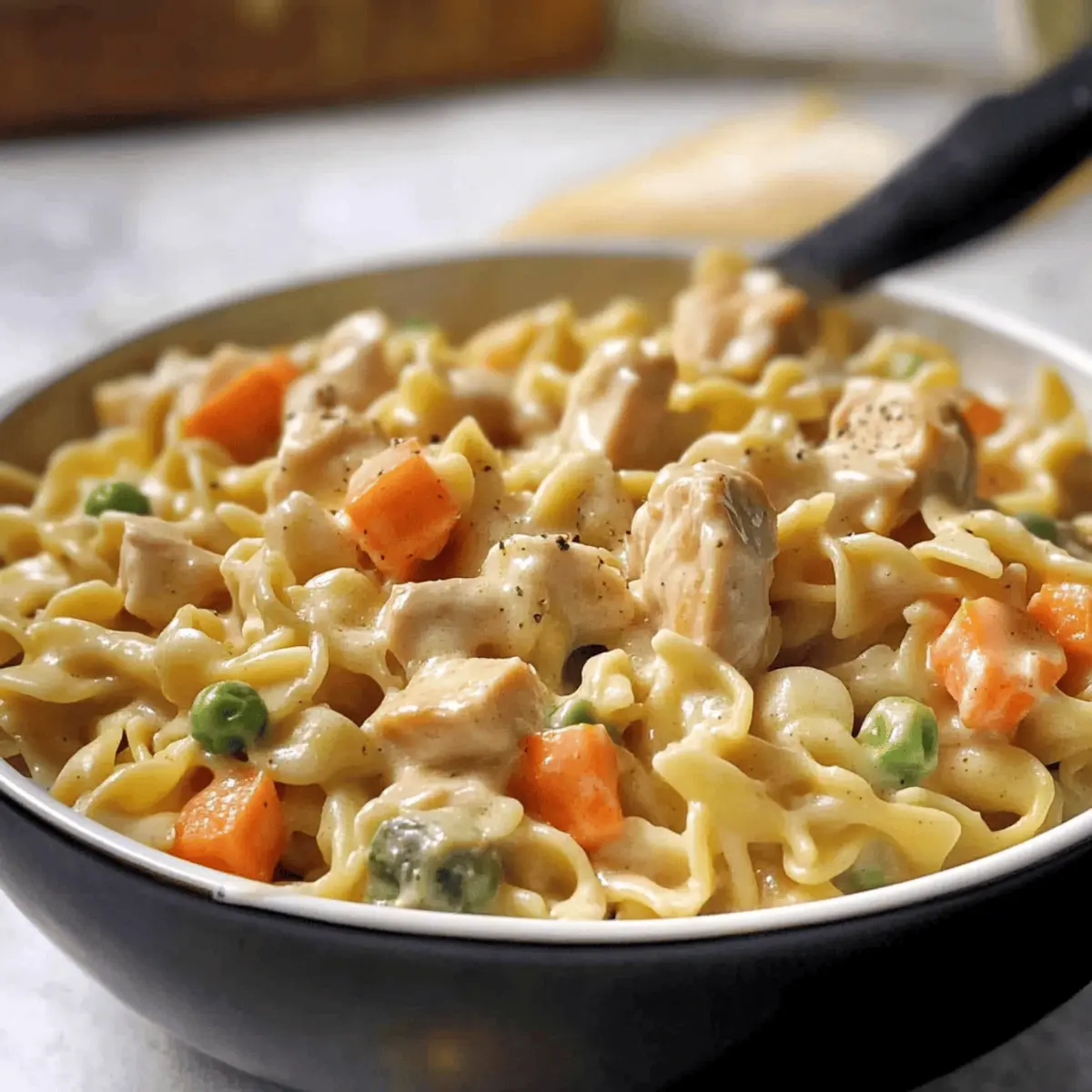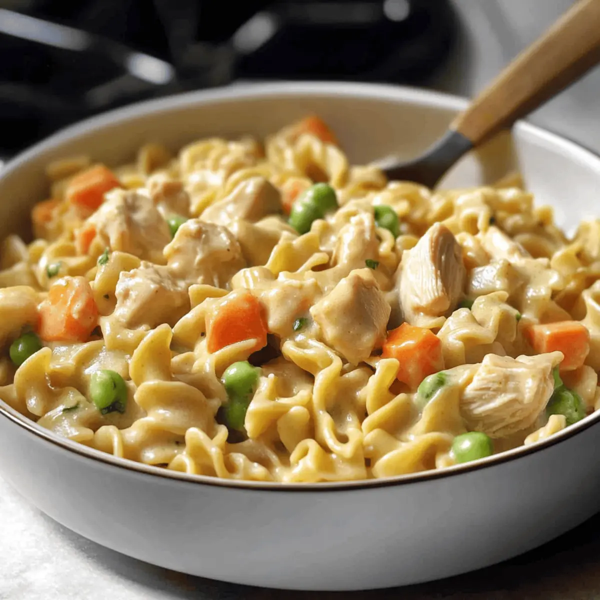 As I stood in my kitchen, a lingering craving for the comforting flavors of chicken pot pie swept over me, but I craved something easier to whip up on a busy evening. Enter the Quick Chicken Pot Pie Pasta—a delightful twist that marries the classic, savory essence of pot pie with the cozy charm of pasta. In just 30 minutes, you can create a satisfying one-pot meal that is not only quick to prepare but also adapts seamlessly to your pantry’s offerings. Whether you have some frozen vegetables or a leftover rotisserie chicken stashed away, this dish brings together tender noodles and a creamy sauce for a kid-friendly dinner that’s perfect for everyone. Ready to discover just how easy and delicious homemade comfort food can be? Let’s dive in! Why is this Chicken Pasta Recipe a Must-Try? Simplicity at its Core: The one-pot nature of this dish means less cleanup, allowing you to focus on enjoying a delightful meal with your loved ones. Kid-Friendly Flavors: With its creamy, savory profile, this Quick Chicken Pot Pie Pasta is sure to please picky eaters and adventurous palates alike. Quick and Convenient: In just 30 minutes, you can whip up a wholesome dinner that fits perfectly into your busy schedule, making it ideal for weeknights. Versatile Ingredients: Use whatever veggies and proteins you have on hand—be it frozen peas, leftover rotisserie chicken, or seasonal picks like spinach. Comfort Food Redefined: This recipe combines the rich, cozy flavors of classic chicken pot pie with the comforting texture of pasta, perfect for any time of year. Looking for similar recipes? Check out my favorites like One Pot Pasta or Crockpot Chicken Gnocchi for more easy, delicious meals! Chicken Pot Pie Pasta Ingredients • What you need for a cozy dish: For the Pasta Base Egg Noodles – A perfect foundation; you can swap in your favorite pasta variety if desired. For the Protein Chicken Breasts – The star of the dish; use rotisserie chicken for a quicker option. For the Flavor Base Diced Onion – Vital for depth of flavor; shallots or leeks can be great alternatives. Garlic – Adds a lovely aromatic touch; substitute with garlic powder if needed. For the Veggie Mix Frozen Assorted Vegetables – Convenient and nutritious; fresh veggies work too, just adjust cooking time. For the Creamy Sauce Butter – Riches up the dish; consider olive oil or margarine as a lighter choice. Condensed Cream of Chicken Soup – Creates that classic creamy texture; use cream of mushroom soup for a vegetarian version. Milk – Helps thin the sauce for creaminess; chicken broth or non-dairy alternatives work for a different spin. For Seasoning Paprika & Ground Black Pepper – Flavor boosters; tweak to your taste preferences. Chicken Bouillon Granules – Enhances the broth; you can also opt for homemade stock for added richness. This Chicken Pot Pie Pasta is a delightful twist on comfort food that will surely bring warmth to your dinner table. Step‑by‑Step Instructions for Chicken Pot Pie Pasta Step 1: Cook the Egg Noodles In a large pot, bring salted water to a rolling boil over high heat. Add the egg noodles and cook them until al dente, about 7-9 minutes. Once cooked, drain the noodles in a colander and set them aside, allowing any excess water to drip off while you prepare the chicken pot pie mixture. Step 2: Sauté the Onions In a spacious skillet or Dutch oven heated over medium-high heat, melt 2 tablespoons of butter. Once melted, add the diced onion and sauté for 2-4 minutes until the onion turns translucent and softens, becoming aromatic. Stir occasionally to ensure even cooking and avoid burning as you create the savory base for your Chicken Pot Pie Pasta. Step 3: Add the Chicken and Seasoning Add the chopped chicken breasts to the skillet, seasoning with chicken bouillon granules, paprika, salt, and pepper. Cook for 5-7 minutes, stirring occasionally, until the chicken is browned and nearly cooked through. This step is essential for infusing the chicken with delicious flavors that will enrich your creamy pasta dish. Step 4: Stir in the Vegetables Next, incorporate the frozen assorted vegetables into the skillet, mixing well with the chicken. Continue to cook for about 5 minutes, allowing the vegetables to thaw and soften. Keep an eye on them; they should be tender yet still have a slight crunch, adding essential texture to your Chicken Pot Pie Pasta. Step 5: Add the Garlic Now, add minced garlic to the skillet and sauté for an additional 30-45 seconds until fragrant. The garlic will enhance the flavor profile of your dish, providing that beloved aromatic quality often found in traditional chicken pot pie recipes. Stir frequently to prevent the garlic from burning. Step 6: Create the Creamy Sauce Pour in the condensed cream of chicken soup and milk to the skillet, mixing everything together thoroughly. Reduce the heat to medium and let the mixture simmer for 3-5 minutes. This allows the sauce to heat through and thicken slightly, embracing the pasta and bringing a luscious richness to the Chicken Pot Pie Pasta. Step 7: Combine with Cooked Noodles Gently fold the cooked egg noodles into the skillet, ensuring they are fully coated with the creamy sauce. Stir until everything is combined, and the noodles are warmed through. This step is crucial as it melds all the delicious flavors together, transforming your ingredients into a comforting one-pot meal. Step 8: Serve and Enjoy Once everything is well mixed and heated through, remove the skillet from heat. Spoon the creamy Chicken Pot Pie Pasta into bowls and serve hot. Consider garnishing with fresh herbs for an additional pop of flavor, and enjoy the warmth and comfort this hearty dish brings to your family dinner table. What to Serve with Quick Chicken Pot Pie Pasta Embrace the delightful world of flavors as you build the perfect meal to accompany this creamy, comforting pasta dish. Crusty Bread: Perfect for soaking up the sauce, a warm, crusty bag