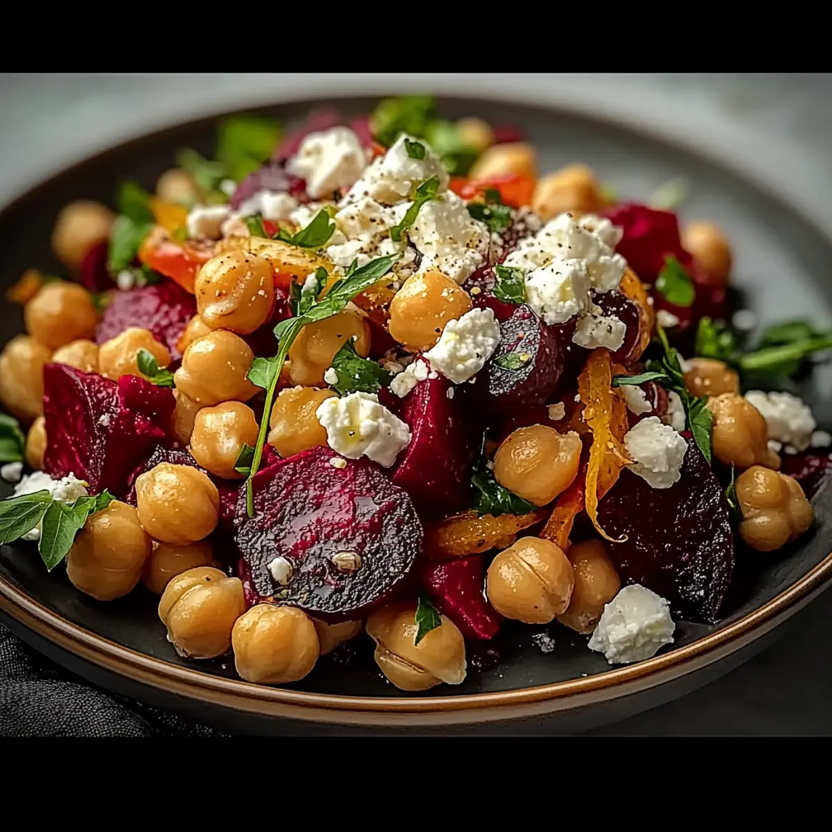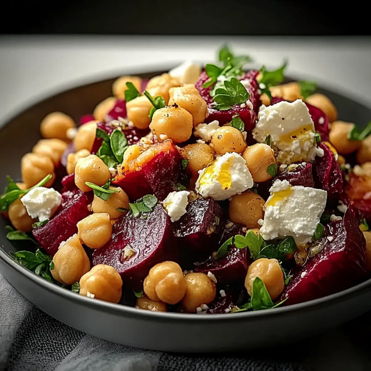 Facebook Twitter Pinterest LinkedInAs I rummaged through my fridge one sunny afternoon, a vibrant idea sprouted in my mind. What if I combined earthy beets, creamy feta, and protein-packed chickpeas into a refreshing salad? Thus, the Chickpea, Beet & Feta Salad with Lemon-Garlic Vinaigrette was born! This dish is not just a feast for the eyes but also a hearty option that’s perfect for meal prep. It’s vegetarian, budget-friendly, and can easily adapt to whatever fresh ingredients you have on hand. Whether you’re enjoying it as a light lunch or serving it at your next gathering, it’s bound to impress. Plus, with just a quick toss together, you’ll have a crowd-pleaser that satisfies without the fuss. Curiosity piqued? Let’s dive into the delicious details! Why is this salad a must-try? Vibrant colors: The Chickpea, Beet & Feta Salad isn’t just tasty; it’s a feast for the eyes with its stunning reds, whites, and greens, sure to brighten any table. Nutritious ingredients: Packed with protein-rich chickpeas and earthy beets, this salad fuels your day while keeping it light and healthy. Simplicity: With easy-to-follow steps, you can have this dish ready in no time, making it perfect for busy weekday meals or last-minute gatherings. Crowd-pleaser: Friends and family alike will love the fresh, bold flavors, whether you enjoy it solo or as a complement to grilled meats. Versatile options: Don’t hesitate to customize! Add grains like quinoa, spices, or even toasted nuts for an extra crunch — let your creativity shine! For more delightful, quick dishes, check out my refreshing Pineapple Cucumber Salad or the tasty Spinach Feta Quesadillas—they’re sure to delight! Chickpea, Beet & Feta Salad Ingredients For the Salad • Chickpeas – Add wholesome protein and fiber; if you want a change, substitute with white beans. • Beets – Bring earthy sweetness and a pop of color; pre-cooked or canned beets are perfect for convenience. • Feta Cheese – Offers creamy texture and a salty punch; try vegan feta or avocado for a non-dairy option. • Red Onion – Adds a sharp, crisp bite; swap in green onions or shallots for a milder flavor. • Parsley – Infuses herby freshness to balance the flavors; cilantro would work well for a different twist. For the Dressing • Lemon Juice – Provides bright acidity that elevates the dish; lime juice can be used as a substitute. • Garlic – Adds depth and aroma; roasted garlic gives a milder sweetness, or you can use garlic powder for convenience. • Olive Oil – The main fat in the vinaigrette; feel free to replace it with avocado oil or any neutral cooking oil. • Dijon Mustard – Helps emulsify the vinaigrette and adds tang; yellow mustard can be a quick substitute if needed. • Salt and Pepper – Essential for seasoning to your taste; remember to adjust according to your preference. This Chickpea, Beet & Feta Salad with Lemon-Garlic Vinaigrette truly shines with its harmonious blend of flavors and textures! Step‑by‑Step Instructions for Chickpea, Beet & Feta Salad with Lemon-Garlic Vinaigrette Step 1: Roast the Beets Preheat your oven to 400°F (200°C). If you’re using raw beets, wrap them individually in aluminum foil and place them on a baking sheet. Roast the beets for 45–60 minutes, or until they are fork-tender. Once roasted, allow the beets to cool, peel off their skins, and dice them into bite-sized pieces. Step 2: Combine the Salad Ingredients In a large mixing bowl, combine the cooked chickpeas, diced beets, crumbled feta cheese, thinly sliced red onion, and chopped fresh parsley. Toss the ingredients gently to ensure an even distribution of flavors and colors. This vibrant mix forms the base of your Chickpea, Beet & Feta Salad with Lemon-Garlic Vinaigrette. Step 3: Prepare the Vinaigrette In a small bowl or a jar with a tight-fitting lid, whisk together freshly squeezed lemon juice, minced garlic, olive oil, Dijon mustard, salt, and pepper. If using a jar, just seal the lid and shake well until the ingredients are fully combined and emulsified. This zesty dressing will bring all the flavors together beautifully. Step 4: Dress the Salad Drizzle the lemon-garlic vinaigrette over the salad mixture in the large bowl. Toss everything together gently, ensuring that each ingredient is lightly coated with the vinaigrette. Allow the salad to rest for 5–10 minutes, giving the flavors a chance to meld together for a more delicious experience. Step 5: Serve and Garnish When ready to serve, portion the salad into individual bowls. If desired, garnish each bowl with additional crumbled feta and a sprinkle of parsley for extra color and flavor. This final touch not only enhances the presentation but also adds a delightful freshness to your Chickpea, Beet & Feta Salad with Lemon-Garlic Vinaigrette. Chickpea, Beet & Feta Salad Variations Feel free to get creative with this delicious salad and make it uniquely yours with these fun tweaks! Goat Cheese: Swap feta for goat cheese for a creamier flavor that elevates the texture. Mixed Greens: Add a handful of mixed greens for extra volume and nutritious crunch. Grain Boost: Incorporate cooked quinoa or bulgur to make the salad heartier and more filling. Seasonal Veggies: Toss in seasonal produce like cherry tomatoes or diced cucumber for fresh bursts of flavor. Herb Twist: Experiment with fresh herbs—swap parsley for dill or basil to give a new twist. Nutty Crunch: Add toasted almonds or walnuts for a delightful crunch and added nutrition; they pair wonderfully with the beets! Spice it Up: For a kick, sprinkle in some red pepper flakes or sliced jalapeños, adding just the right amount of heat. Dressing Variations: Try a balsamic vinaigrette instead of lemon-garlic for a tangy twist; it beautifully complements the sweetness of beets. As you explore these twists, don’t forget to savor the moment! If you’re looking for other exciting recipes, check out my vibrant Strawberry