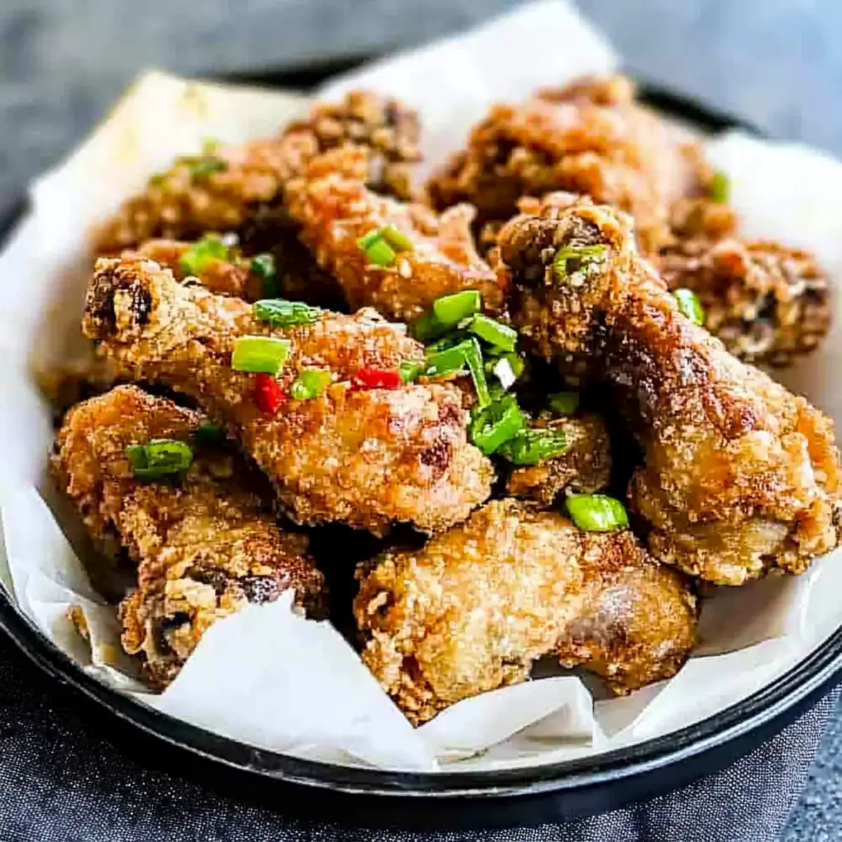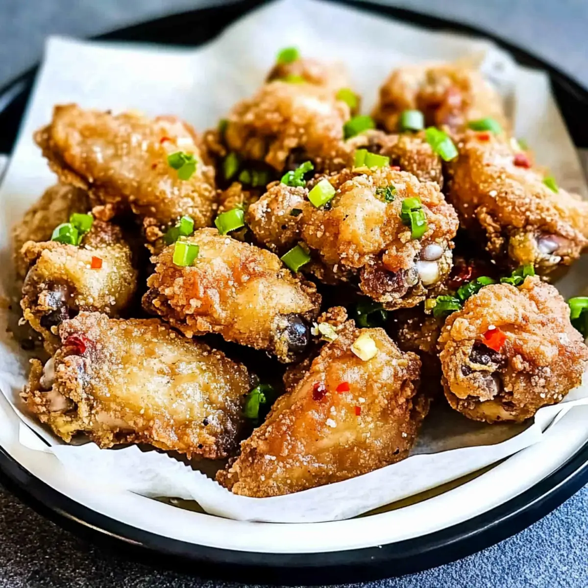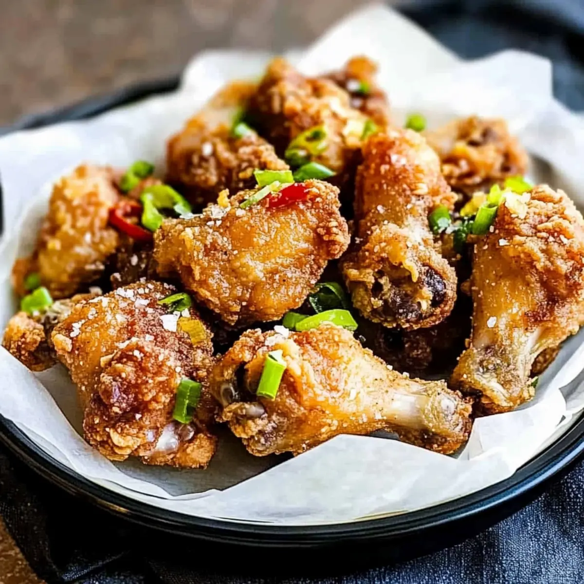The aroma wafting through the kitchen hits you like a bite of nostalgia, transporting you straight to a bustling Chinese eatery. Today, I’m thrilled to share my recipe for Crispy Chinese Salt and Pepper Chicken Wings, a dish that effortlessly combines the crunch of fried chicken with a spicy twist that’s sure to knock your socks off. These wings are not only a huge crowd-pleaser, perfect for parties or game days, but they’re also customizable, allowing you to adjust the heat to fit your taste. Plus, the easy preparation means you can whip these up in no time, making them a fabulous option when you need something special without the fuss. Ready to elevate your home-cooking game? Let’s dive into creating these mouthwatering wings! Why Are These Wings So Irresistible? Crispy Texture: The perfect blend of potato starch gives these wings an unbeatable crunch that you can hear! Bold Flavor: The marinade infused with ginger and garlic delivers a savory kick, elevating your usual fried chicken experience. Customizable Spice: Adjust the chile quantity to suit your heat preference—go mild or amp it up! Effortless Preparation: With just a few steps, you can have restaurant-quality wings on your table in no time. Crowd-Pleaser: These wings are a hit at any gathering, just like my Buffalo Chicken Mac—everyone will keep coming back for more! Get ready for a flavorful adventure that will make your kitchen the life of the party! Chinese Salt and Pepper Chicken Wings Ingredients For the Marinade Shaoxing wine – Adds depth of flavor to the marinade; substitute with sake, dry sherry, or white wine. Minced ginger – Provides warmth and spice, essential for authentically tasting Chinese salt and pepper chicken wings. Garlic cloves – Enhances the savory flavor of the chicken; used in both the marinade and topping. Kosher salt – For seasoning; can substitute with regular salt, adjusting to taste. For the Chicken Chicken wings – The main protein; prefer dark meat for tenderness, but feel free to substitute with boneless skinless thighs. Potato starch – Creates a crispy texture when frying; cornstarch can be used as a substitute if necessary. Neutral oil for frying – Best choices include canola, peanut, or vegetable oil, known for their high smoke point. For the Topping Chiles (e.g., serrano, jalapeño) – Adds heat; adjust the quantity based on your spice preference. Ground white pepper – Provides a mild heat; feel free to adjust according to taste. Szechuan pepper-salt – A unique seasoning mix for that authentic flavor; kosher salt and pepper can be used in a pinch. Step‑by‑Step Instructions for Crispy Chinese Salt and Pepper Chicken Wings Step 1: Marinate Chicken In a large bowl, combine Shaoxing wine, minced ginger, and kosher salt, mixing well. Add the chicken wings, ensuring they’re fully coated in the marinade. Cover the bowl with plastic wrap and let them marinate for at least 20 minutes in the refrigerator, or, for the best flavor, overnight if time allows. Your chicken wings should be succulent and packed with flavor after marinating. Step 2: Prepare Oil for Frying In a heavy skillet or wok, pour in enough neutral oil to submerge the chicken wings halfway. Heat the oil over medium-high heat until it shimmers and reaches around 350°F (175°C). You’ll know it’s hot enough when small bubbles form around the edge. This preheating step is crucial for achieving that crispy exterior on your Chinese Salt and Pepper Chicken Wings. Step 3: Coat Chicken Wings Carefully remove the marinated wings from the bowl, allowing excess marinade to drip off. Dredge each wing in potato starch, coating them evenly for an extra crunch. Shake off any excess starch before placing them aside. This coating will help create that delightful crispy crust everyone loves with salt and pepper wings. Step 4: Fry Chicken Wings Working in batches, gently place the coated chicken wings into the hot oil, making sure not to overcrowd the pan. Fry for about 10 minutes total, flipping halfway through to achieve a golden-brown color all around. Use a slotted spoon to transfer the wings to a plate lined with paper towels to drain excess oil. Keep an eye on them for that perfect crispy look. Step 5: Prepare the Topping In a separate pan, melt a tablespoon of butter over medium heat. Add the sliced chiles and minced garlic, sautéing them until lightly browned and fragrant, which should take about 1-2 minutes. This step enhances the flavors and adds a spicy kick to your crispy wings. The garlic should be golden without burning for the best flavor. Step 6: Serve Your Wings Arrange the fried Chinese Salt and Pepper Chicken Wings on a large serving platter. Spoon the sautéed chiles and garlic over the top, then sprinkle with ground white pepper and Szechuan pepper-salt for that authentic touch. Serve immediately while they are still hot and crispy to wow your friends and family! Expert Tips for Chinese Salt and Pepper Chicken Wings Frying Method: Use a wok or heavy skillet for optimal frying; shallow frying can lead to soggy wings and oil splatter. Cooking Time: If using boneless meat, reduce cooking time to just 3-5 minutes until golden brown—watch carefully to avoid overcooking. Spice Control: Choose your chiles wisely! Adjust chile quantity to suit your heat preference; for no heat, substitute with sweet bell peppers. Crispy Coating: Ensure wings are coated evenly with potato starch to achieve that irresistible crunch; shake off excess before frying. Flavor Infusion: Marinate the wings overnight for the best flavor; the longer they sit, the tastier your Chinese Salt and Pepper Chicken Wings will be! Topping Variations: Experiment with other toppings like scallions or sesame seeds alongside sautéed chiles and garlic for extra flavor. Make Ahead Options These Crispy Chinese Salt and Pepper Chicken Wings are perfect for meal prep enthusiasts! You can marinate the chicken wings up to 24 hours in advance. Sim