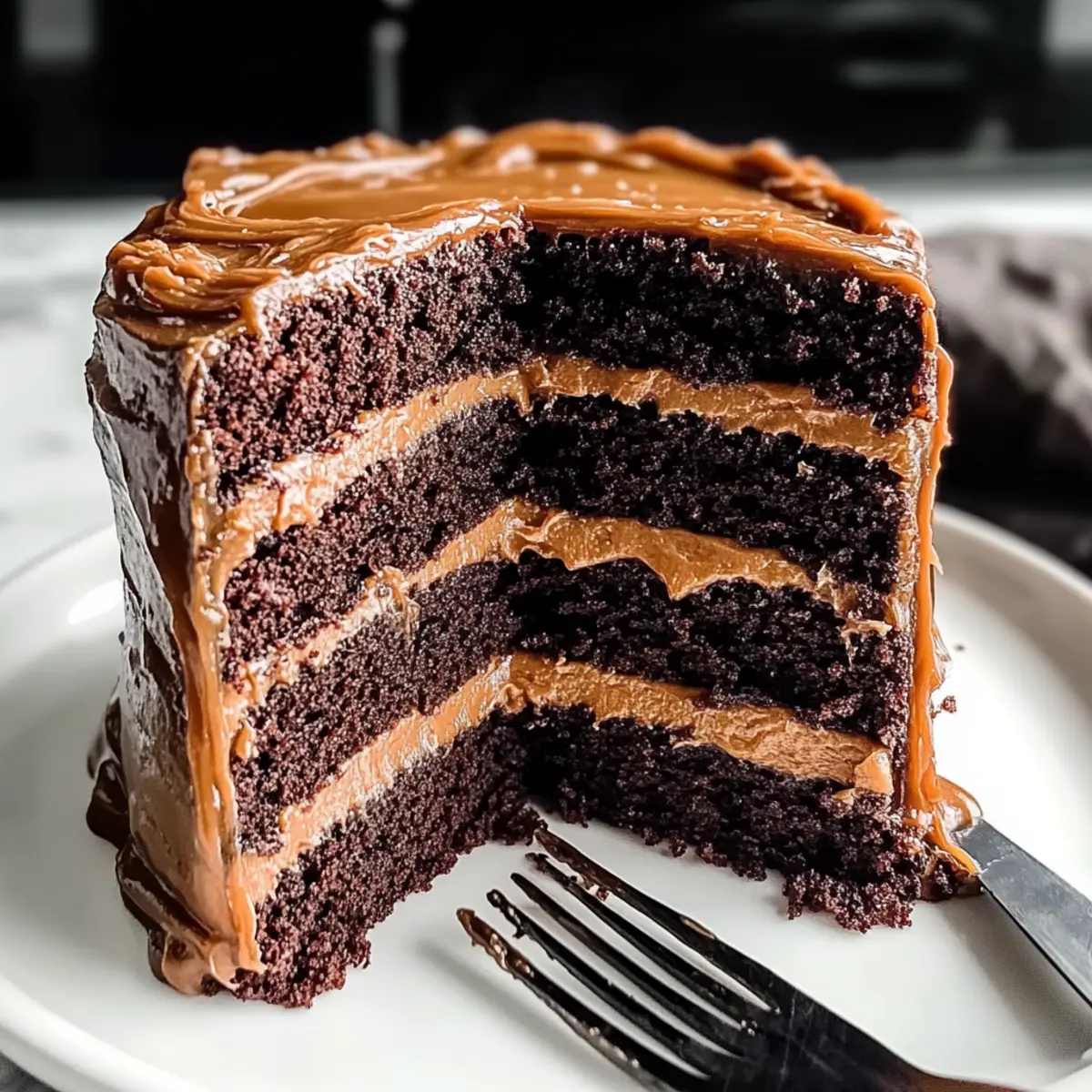 Facebook Twitter Pinterest LinkedInAs I sifted through the ingredients on a rainy afternoon, I felt a spark of inspiration—a decadent Chocolate Dulce de Leche Cake was calling my name. Combining rich chocolate and creamy caramel, this cake is the answer when you want to impress guests or simply indulge yourself. What I love most about this recipe is its delightful balance of flavors and the fact that it comes together quicker than you might think! Plus, it’s a treat that both novice and experienced bakers can master with ease. Whether you’re celebrating a special occasion or craving a sweet pick-me-up, this cake is sure to be a hit. Ready to get those heavenly layers into the oven? Let’s get baking! Why is this cake a crowd favorite? Decadent Layers: The Chocolate Dulce de Leche Cake features rich, cocoa-infused layers that melt in your mouth, making it a showstopper at any gathering. Irresistible Frosting: Topped with a luscious dulce de leche frosting, this cake elevates the classic chocolate experience to new heights of flavor. Simple Process: With straightforward steps, even beginner bakers can create this impressive dessert without stress. Versatile Appeal: Whether served at birthdays, holidays, or just because, it’s guaranteed to please chocolate lovers and caramel aficionados alike. Make-Ahead Magic: Prepare it in advance and enjoy its flavors for days! Plus, check out our Baked Summer Cake for another delightful dessert option. Chocolate Dulce de Leche Cake Ingredients For the Cake • All-purpose flour – Provides structure and softness; substitute with a gluten-free blend if needed. • Granulated sugar – Sweetens the cake; no substitutions necessary. • Cocoa powder – Adds a rich chocolate flavor; use Dutch-processed for a smoother taste. • Baking soda – Acts as a leavening agent; ensure it is fresh for best results. • Baking powder – Necessary for a light texture; don’t skip it! • Salt – Enhances flavor; it’s vital for balancing sweetness. • Vegetable oil – Keeps the cake moist; can be substituted with melted butter for a richer taste. • Buttermilk – Adds moisture and tang; may replace with regular milk mixed with vinegar. • Hot water – Activates cocoa powder, enhancing flavor; use boiling water for best outcomes. • Eggs – Provide moisture and structure; ensure they are at room temperature for proper mixing. • Vanilla extract – Adds depth of flavor; opt for pure extract for the best results. For the Frosting • Egg whites – Contribute to frosting volume and stability; can substitute with whipped aquafaba for a vegan option. • Dark brown sugar – Provides sweetness and moisture in the frosting; light brown sugar can work as a substitute. • Butter – Smoothes out the frosting; use unsalted for better control over salt content. • Dulce de leche – Infuses rich caramel flavor into the frosting; homemade adds a personal touch. For the Ganache • Heavy cream – Used in the ganache; substitute with coconut cream for a dairy-free option. • Dark chocolate – Creates a glossy finish for the ganache; adjust with milk chocolate for a sweeter taste. Prepare to indulge in a slice of Chocolate Dulce de Leche Cake that’s not just a dessert, but a celebration of flavors! Step‑by‑Step Instructions for Chocolate Dulce de Leche Cake Step 1: Preheat and Prepare the Pans Begin by preheating your oven to 350°F (175°C). While it heats up, grab two 9-inch round cake pans and generously grease them with butter or non-stick spray, then lightly dust them with flour to prevent sticking. This will help your decadent Chocolate Dulce de Leche Cake come out effortlessly after baking. Step 2: Whisk Dry Ingredients In a large mixing bowl, combine the all-purpose flour, granulated sugar, cocoa powder, baking soda, baking powder, and salt. Whisk these dry ingredients together thoroughly until well-blended; this step takes about 2-3 minutes. You’ll know they’re ready when the mixture is uniform in color and free of lumps, ensuring a smooth texture for your cake layers. Step 3: Mix Wet Ingredients In another bowl, mix together the vegetable oil, buttermilk, hot water, eggs, and vanilla extract until smooth and combined, which should take about 1-2 minutes. The hot water is key; it helps activate the cocoa powder and enhances the richness of your Chocolate Dulce de Leche Cake. Make sure everything is well-incorporated but avoid over-mixing. Step 4: Combine Wet and Dry Mixtures Gradually pour the wet mixture into the bowl with your dry ingredients, folding gently until just combined, about 1-2 minutes. Don’t worry if there are a few small lumps; it’s better to under-mix than over-mix. The batter should be thick but smooth, ready to create those moist layers of chocolate goodness. Step 5: Bake the Cake Layers Divide the batter evenly between your prepared cake pans. Place them in the preheated oven and bake for 30-35 minutes. To check for doneness, insert a toothpick into the center of the cakes; it should come out clean or with a few moist crumbs. This indicates your delectable Chocolate Dulce de Leche Cake layers are baked to perfection. Step 6: Cool the Cakes Once baked, remove the cake layers from the oven and allow them to cool in the pans for about 10 minutes. Then, carefully transfer the cakes to a wire rack to cool completely. This prevents moisture build-up and ensures your layers remain fluffy and light, ready for frosting. Step 7: Prepare the Frosting For the frosting, combine egg whites and dark brown sugar in a heatproof saucepan. Whisk this mixture over medium heat until the sugar has completely dissolved, about 3-4 minutes. Remove from heat and then transfer to a stand mixer, beating on high speed until stiff peaks form, which will take roughly 5-7 minutes, giving you a light and airy frosting. Step 8: Add Butter and Dulce de Leche Gradually incorporate softened unsalted butter into the whipped egg white mixture while 