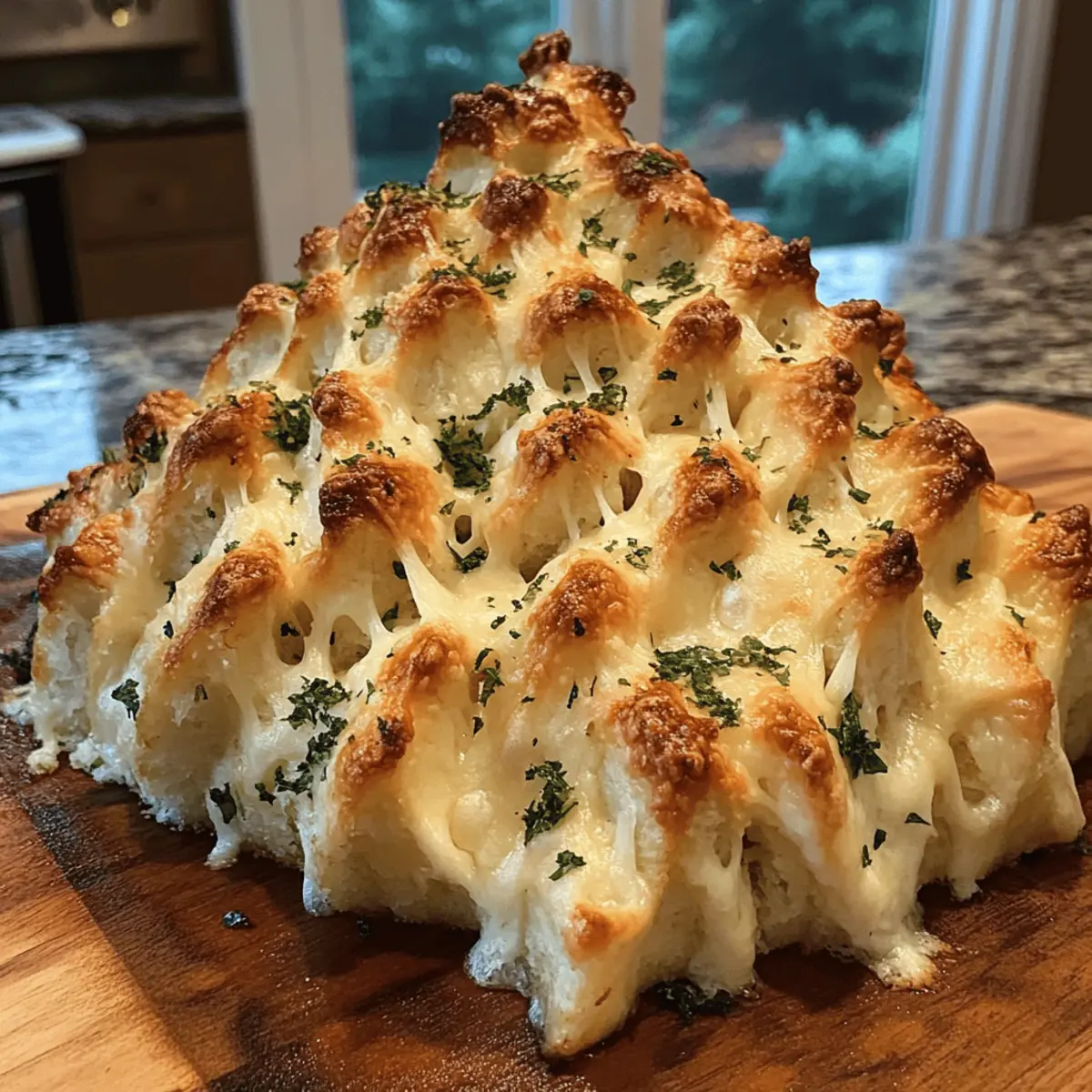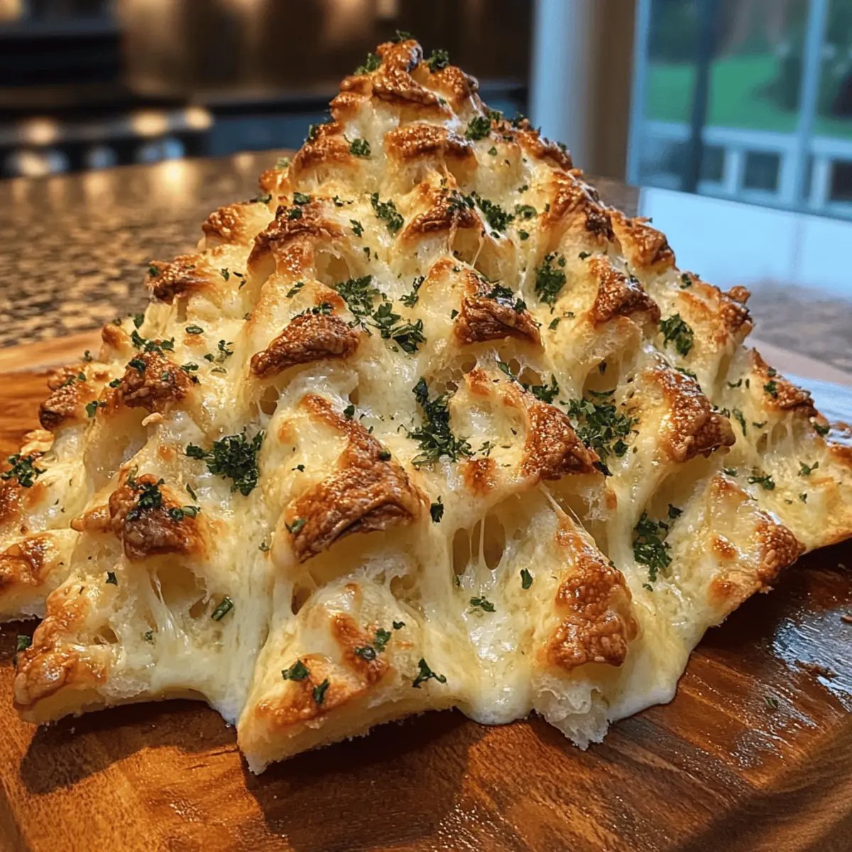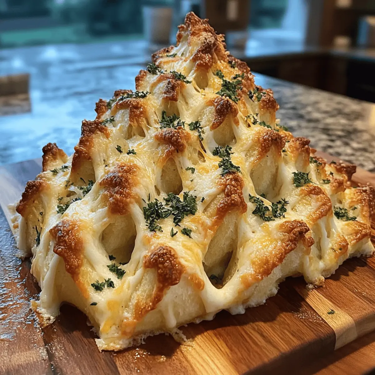 The aroma of fresh, baked bread wafting through the kitchen is one of those magical scents that can instantly transport me back to childhood holidays. This Cheesy Christmas Tree Bread is my answer to festive gatherings, merging a delightful display with warm, gooey deliciousness. It’s not just a treat for the taste buds; this pull-apart bread becomes a stunning centerpiece that will wow your guests in under 45 minutes! Plus, it’s incredibly easy to customize—whether you’re going for vegetarian options or gluten-free swaps, there’s room for everyone at the table. So, are you ready to make your holiday celebrations a little more cheesy and a whole lot more fun? Why is This Christmas Tree Bread a Must? Unique Presentation: A stunning centrepiece that not only dazzles visually but also makes for a fun, interactive dining experience. Endless Customization: Easily adapt this recipe for dietary preferences, offering vegetarian and gluten-free options to ensure everyone enjoys. Festive Flavors: The blend of mozzarella, cheddar, and fresh herbs creates a mouthwatering taste that’ll have guests coming back for more. Quick Prep Time: Whip up this delightful appetizer in under 45 minutes, making it the perfect last-minute addition to your holiday spread. Crowd-Pleaser: It’s an irresistible treat that promises smiles and satisfied appetites, ideal for holiday gatherings! Pair with a side of Cheesy Garlic Bread or Cheesy Breadsticks Philly for an extra cheesy celebration! Christmas Tree Bread Ingredients For the Dough • Refrigerated Pizza Dough – This is the base structure, and you can also use 2 cans of biscuit dough. • Unsalted Butter – Adds richness and assists in browning for that attractive golden color. For the Cheese Filling • Fresh Mozzarella Cheese – Ideal for that melty pull; use low-moisture mozzarella for easier handling. • Sharp Cheddar Cheese – Enhances flavor and adds a delightful sharpness to the filling. For the Seasoning • Garlic – Minced for flavoring the butter mixture, elevating the overall taste. • Fresh Parsley – Brings a touch of brightness and freshness; substitute with basil or thyme for a different twist. • Fresh Rosemary – This aromatic herb introduces an earthy note. • Dried Oregano – An additional layer of flavor that complements the cheeses beautifully. • Red Pepper Flakes (optional) – Add a hint of spice to your Christmas Tree Bread if you want some heat. • Salt – Essential for enhancing all flavors in the recipe. For Assembly • Egg – Beaten, for egg wash to provide a lovely golden finish on your bread. For Garnish • Fresh Rosemary Sprigs – Adds a festive touch for decoration. • Halved Cherry Tomatoes – Bright and colorful accents to your tree. • Yellow Bell Pepper Star – A cheerful garnish to crown your Christmas Tree Bread! Embrace the holiday spirit with this Christmas Tree Bread, and let the cheesy goodness be the highlight of your festive gatherings! Step‑by‑Step Instructions for Cheesy Christmas Tree Bread Step 1: Preheat and Prepare Begin by preheating your oven to 375°F (190°C). While the oven heats, line a large baking sheet with parchment paper for easy cleanup and to prevent sticking. This Cheesy Christmas Tree Bread will become the flavorful centerpiece of your holiday gathering, so making sure your workspace is ready will streamline the assembly process. Step 2: Bring Dough to Room Temperature Allow your refrigerated pizza dough or biscuit dough to come to room temperature for about 15 to 20 minutes. This step is crucial as it makes the dough easier to shape and create those delightful layers. A slightly warmed dough ensures better puffing during baking, leading to that irresistible pull-apart quality you’re aiming for. Step 3: Prepare the Flavorful Butter Mixture In a small bowl, melt 4 tablespoons of unsalted butter. Once melted, stir in 3 minced garlic cloves, 2 tablespoons of finely chopped fresh parsley, 1 tablespoon of finely chopped fresh rosemary, ½ teaspoon of dried oregano, and ¼ teaspoon of red pepper flakes (if using) along with ¼ teaspoon of salt. This fragrant butter mixture will infuse your Christmas Tree Bread with rich flavor and an aromatic touch. Step 4: Shape the Dough For pizza dough, roll it out into a rectangular shape approximately ¼ inch thick. Use a round cutter or a glass to cut out circles measuring 2.5-3 inches in diameter. If you’re using biscuit dough, simply flatten each biscuit into a circle. This step ensures a uniform size for each layer of dough in your Cheesy Christmas Tree Bread, helping it rise beautifully in the oven. Step 5: Mix the Cheese Filling In a medium bowl, combine 8 ounces of shredded fresh mozzarella cheese and 4 ounces of sharp cheddar cheese. Tossing the cheeses together will allow for even distribution of flavors throughout your Christmas Tree Bread. The combination of these cheeses creates that melty goodness that is so irresistible and inviting during festive gatherings. Step 6: Brush the Dough Circles Using a pastry brush, generously brush one side of each dough circle with the prepared garlic butter mixture. This flavorful coating will add richness and aid in browning during baking, resulting in a beautifully golden exterior on your bread. Make sure to coat all circles to ensure they taste delightful from the very first bite. Step 7: Assemble Your Christmas Tree Begin stacking the dough circles on the prepared baking sheet, starting with the trunk at the bottom, followed by layers of cheese in between each dough circle. Aim for a Christmas tree shape, tapering towards the top. This assembly creates not only a stunning visual appeal but also ensures that each pull reveals a gooey stretch of melted cheese. Step 8: Add Finishing Touches Once assembled, brush the entire dough tree with any leftover garlic butter mixture and a beaten egg for a beautiful, shiny finish. This step adds to the visual appeal of your Cheesy Chri