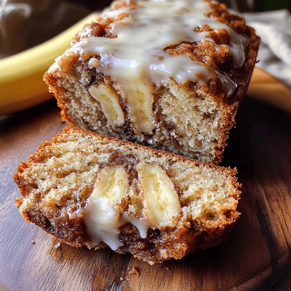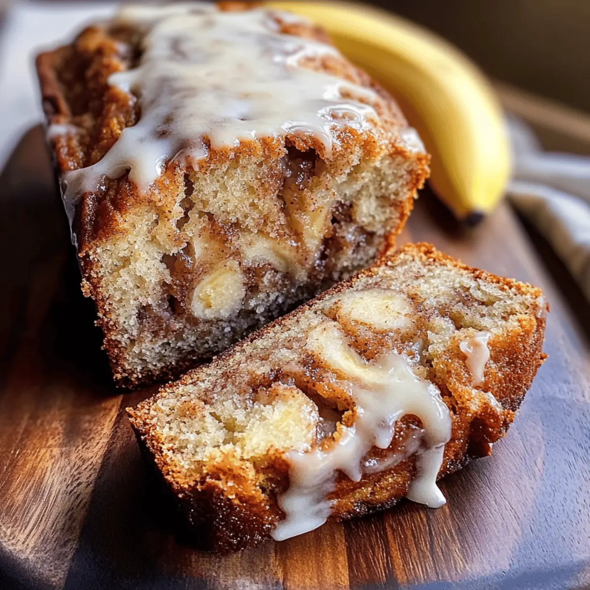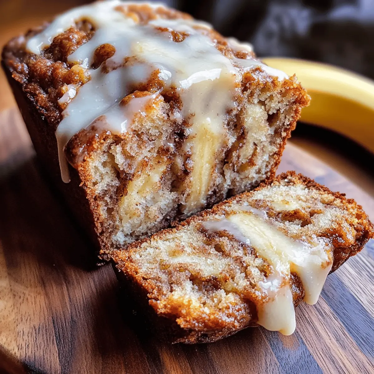 As the aroma of cinnamon starts to fill the kitchen, it feels like a warm hug from my oven. The star of the show today is my Easy Vegan Cinnamon Roll Banana Bread, a delightful meld of sweet, overripe bananas and tantalizing cinnamon swirls that’s perfect for breakfast or an indulgent snack. Not only is this recipe simple to whip up, but it’s also vegan and gluten-free, making it accessible for everyone to enjoy. Each slice boasts a moist, tender crumb and a comforting warmth that will have your loved ones coming back for seconds—or even thirds! With minimal prep time and maximum flavor, this homemade treat is surely destined to become a family favorite. So, are you ready to fill your home with the mouthwatering scent of freshly baked banana bread? Let’s dive in! Why will you adore this banana bread? Simplicity at its finest: The Easy Vegan Cinnamon Roll Banana Bread requires minimal ingredients and is quick to prepare, making it perfect for busy mornings. Delectable flavors combine sweet bananas with cinnamon swirls, elevating any breakfast or snack. Dietary-friendly and versatile, this loaf caters to both vegan and gluten-free diets, ensuring everyone can join in on the fun. Moist and tender, each slice offers a comforting bite that’s perfect for sharing or savoring alone. Don’t forget to enjoy it warm, with options like a drizzle of vegan icing or alongside a cup of tea; it’s the ultimate cozy treat! Cinnamon Roll Banana Bread Ingredients For the Bread • Mashed Bananas – Use overripe bananas for the best moisture and natural sweetness. • Vegan Butter – Adds richness; can be substituted with coconut oil for a different flavor. • Maple Syrup – A natural sweetener; honey works if you’re not keeping it vegan. • Almond Milk – Keeps the recipe dairy-free; feel free to swap with any plant-based milk. • Vanilla Extract – Enhances flavors; choose pure extract for the best taste. • All-Purpose Flour – The base of the batter; opt for gluten-free flour for a gluten-free version. • Baking Powder & Baking Soda – Ensure your bread rises beautifully and has a light texture. • Cinnamon – Essential for the classic cinnamon roll flavor; use fresh for the best aroma. • Salt – Balances the sweetness and elevates flavor. • Brown Sugar – For the cinnamon swirl, it caramelizes wonderfully; coconut sugar can be a healthier choice. For Optional Icing • Powdered Sugar – Perfect for drizzling on top for added sweetness and a delightful presentation. Enjoy making this Cinnamon Roll Banana Bread that everyone will love! Step‑by‑Step Instructions for Cinnamon Roll Banana Bread Step 1: Preheat the Oven Begin by preheating your oven to 350°F (175°C). This ensures an even baking temperature for your Cinnamon Roll Banana Bread. While the oven warms up, you can gather all your ingredients and prepare your loaf pan by greasing it lightly with vegan butter or lining it with parchment paper for easy removal after baking. Step 2: Mix Wet Ingredients In a large mixing bowl, combine the mashed bananas, melted vegan butter, maple syrup, almond milk, and vanilla extract. Use a fork or a whisk to mix these ingredients thoroughly for about 2-3 minutes, ensuring that the bananas are well incorporated and the mixture is smooth and creamy. This step creates the moist base for your bread. Step 3: Combine Dry Ingredients In a separate bowl, whisk together the all-purpose flour, baking powder, baking soda, cinnamon, and salt. This dry mix helps the Cinnamon Roll Banana Bread achieve a light, airy texture. Ensure the ingredients are well blended, with no lumps, by whisking for about a minute. Setting this mixture aside will prep you for the next step. Step 4: Incorporate Dry into Wet Ingredients Gradually add the dry ingredients to the wet ingredients, folding them together gently. Use a spatula to combine until just mixed, around 30-45 seconds. Be careful not to overmix, as this can make the bread dense. You want to see a few streaks of dry flour remaining; this is normal and helps keep the bread light and fluffy. Step 5: Prepare the Cinnamon Swirl In a small bowl, mix together melted vegan butter, brown sugar, and cinnamon to create the swirl mixture. Stir until it’s completely combined and has a thick, paste-like consistency. This delightful mixture will make all the difference in creating that signature cinnamon roll effect within the banana bread. Step 6: Layer the Batter Pour half of the batter into your prepared loaf pan, spreading it evenly. Drizzle half of the cinnamon swirl mixture over the batter, then spoon the remaining batter on top, making a second layer. Finally, use the remaining swirl mixture and lightly swirl it into the top layer with a knife or toothpick, creating beautiful spirals of cinnamon. Step 7: Bake the Bread Place the loaf pan in the preheated oven and bake for approximately 45 minutes. Keep an eye on your bread; it’s ready when the top is golden brown, and a toothpick inserted in the center comes out clean or with a few moist crumbs attached. This visual cue signals that your Cinnamon Roll Banana Bread has baked perfectly. Step 8: Cool and Ice (Optional) Once baked, remove the loaf from the oven and allow it to cool in the pan for about 10 minutes. After that, carefully transfer it to a wire rack to cool completely. If desired, mix powdered sugar with a small amount of almond milk to create a drizzleable icing, and once the bread is cool, drizzle it generously over the top for a sweet finish to your Cinnamon Roll Banana Bread. What to Serve with Cinnamon Roll Banana Bread? Enhance your cinnamon-scented creation with delightful pairings that balance sweetness and add vibrant flavors to your cozy experience. Creamy Nut Butter: A dollop of almond or peanut butter provides a satisfying, rich contrast to the sweet banana bread. Fresh Berries: Bright, tart strawberries or blueberries elevate your breakfast with refreshing juiciness, compliment