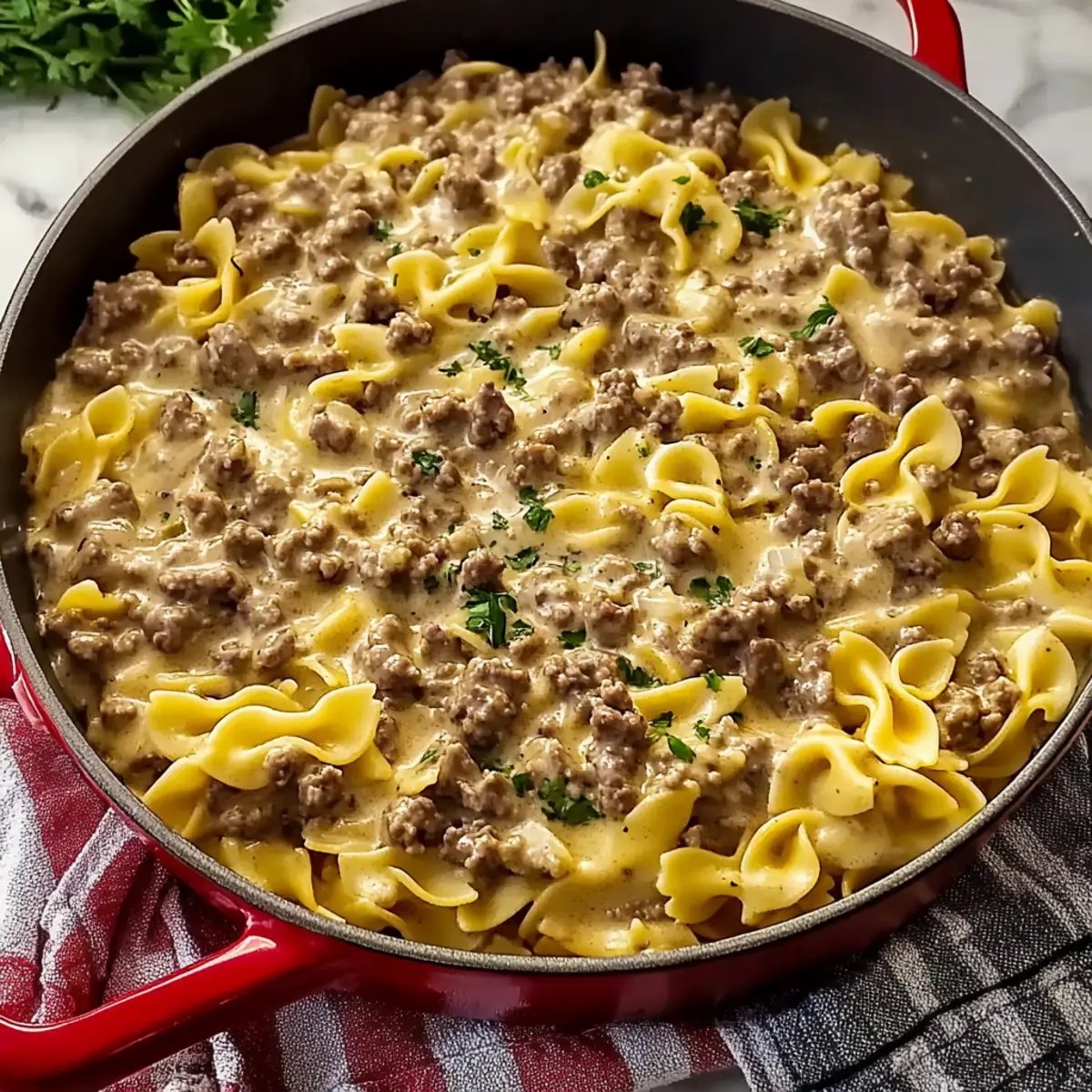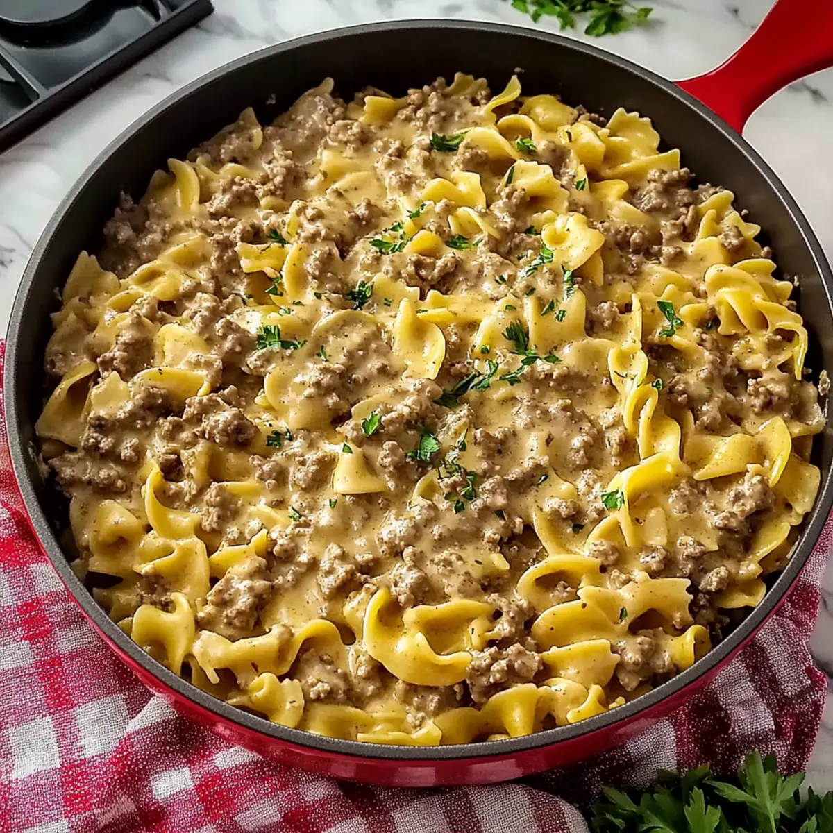 Facebook Twitter Pinterest LinkedIn“Where have you been all my life?” my partner exclaimed as they took their first bite of my Homemade Hamburger Helper Beef Stroganoff. This one-pan wonder captures the soul-soothing essence of comfort food, transforming our busy weeknight routines into something special. With its creamy sauce, tender beef, and perfectly cooked egg pasta, this dish is not just a meal; it’s a delightful experience that’s ready in under 30 minutes. Perfect for busy families and anyone longing for a taste of nostalgia, this easy weeknight meal is bound to please even the pickiest eaters. Whether you’re a seasoned home-chef or just looking to escape the fast-food grind, you’ll fall in love with the simple pleasure of this creamy beef stroganoff. So, are you ready to bring a little warmth and joy to your dinner table? Why Is This Beef Stroganoff So Irresistible? Simplicity, this one-pot wonder comes together effortlessly in under 30 minutes, perfect for busy weeknights. Flavor-packed, the rich, creamy sauce envelops tender beef and pasta, delivering mouth-watering satisfaction. Versatile, customize it with your choice of proteins or add veggies like spinach to elevate the nutrition. Crowd-pleaser, this dish is sure to win over even the pickiest eaters, making it a fantastic family favorite. Try it alongside a fresh side salad or some buttery garlic bread for a complete meal that brings everyone back for seconds! Comforting Hamburger Helper Beef Stroganoff Ingredients For the Beef Ground Beef – Provides flavor and protein; using 80/20 enhances taste while 90/10 can work with mindful fat drainage. Salt – Enhances flavor; adjust the amount to suit your taste preference. Black Pepper – Adds heat and depth; freshly ground ensures the best flavor. For the Sauce Garlic Powder – Infuses a savory aroma; fresh garlic could be a lovely alternative for a more intense flavor. Onion Powder – Contributes mild sweetness; fresh onions can be used, adjusting quantity to your taste. Cornstarch – Thickens the sauce; can be substituted with flour, though it changes the flavor slightly. Beef Broth – Provides depth of flavor; opt for low-sodium if watching salt intake. Milk – Adds creaminess; feel free to substitute with half-and-half for a richer sauce. Worcestershire Sauce – Introduces umami flavor; soy sauce is a great gluten-free alternative. For the Pasta Egg Pasta – Serves as the main carbohydrate; gluten-free pasta can be used for a gluten-free version. For the Creamy Base Cream of Mushroom Soup – Creates that delicious creamy sauce; consider homemade or vegan substitutes. Sour Cream – Adds richness and tang; use full-fat for the best results, or Greek yogurt as a substitute. Paprika – Enhances color and flavor; smoked paprika can add an extra depth of taste. Feel the warmth and joy of this comforting Hamburger Helper Beef Stroganoff as you gather the ingredients for your homemade family favorite! Step‑by‑Step Instructions for Comforting Hamburger Helper Beef Stroganoff Step 1: Brown the Ground Beef In a large skillet or Dutch oven over medium-high heat, add the ground beef. Cook for 5–7 minutes, stirring frequently until it’s browned and no longer pink. Use a wooden spoon to break up any large chunks, ensuring the beef is evenly browned and flavorful. Step 2: Season the Meat Once the beef is browned, mix in salt, black pepper, garlic powder, and onion powder. Stir well to ensure the meat is evenly coated with the seasonings, enhancing the flavors of your comforting Hamburger Helper Beef Stroganoff. Sauté for another minute until the spices become aromatic. Step 3: Thicken the Mixture Sprinkle the cornstarch over the seasoned beef, stirring quickly for about 30 seconds to coat the meat and create a thickening base. This step is crucial for the creamy texture of your luscious sauce as it forms the foundation for your savory dish. Step 4: Prepare the Sauce Base Remove the beef from the skillet and pour in the beef broth, milk, and Worcestershire sauce. Be sure to scrape up any browned bits from the bottom of the pan for added flavor. Bring the mixture to a gentle boil, which will enhance the richness of your comforting Hamburger Helper Beef Stroganoff. Step 5: Add the Pasta Once boiling, add the egg pasta to the liquid, stirring gently to ensure it’s evenly dispersed. Cover the skillet and reduce heat to simmer. Cook for 8 minutes, stirring occasionally, until the pasta is al dente and has absorbed some of that creamy goodness. Step 6: Combine All Ingredients Return the browned beef to the skillet, then stir in the cream of mushroom soup and sour cream until well incorporated. This mixture will create a rich, creamy sauce that envelops the pasta and beef, giving your stroganoff its comforting texture and flavor. Step 7: Finish Cooking Add paprika to the skillet and stir well, allowing the mixture to simmer for an additional 2-3 minutes. This final step helps the flavors meld beautifully, creating a thick, creamy sauce that coats everything perfectly. Let it rest briefly off the heat for an optimal silky finish. Make Ahead Options These comforting Hamburger Helper Beef Stroganoff ingredients are perfect for meal prep enthusiasts! You can brown the ground beef and season it up to 24 hours in advance; refrigerate (in an airtight container) until you’re ready to cook. Additionally, the creamy sauce base (made with beef broth, milk, and Worcestershire sauce) can be prepared up to 3 days ahead and stored separately in the fridge. When you’re ready to serve, simply combine the prepped components, add the pasta to boiling liquid, and continue with the recipe as directed. This ensures that every bite of your homemade comfort food remains just as delicious and satisfying while saving you valuable time on busy weeknights! Comforting Hamburger Helper Beef Stroganoff Variations Feel free to get creative with your hamburger helper beef stroganoff; there a