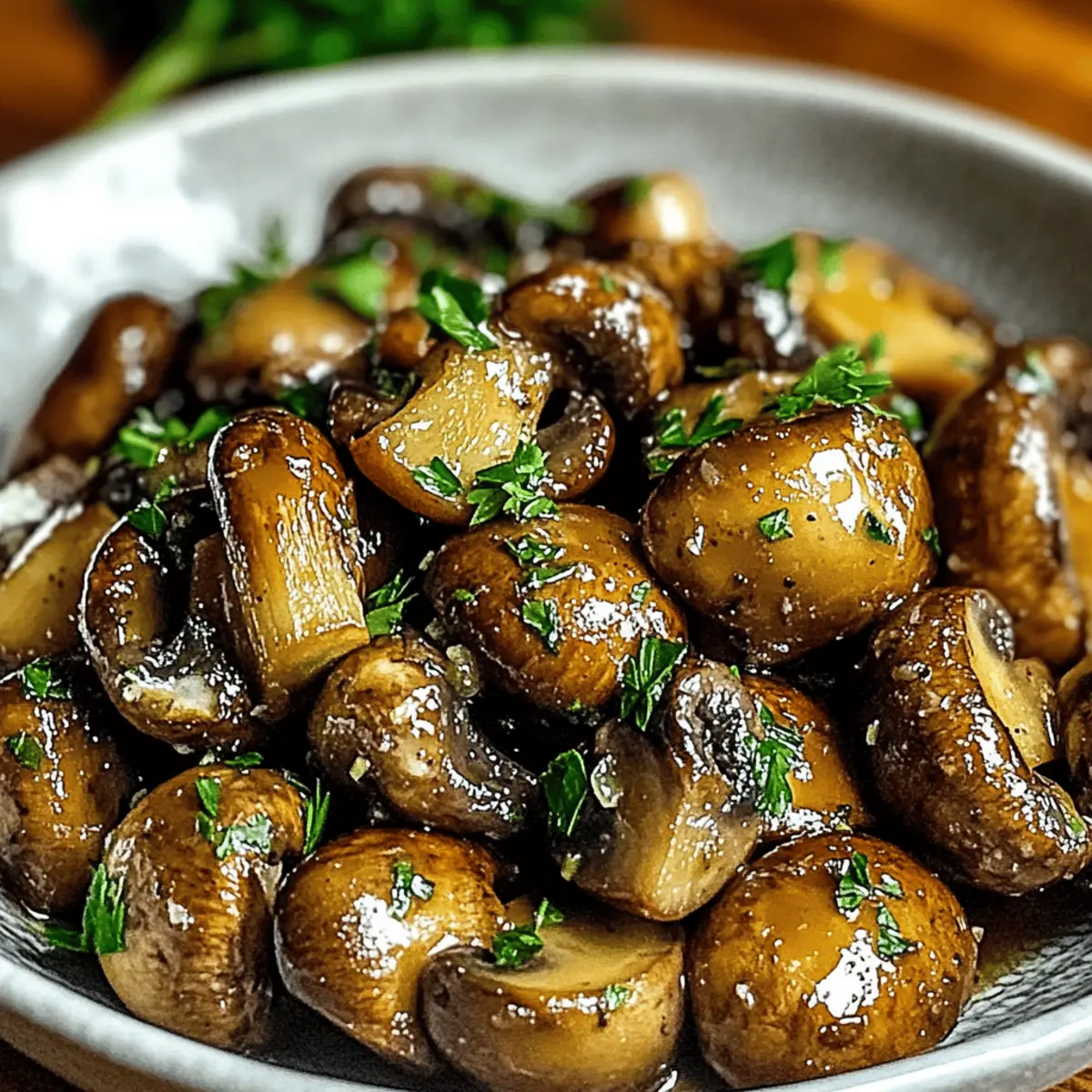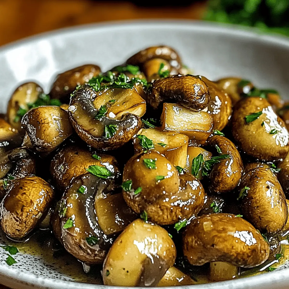 I still chuckle when I recall the first time I tasted Cowboy Mushrooms at a friend’s backyard barbecue. As I watched those plump, earthy morsels sizzling in a hot skillet, I knew I was in for a treat! Cowboy Mushrooms are a delightful vegetarian side dish that brings a savory punch to any meal. The best part? They’re not just easy to whip up; their versatility allows you to serve them alongside everything from grilled steak to creamy mashed potatoes. With succulent baby Bella mushrooms sautéed in buttery garlic goodness, each bite is an invitation to savor the moment. Ready to ride the flavor trail with me? Let’s dive into this recipe that’s sure to spice up your dinner table! Why are Cowboy Mushrooms a Must-Try? Simplicity at Its Best: The quick prep and cooking time make these savory mushrooms incredibly easy to whip up, perfect for busy weeknights. Rich, Bold Flavor: With the harmonious blend of butter, garlic, and sauces, Cowboy Mushrooms deliver a mouthwatering taste that complements any dish beautifully. Versatile Pairing Options: Whether as a topping for your favorite steak, mixed into pasta, or served alongside mashed potatoes, these mushrooms elevate every meal. Hearty Alternatives: Ideal for vegetarians or anyone looking to reduce meat intake, Cowboy Mushrooms provide a satisfying, meaty texture without sacrificing flavor. Crowd-Pleaser: Guests will be raving about these mushrooms; they truly make any gathering feel special! For more delicious sides, check out Cowboy Soup Hearty or add a cheesy twist to your spread with Cowboy Queso Cheese. Cowboy Mushrooms Ingredients For the Sauté • Baby Bella Mushrooms – Fresh mushrooms deliver that earthy, meaty texture that’s perfect for this savory side dish. • Butter – Adds a rich, buttery flavor that enhances the overall taste of the Cowboy Mushrooms. • Garlic – Fresh minced garlic infuses the dish with aromatic, savory notes that complement the mushrooms beautifully. • Worcestershire Sauce – A splash of this sauce contributes depth and umami flavor to your mushrooms. • Soy Sauce – Enhances the savory profile with an extra layer of saltiness; low-sodium soy sauce is an excellent alternative. • Black Pepper – A dash of black pepper adds a little spice and intensifies the overall flavor. • Fresh Parsley – Chopped parsley not only adds freshness but also brings a lovely pop of color; chives can be a tasty substitute. Step‑by‑Step Instructions for Cowboy Mushrooms Step 1: Clean and Prep Mushrooms Start by gently wiping the baby Bella mushrooms with a damp paper towel to remove any dirt. If the stems are tough or damaged, trim them off carefully. Once cleaned, set the mushrooms aside, ensuring they’re dry and ready for cooking in your skillet. Step 2: Sauté Garlic In a large skillet, melt two tablespoons of butter over medium heat. As the butter sizzles, add the minced garlic and sauté for 1-2 minutes, stirring frequently, until the garlic becomes fragrant and golden. This aromatic base will infuse your Cowboy Mushrooms with delicious flavor. Step 3: Cook Mushrooms Add the prepared baby Bella mushrooms to the skillet, ensuring they are arranged in a single layer. Sauté the mushrooms for 8-10 minutes, stirring occasionally, until they release their moisture and start to brown. Look for a rich golden hue that indicates they are cooking perfectly. Step 4: Add Sauces and Pepper Once the mushrooms are browned, reduce the heat slightly and stir in the Worcestershire sauce, soy sauce, and a generous dash of black pepper. Let the mixture cook for another 2-3 minutes, allowing the Cowboy Mushrooms to absorb all those savory flavors. Step 5: Finish with Parsley Remove the skillet from heat and sprinkle the chopped fresh parsley over the Cowboy Mushrooms. This adds a pop of color and fresh flavor to the dish. Serve immediately while hot and enjoy these savory mushrooms as a delightful side to any meal! How to Store and Freeze Cowboy Mushrooms Fridge: Store leftover Cowboy Mushrooms in an airtight container for up to 3 days. Ensure they cool completely before sealing to maintain freshness. Freezer: If you want to enjoy them later, freeze mushrooms in a single layer on a baking sheet before transferring to an airtight container. They’ll last up to 3 months. Reheating: To reheat, gently sauté the mushrooms in a skillet over medium heat until warmed through. This helps retain their tender texture and rich flavor. What to Serve with Cowboy Mushrooms? The perfect meal is within reach when you pair these rich, savory mushrooms with something delicious to complement their flavors. Creamy Mashed Potatoes: The fluffy, buttery texture of mashed potatoes balances the robust earthiness of the Cowboy Mushrooms, creating a comforting duo perfect for any dinner table. Grilled Steak: The smoky, charred flavor of a grilled steak harmonizes beautifully with the savory notes of the mushrooms, making for a true meat-lover’s dream meal. Fresh Garden Salad: Crisp lettuce, juicy tomatoes, and a drizzle of tangy dressing provide refreshing contrast, cleansing the palate between bites of the richly seasoned mushrooms. Herb-Infused Rice: Fluffy rice infused with fresh herbs and a hint of lemon brightens the dish while soaking up the delicious juices from the Cowboy Mushrooms, making every spoonful delightful. Pasta Primavera: Toss Cowboy Mushrooms into a vibrant vegetable pasta for added texture and depth. The flavors meld beautifully, inviting everyone to twirl their forks with glee. Crispy Roasted Brussels Sprouts: The slight bitterness of roasted Brussels sprouts offers an exciting taste contrast, while the crunch adds an enjoyable texture next to the tender mushrooms. Red Wine: A glass of velvety red complements the savory profile of the Cowboy Mushrooms, enhancing the meal’s overall richness and making for a sophisticated dining experience. Garlic Bread: Serve alongside warm, crispy garlic bread to soak up any leftover