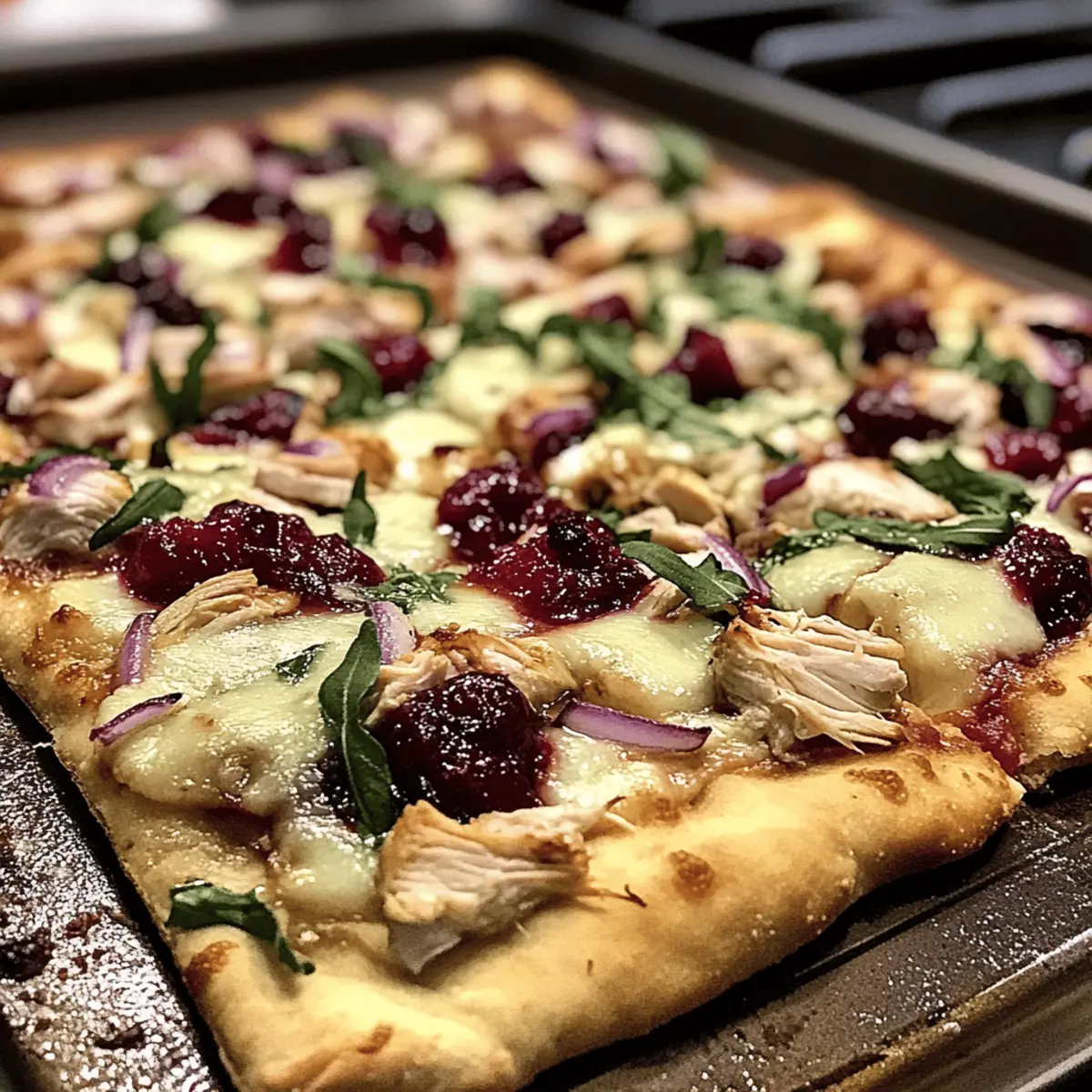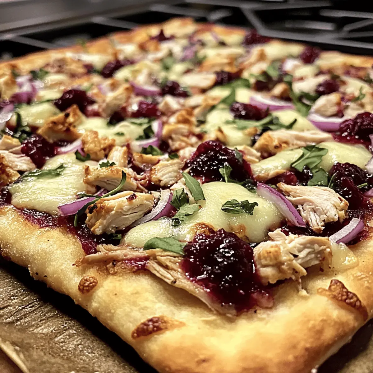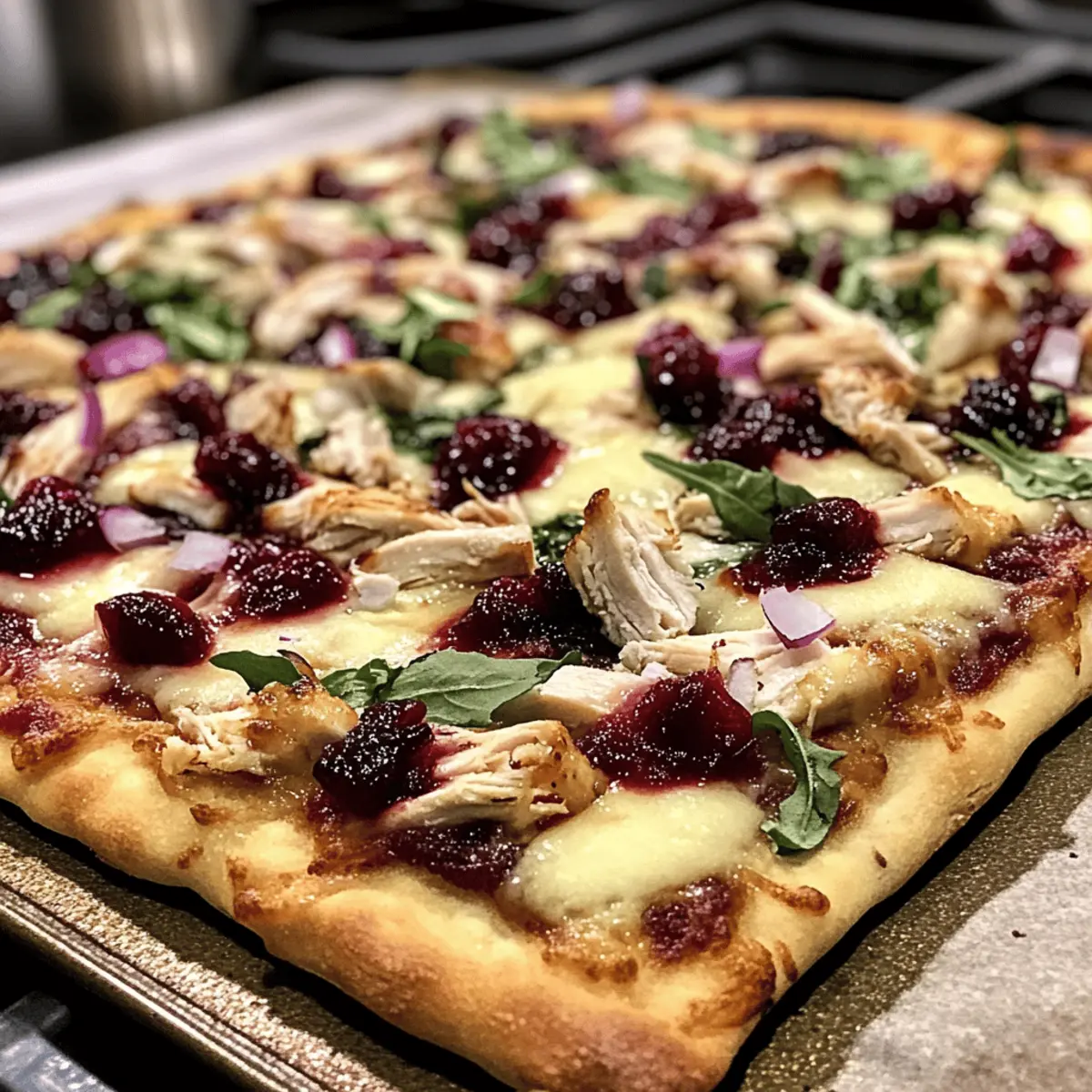 As I stood in my kitchen, an intriguing aroma wafted through the air, pulling me back to countless holiday dinners spent with loved ones. That’s when the idea struck: why not combine the sweet, tangy flavors of leftover turkey and cranberry sauce into something new and delicious? Enter the Cranberry Chicken & Brie Pizza. In just 25 minutes, you can transform those holiday leftovers into a quick, savory dinner that feels special yet satisfyingly casual. Not only is this pizza a fantastic way to use up the remnants of your festive feasting, but it’s also a delightful crowd-pleaser that even picky eaters will love. Ready to take your pizza game to the next level with this unique twist? Let’s dive in! Why is this pizza a must-try? Quick and Easy: In just 25 minutes, you can whip up this delicious meal, perfect for weeknight dinners. Bursting with Flavor: The combination of sweet cranberry sauce and rich Brie cheese creates a delightful balance that will keep you coming back for more. Creative Use of Leftovers: No need to let those holiday leftovers go to waste; transform them into a mouthwatering pizza that tastes gourmet! Crowd-Pleasing Appeal: Even the pickiest eaters will enjoy each slice, making it a fantastic option for family gatherings or casual get-togethers. Versatile Ingredients: Feel free to adjust toppings or try alternatives like adding fresh spinach or replacing Brie with goat cheese for a fun twist. This pizza is not only a meal but a new way to enjoy familiar flavors! Why not try pairing it with a refreshing side salad, like my Grilled Chicken Broccoli, for a complete dinner? Cranberry Chicken & Brie Pizza Ingredients • Perfect for quick, flavorful meals! For the Crust Pizza Crust – Choose pre-made for convenience or whip up a quick homemade version for freshness. For the Pizza Toppings Shredded Chicken – This provides the main protein; leftover turkey is a delicious substitute! Cranberry Sauce – Adds a sweet-tangy punch; whole-berry sauce elevates the texture! Brie Cheese – Offers creamy richness; swap with tangy Camembert if desired. Mozzarella Cheese – Essential for that gooey melt that makes each slice irresistible. Red Onion – Adds a crunchy kick; try caramelizing for a sweeter flavor. Olive Oil – Enhances flavor and crisps the crust; opt for extra virgin for the best quality. Thyme (fresh/dried) – Brings aromatic herbal notes; oregano works well as a substitute. Salt & Pepper – Critical for enhancing all the flavors; season to your taste. Fresh Arugula or Spinach – Provides a peppery freshness, balancing the pizza’s richness. Each ingredient works harmoniously to create a wonderful experience with this Cranberry Chicken & Brie Pizza, allowing you to savor flavors that remind you of home-cooked comfort! Step‑by‑Step Instructions for Cranberry Chicken & Brie Pizza Step 1: Preheat Oven Begin by preheating your oven to 425°F (220°C). This temperature is ideal for achieving a perfectly crispy crust and gooey melted cheese. Allow the oven to reach this temperature while you prepare the crust and toppings, ensuring everything is ready to go once the assembly begins. Step 2: Prepare Crust Roll out your pre-made pizza crust onto a baking sheet lined with parchment paper for easy cleanup. Use a rolling pin to create an even thickness, about ¼-inch. Drizzle a light coat of olive oil over the surface to enhance flavor and promote a golden, crispy texture during baking. Step 3: Mix Chicken and Sauce In a medium mixing bowl, combine the shredded chicken with cranberry sauce, mixing well until the chicken is evenly coated. This blend of savory chicken and sweet cranberry will be the star of your Cranberry Chicken & Brie Pizza. Set aside to allow the flavors to meld while you assemble the pizza. Step 4: Assemble Pizza Spread the cranberry-chicken mixture evenly over the prepared crust, making sure to cover it almost to the edges. Layer slices of creamy Brie cheese atop the chicken, followed by a generous sprinkle of shredded mozzarella for that signature meltiness. Add thinly sliced red onion for a touch of crunch and sweetness. Step 5: Season and Bake Drizzle a bit more olive oil over the assembled pizza and lightly sprinkle with thyme, salt, and pepper to taste. Place the pizza in the preheated oven and bake for 12-15 minutes or until the cheese is melted, bubbly, and slightly golden. Keep an eye on it to achieve a perfect crust without burning. Step 6: Add Fresh Greens Once the Cranberry Chicken & Brie Pizza is done baking, carefully remove it from the oven and let it cool for a couple of minutes. This will make slicing easier. Top the warm pizza with fresh arugula or spinach for a vibrant, peppery finish that balances the richness of the cheese and sauce before slicing and serving. Make Ahead Options Cranberry Chicken & Brie Pizza is perfect for meal prep, allowing you to save time on busy weeknights! You can prepare the cranberry-chicken mixture up to 24 hours in advance; simply combine the shredded chicken with the cranberry sauce and refrigerate in an airtight container. Additionally, you can roll out the pizza crust, brush it with olive oil, and keep it in the fridge until you’re ready to assemble and bake. When it’s time to serve, layer the mixture over the crust, add the cheeses and onion, then bake as instructed. This method ensures your pizza remains just as delicious and fresh while making dinner a breeze! Cranberry Chicken & Brie Pizza Variations Feel free to let your creativity shine as you customize this delightful pizza to match your tastes! Cheese Alternatives: Swap Brie for goat cheese for a tangy twist. The creaminess will transform into a flavor explosion! Add Vegetables: Incorporate sautéed mushrooms or bell peppers for added flavor and nutrition. These ingredients will enhance the pizza’s depth and texture. Spicy Kick: Include jalapeños or crushed red pepper flakes for a touch of heat. The spice will create a delicious
