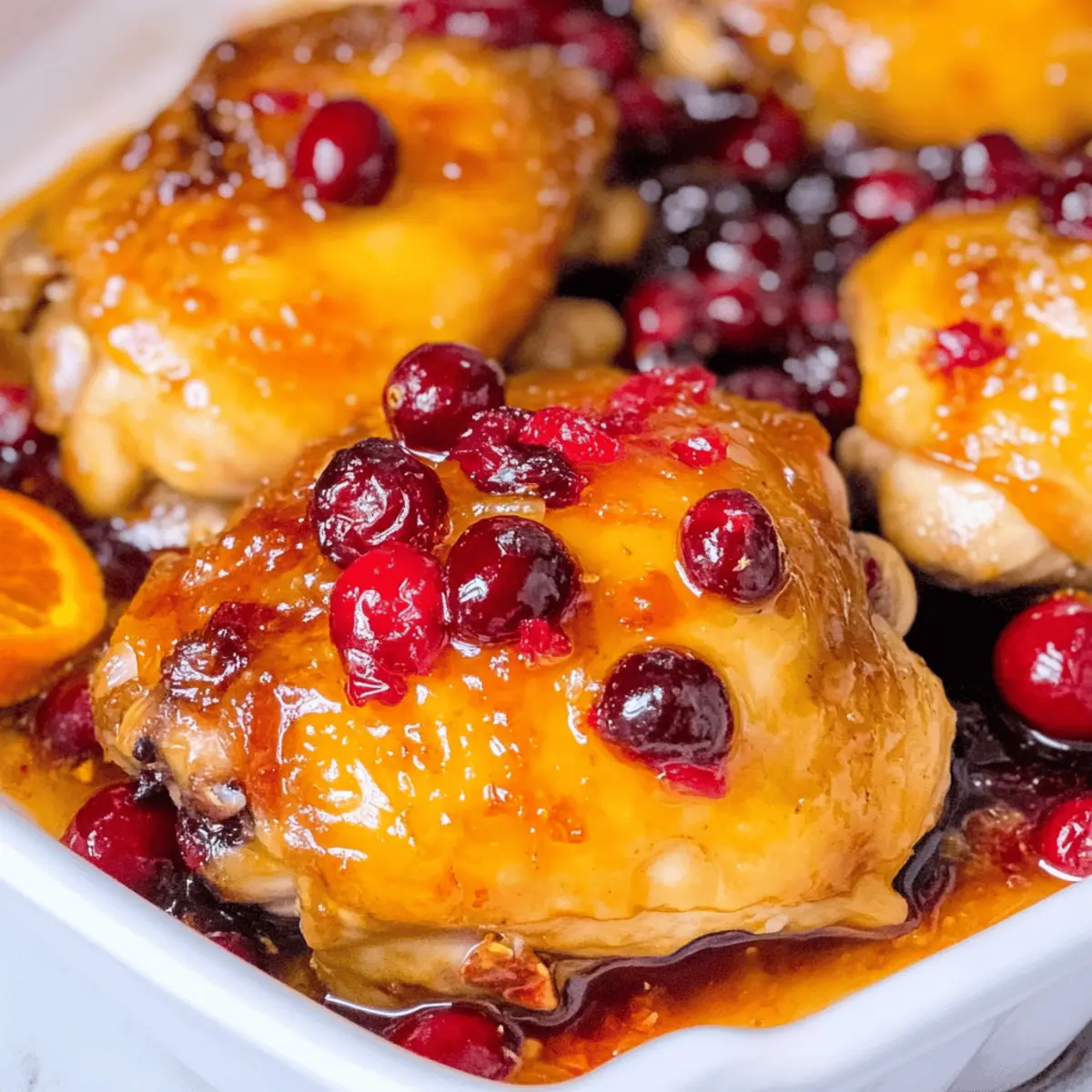 In just 30 minutes, my kitchen transforms into a lively space filled with the mouthwatering aroma of One-Pan Cranberry Orange Glazed Chicken. Imagine tender chicken thighs nestled in a deliciously vibrant marinade that sings of sweet cranberries and zesty oranges. This recipe isn’t just about a quick meal; it’s a joyful way to bring family together for dinner without drowning in dishes afterwards. Plus, it’s versatile enough to adapt with pork chops or turkey if you’re feeling adventurous. Whether it’s a cozy weeknight dinner or a gathering to celebrate the holidays, this dish shines as an affordable, scrumptious option. Ready to make your kitchen the heart of the home? Let’s dive into this irresistible recipe! Why is this recipe a must-try? Simplicity at Its Finest: This one-pan wonder makes cooking a breeze with minimal prep and cleanup, leaving you more time to enjoy with your loved ones. Versatility Abounds: Whether you choose to stick with chicken thighs or try delicious alternatives like pork chops or turkey, each bite bursts with flavor. Flavor Explosion: The delightful combination of sweet cranberries and zesty oranges creates a mouthwatering glaze that elevates the chicken to new heights. Perfect for Any Gathering: Whether it’s a casual weeknight dinner or a festive holiday feast, this dish guarantees to impress without breaking the bank. Time-Saving Treasure: In just 30 minutes, your kitchen is transformed, and you’ll be serving up a meal everyone will love! Pair it with sides like roasted potatoes or steamed broccoli for a complete family meal that’s both comforting and satisfying. Cranberry Orange Glazed Chicken Ingredients For the Chicken Chicken Thighs – Juicy and flavorful, perfect for soaking up the marinade. Olive Oil – Helps with marinating and enhances browning for a perfect crust. For the Marinade Fresh Cranberries – Adds vibrant color and tang; if frozen, make sure to thaw first. Honey – Brings natural sweetness and moisture; feel free to swap with maple syrup for a twist. Brown Sugar – Enhances caramelization for a sweetly glazed finish. Garlic (2 cloves, minced) – Infuses depth and warmth; omit for a milder taste. Balsamic Vinegar – Balances the sweet notes for a well-rounded flavor; no substitute recommended. Orange (1, zested and juiced) – Elevates the dish with bright, citrusy notes; fresh juice is best for this glaze. Sea Salt & Black Pepper – Essential for flavoring; adjust according to your taste preferences. Optional Add-ins Carrots, Bell Peppers, or Red Potatoes – Toss these in to create a colorful, all-in-one dish for added nutrition and flavor. Red Pepper Flakes – Sprinkle on for a touch of heat if you crave a little kick. Other Fruits like Apples – Incorporate for a delightful twist on the glaze. Make this Cranberry Orange Glazed Chicken a staple in your kitchen, and let your home be filled with the love of good food! Step‑by‑Step Instructions for Cranberry Orange Glazed Chicken Step 1: Prepare Marinade In a blender, combine fresh cranberries, brown sugar, olive oil, honey, balsamic vinegar, minced garlic, orange juice, orange zest, sea salt, and black pepper. Blend until smooth, about 30 seconds. The mixture should resemble a vibrant, thick sauce. This marinade will infuse the chicken with delightful flavors, setting the stage for your mouthwatering Cranberry Orange Glazed Chicken. Step 2: Marinate Chicken Place the chicken thighs in a large ziplock bag or a bowl, ensuring they’re in a single layer. Pour the prepared marinade over the chicken, making sure each piece is well-coated. Seal the bag or cover the bowl, then marinate in the refrigerator for at least 2 hours or overnight for maximum flavor infusion. This step is crucial to ensure juicy, flavorful chicken. Step 3: Preheat Oven When you’re ready to cook, preheat your oven to 375°F (190°C). This temperature will provide the perfect environment to bake the chicken evenly while allowing the marinade to caramelize beautifully. While the oven heats up, prepare your baking dish by lightly greasing an 8×8-inch pan to prevent sticking. Step 4: Bake Chicken Remove the chicken from the marinade, allowing any excess to drip off. Place the marinated chicken thighs in the greased baking dish, skin-side up. Pour the remaining marinade and any leftover cranberries over the chicken. Bake in the preheated oven for 25-30 minutes, until the chicken reaches an internal temperature of 165°F (74°C) and the skin is caramelized. Step 5: Broil for Crispiness After the baking time, switch the oven to broil. Mix a teaspoon of honey with a teaspoon of olive oil, then brush this mixture over the chicken. Broil for 2-3 minutes, watching closely to achieve a crispy skin without burning. The final step adds a lovely crunch to your Cranberry Orange Glazed Chicken, enhancing its visual appeal. Step 6: Rest and Serve Once broiling is complete, remove the chicken from the oven and let it rest for 10 minutes. This resting period allows the juices to redistribute, ensuring moist and tender meat. When ready to serve, garnish with fresh orange zest and cranberries for a festive touch. This Cranberry Orange Glazed Chicken is now ready to savor with family and friends! What to Serve with Cranberry Orange Chicken The delightful flavors of succulent chicken glazed with cranberries and oranges create a meal that’s simply irresistible. Creamy Mashed Potatoes: These buttery potatoes offer a comforting contrast to the zesty chicken, soaking up every delicious drop of the glaze. Steamed Broccoli: Fresh and vibrant, the crispness of broccoli balances the sweetness of the chicken while adding a pop of color to your plate. Roasted Carrots: Sweet, caramelized carrots roasted alongside the chicken enhance the meal’s cozy vibe and add a lovely, earthy flavor. Wild Rice Pilaf: This nutty grain dish provides a delightful chewiness that pairs perfectly with the tender chicken, making each bite m