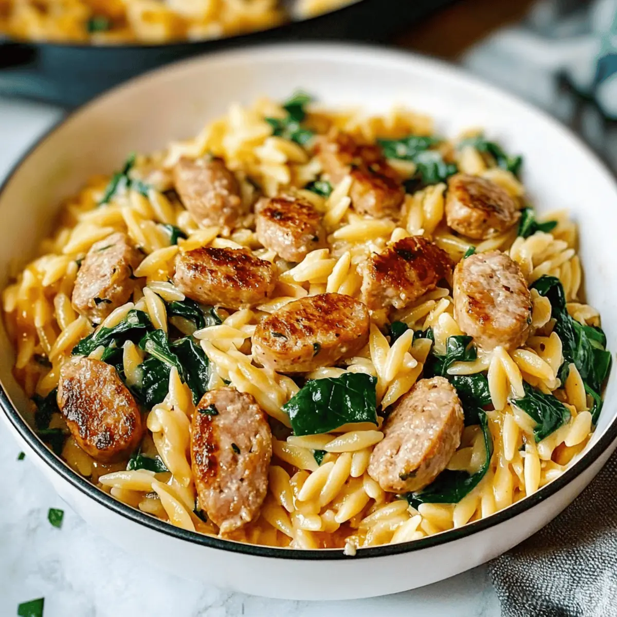 Is there anything more satisfying than a warm, creamy meal after a long day? Enter the Creamy Chicken Sausage Orzo Skillet—a delightful one-pan dish that takes dinner to a whole new level. Not only is this recipe quick to whip up in under 30 minutes, but it also boasts an impressive depth of flavor that will have your family begging for seconds. Imagine the tender orzo swimming in a velvety sauce enriched with savory chicken sausage and a hint of spices—heavenly, right? Plus, you have the freedom to customize this dish with your favorite greens or cheeses, making it perfect for any palate. Whether you’re looking for a comforting weeknight dinner or a dish to impress guests, this recipe has you covered. Ready to dive into a bowl of pure comfort? Let’s get cooking!