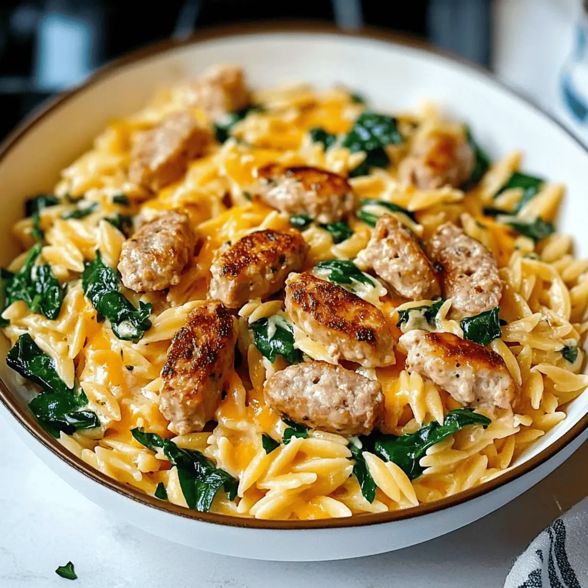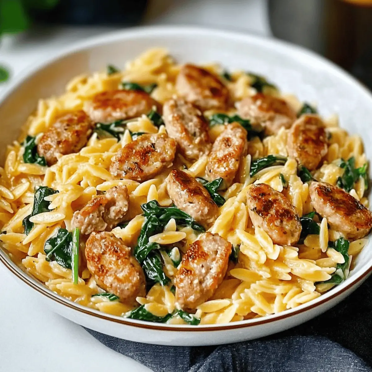 Store your Creamy Chicken Sausage Orzo in an airtight container in the fridge for up to 3 days. To maintain its creamy texture, reheat gently in a skillet with a splash of chicken broth to bring back the lusciousness.