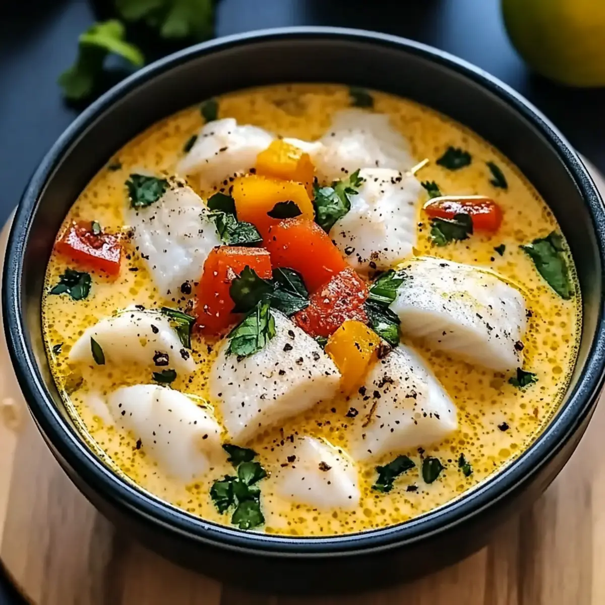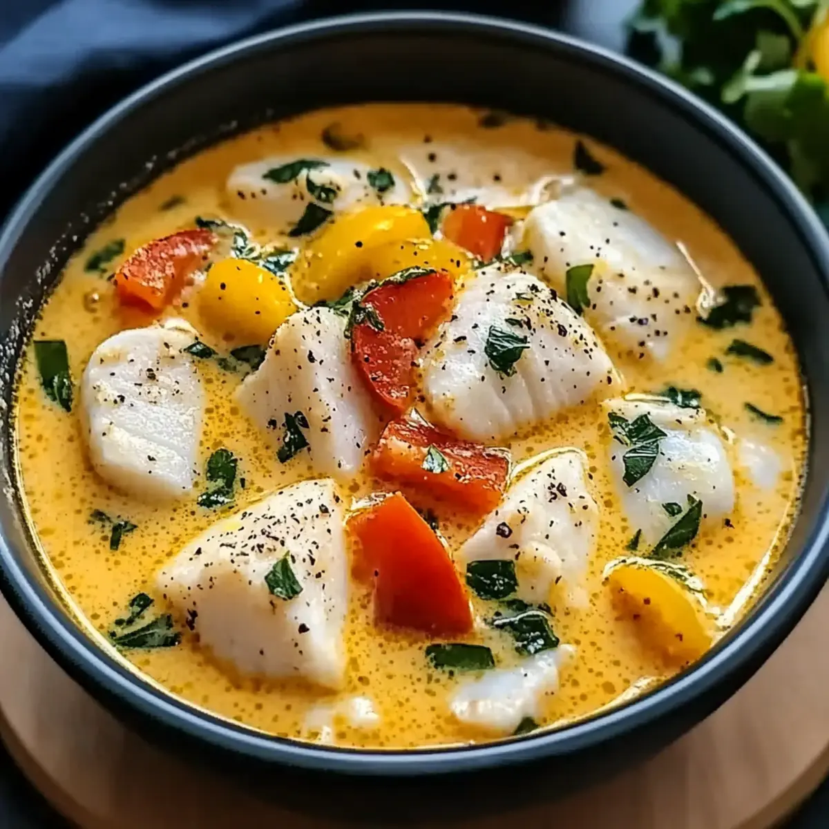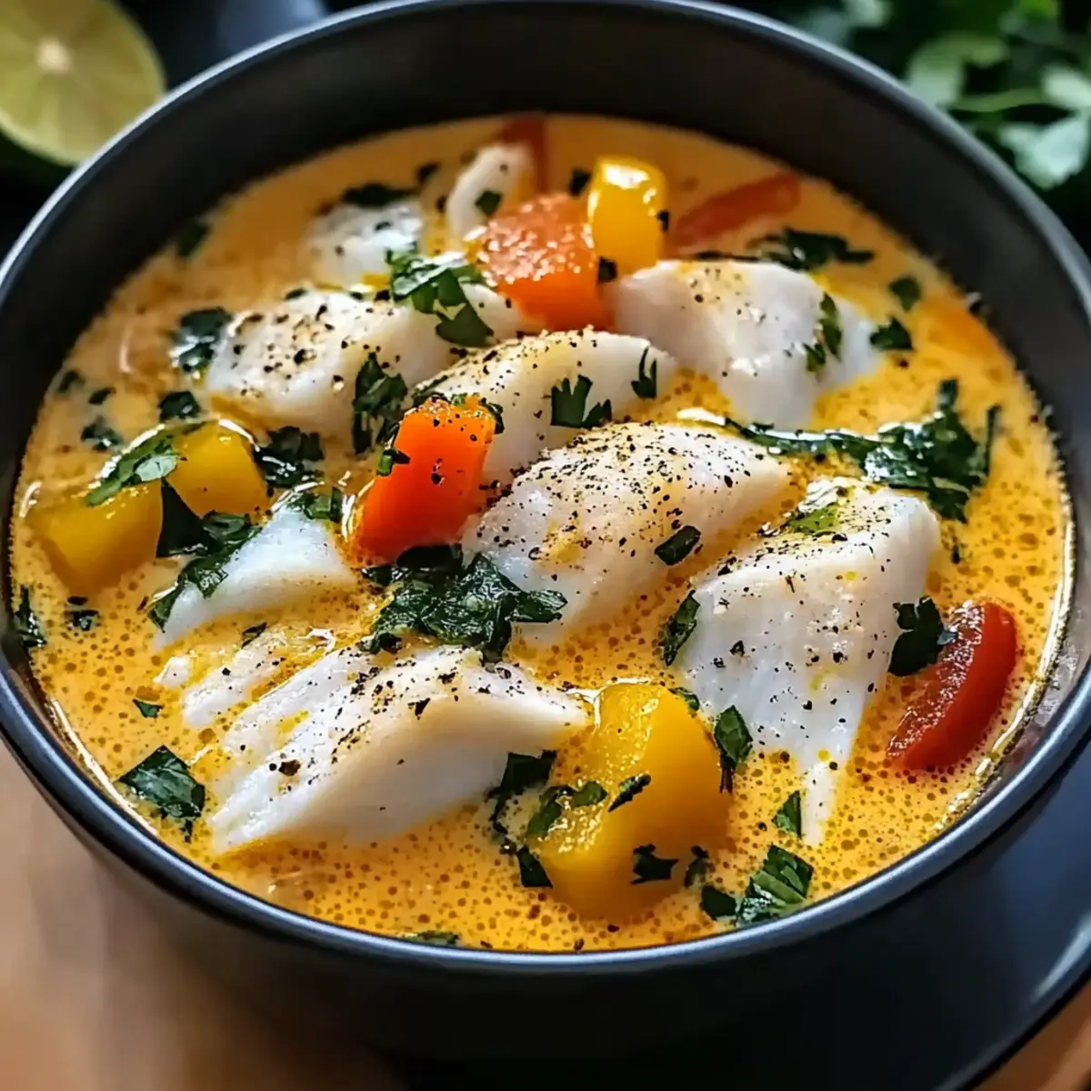 Facebook Twitter Pinterest LinkedInThe salty breeze of an ocean-side market wafts through the air as I recall the vibrant colors of fresh fish, nestled between mounds of aromatic spices. This inspiration led me to create my Creamy Coconut White Fish Stew, a dish that marries the sweetness of coconut milk with flaky white fish to craft a comforting meal perfect for any weeknight. With quick prep and a nourishing blend of veggies, this stew is not just a feast for the senses—it’s also gluten-free and heart-healthy. The tender fish, infused with ginger and a hint of lime, makes every bite a journey to tropical shores. Are you ready to transform your dinner routine and bring a splash of the exotic to your kitchen? Why is this stew so special? Hearty Comfort: This Creamy Coconut White Fish Stew is a warm embrace in a bowl, showcasing tender fish in a smooth, flavorful broth. Quick Prep: Whipping this up is a breeze—perfect for busy weeknights, allowing you to enjoy a crowd-pleasing meal without hours in the kitchen. Fresh Ingredients: The harmony of fresh herbs, garlic, and ginger elevates the dish’s flavor, appealing to home cooks seeking bold and healthy options. Versatile Pairings: Whether served over fluffy jasmine rice or with crusty bread for dipping, you can easily customize each meal to suit your taste. Nutrient-Rich: Packed with omega-3 fatty acids and vibrant veggies, this stew not only delights the palate but also promotes heart health. Feel free to explore more adventurous variations, such as swapping the fish for shrimp or adding extra greens to amplify the nutrition! Creamy Coconut White Fish Stew Ingredients For the Stew • White Fish Fillets – Choose cod, halibut, or tilapia for the best texture and flavor. • Coconut Milk – Full-fat offers a rich creaminess; a must for the stew’s luxurious base. • Vegetable/Chicken Broth – Homemade adds depth, but low-sodium store-bought works too. • Onion – Any variety will do; it forms the sweet, savory foundation of the dish. • Garlic – Fresh cloves give the best aroma, enhancing the overall flavor profile. • Ginger – Opt for fresh; it adds a beautiful zing that brightens the stew. • Tomatoes – Use fresh or canned; they add essential acidity and depth to the broth. • Bell Pepper – Red or yellow varieties add crunch and sweetness; choose based on preference. • Spinach/Kale – Fresh greens boost nutrition and color; frozen is fine in a pinch. • Fish Sauce – This adds an umami kick; substitute with soy sauce for a vegetarian option. • Lime Juice – Freshly squeezed juice lifts the flavor; a crucial final touch in the stew. • Curry Powder – This warm spice delivers depth; adjust to your spice tolerance. • Salt and Pepper – Essential for seasoning—be mindful of salt, especially with fish sauce. • Fresh Cilantro – Use as a garnish for freshness; optional if allergies are a concern. • Lime Wedges – Serve on the side for an extra burst of brightness; totally optional but enhances flavor. Feel free to indulge yourself in the delightful journey of making this Creamy Coconut White Fish Stew. The ingredients harmonize into a beautiful medley of flavors, promising a comforting dish that will be cherished by all. Step‑by‑Step Instructions for Creamy Coconut White Fish Stew Step 1: Prepare the Fish Start by rinsing the white fish fillets under cold water to remove any residue. Pat them dry with paper towels to ensure a good sear. Cut the fillets into bite-sized pieces and season generously with salt and pepper to enhance the flavors. Set aside as you move on to the next steps. Step 2: Sauté Aromatics In a large pot, heat a splash of oil over medium heat, allowing it to shimmer. Add the chopped onions and sauté for about 5 minutes, stirring occasionally, until they turn translucent and fragrant. The sweet aroma will let you know it’s time to continue with the recipe. Step 3: Add Garlic and Ginger Next, introduce minced garlic and freshly grated ginger to the pot. Stir these aromatic ingredients together and cook for another 1-2 minutes or until they become fragrant. This combination will create a flavorful base for your Creamy Coconut White Fish Stew, filling your kitchen with an enticing scent. Step 4: Incorporate Vegetables Now, add the diced tomatoes and chopped bell pepper to the pot. Stir the mixture and let it simmer over medium heat for 5-7 minutes, allowing the vegetables to soften and meld their flavors together. You’ll notice the vibrant colors of the stew start to emerge. Step 5: Add Liquids Pour in the creamy coconut milk and your choice of broth, stirring well to combine. Increase the heat slightly and bring the mixture to a gentle simmer. This forms the rich, delicious broth that will envelop the fish, making the dish luxurious and hearty. Step 6: Season the Stew Once simmering, add the fish sauce, lime juice, and curry powder into the pot. Stir to evenly distribute the seasonings, and taste to adjust the salt and pepper to your preference. The flavors should harmonize beautifully, reflecting the essence of the Creamy Coconut White Fish Stew. Step 7: Add Fish Gently place the seasoned fish pieces into the bubbling stew, ensuring they are submerged. Allow the stew to simmer for about 10 minutes, or until the fish is cooked through and opaque. Be careful not to overcook; you want the fish to remain tender and flaky. Step 8: Add Greens With the fish perfectly cooked, stir in the fresh spinach or kale. Allow it to wilt for 2-3 minutes, infusing the dish with vibrant color and nutrients. This final addition enhances both the visual appeal and the health benefits of your Creamy Coconut White Fish Stew. Step 9: Garnish Remove the pot from heat and ladle the stew into warm bowls. Garnish each serving with fresh cilantro for a pop of flavor and freshness. This step truly elevates your stew, making it look as inviting as it tastes. Step 10: Serve Present your Creamy Coconut 