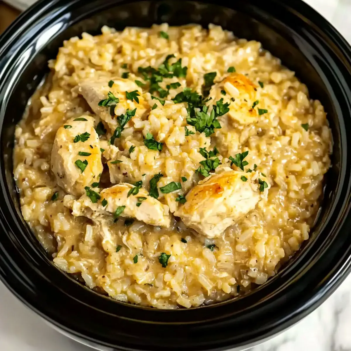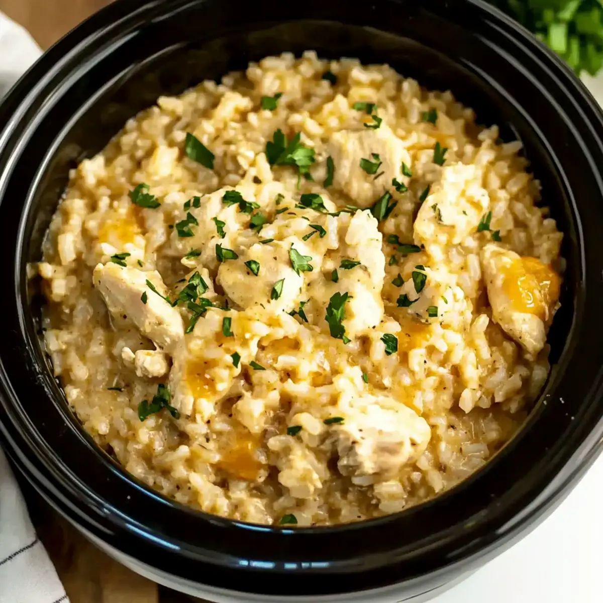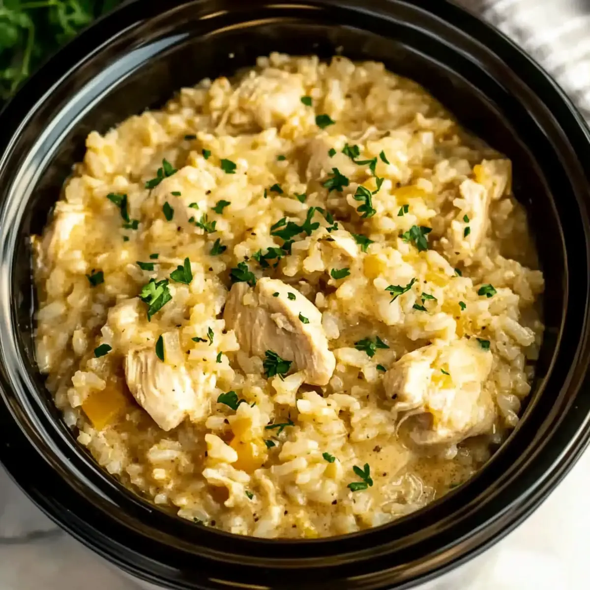 Facebook Twitter Pinterest LinkedInThe moment I uncovered the slow cooker tucked away in my kitchen, a wave of nostalgic warmth washed over me. It reminded me of countless family dinners where the aroma of simmering chicken filled the air. Today, I’m thrilled to share my take on a beloved classic: Creamy Crockpot Chicken and Rice. This easy slow cooker meal transforms busy weeknights into simple, flavorful escapes, allowing you to set it and forget it while filling your home with that comforting scent. Not only is this dish family-friendly, but it also melds tender chicken, hearty brown rice, and a rich, cheesy sauce into a delightful one-pot wonder. Plus, you’ll appreciate the minimal effort involved—perfect for those evenings when kitchen time feels like an elusive luxury. Curious how to create this effortless, soul-soothing dinner? Let’s dive into the creamy goodness! Why is this recipe a must-try? Simplicity reigns supreme: With just a few basic ingredients, you can whip up a satisfying family meal without diving into complex cooking techniques. Comforting flavor: The blend of cheese, herbs, and tender chicken mixed with wholesome brown rice creates a symphony of taste that everyone will love. Time-saving delight: Set it and forget it! This slow cooker wonder allows you to enjoy more quality time with family while dinner simmers away. Versatile options: Feel free to customize this dish by adding veggies or swapping chicken thighs for breasts, making it adaptable to your family’s preferences. Crowd pleaser: Whether it’s a cozy family dinner or entertaining friends, everyone will be asking for seconds of this creamy comfort food! Don’t forget to check out my recipes for Honey Pepper Chicken and Crockpot Chicken Gnocchi for more delicious inspirations! Creamy Crockpot Chicken and Rice Ingredients Note: Gather these simple ingredients for the ultimate creamy comfort food! For the Chicken • Chicken thighs – Using skinless, boneless thighs ensures tenderness and juiciness throughout the slow cooking process. For the Rice • Brown rice – This hearty option complements the creamy sauce while providing a satisfying texture; it’s less likely to become mushy compared to white rice. For the Creamy Sauce • Cream cheese – This adds a velvety richness; consider low-fat cream cheese for a lighter alternative. • Chicken broth – Helps maintain moisture and infuses flavor into the dish. For Seasoning • Garlic powder – Enhances the savory notes of the chicken and rice. • Onion powder – Adds a subtle sweetness; adjust based on your taste preferences. • Salt and pepper – Essential for bringing all the flavors together, adjust to your liking. • Dried herbs (thyme or parsley) – Optional, but they elevate the overall flavor profile of the dish. Optional Add-ins • Frozen peas or carrots – Toss these in for extra nutrition and a pop of color; they will cook perfectly alongside the rice. Embrace the explosion of flavors with this delightful Creamy Crockpot Chicken and Rice, and get ready for a magical dining experience! Step‑by‑Step Instructions for Creamy Crockpot Chicken and Rice Step 1: Prepare the Crockpot Begin by placing your slow cooker on a stable, heat-resistant surface. Lightly grease the interior with a bit of cooking spray or olive oil to prevent sticking. This will make for easy cleanup later! Step 2: Layer the Chicken Add the skinless, boneless chicken thighs to the bottom of the crockpot. Sprinkle your desired seasonings, including garlic powder, onion powder, salt, and pepper. Ensure the chicken is nicely coated for maximum flavor. Step 3: Add the Liquid Pour in about 1 cup of chicken broth over the seasoned chicken. This will help keep the chicken moist and infuse flavor throughout the dish. The broth will work its magic as it stews, creating a rich base for your Creamy Crockpot Chicken and Rice. Step 4: Incorporate the Rice Next, sprinkle 1 cup of brown rice evenly over the chicken in the crockpot. Gently mix it in with the chicken and broth without stirring too vigorously. This helps the rice absorb the delicious flavors while it cooks. Step 5: Create the Creamy Sauce In a separate bowl, combine the cream cheese with an additional splash of chicken broth. Whisk until smooth, then pour this creamy mixture over the rice and chicken. This will turn your dish into a luscious comfort food experience! Step 6: Set the Cooking Time Cover the crockpot with its lid and set it to cook on low for 6-8 hours or high for 3-4 hours. The key is to allow the chicken to become tender and the rice fully cooked, absorbing all those incredible flavors. Step 7: Check for Doneness As the cooking time approaches, check the consistency around the 6-hour mark on low or 3 hours on high. The chicken should shred easily with a fork, and the rice should be tender. If it needs more time, cover and let it cook for a little longer. Step 8: Combine and Serve Before serving, take a moment to stir the entire contents of the crockpot, mixing the chicken and rice together with the creamy sauce. This ensures every bite of your Creamy Crockpot Chicken and Rice is bursting with flavor! Step 9: Enjoy Your Meal Scoop generous portions onto plates and serve warm. The creamy texture combined with hearty chicken and rice makes for an inviting dinner. Your family will love this comforting dish! Expert Tips for Creamy Crockpot Chicken and Rice Choose the Right Rice: Opt for brown rice to ensure a hearty texture—white rice tends to turn mushy if overcooked in the slow cooker. Check Chicken Doneness: Keep an eye on the cooking time; chicken thighs cook faster than breasts, so test for tenderness to avoid overcooking. Maintain Moisture: If reheating leftovers, add a splash of chicken broth to retain moisture, preventing the dish from drying out. Season to Taste: Feel free to adjust seasonings according to your family’s preferences; fresh herbs can enhance the flavor profile beautifully
