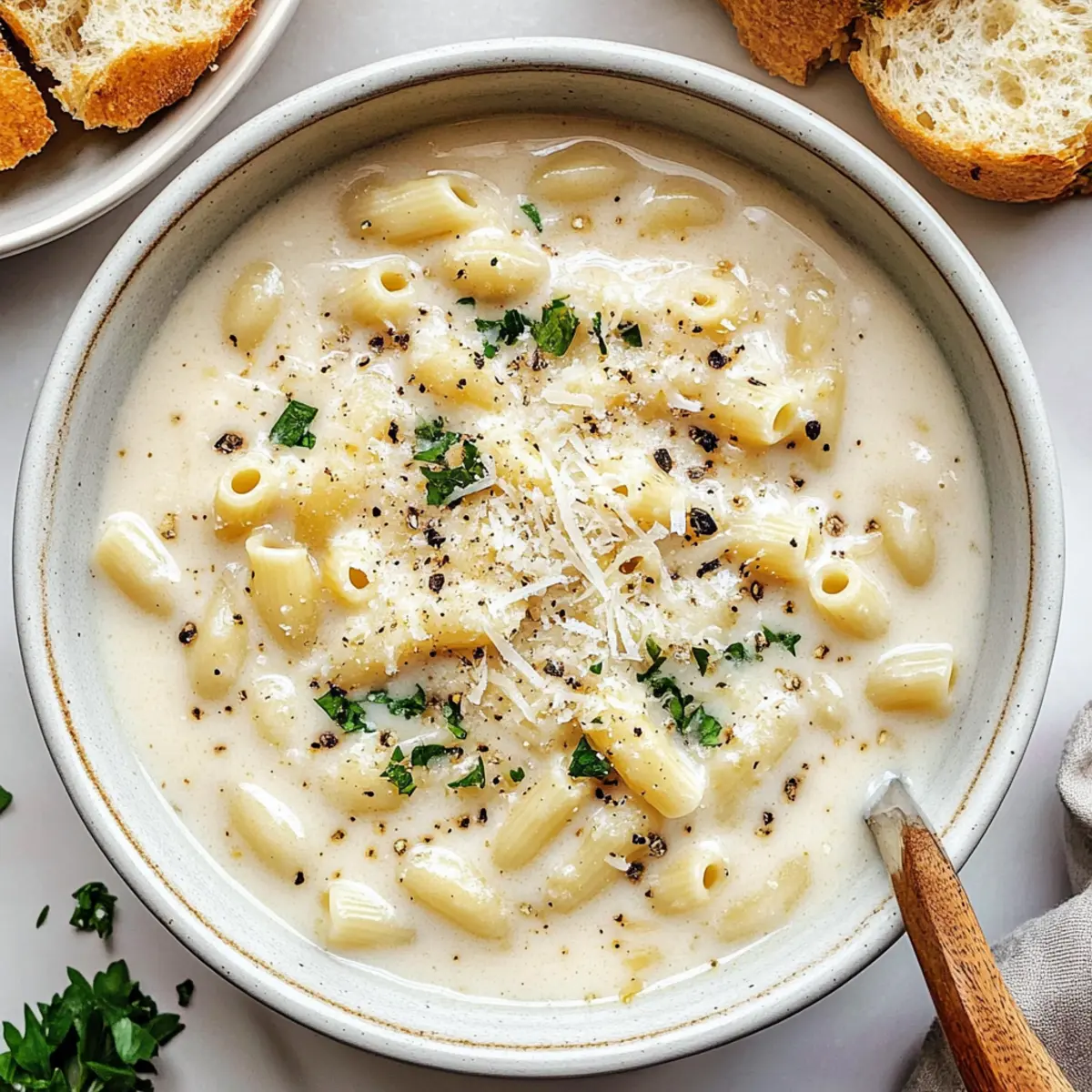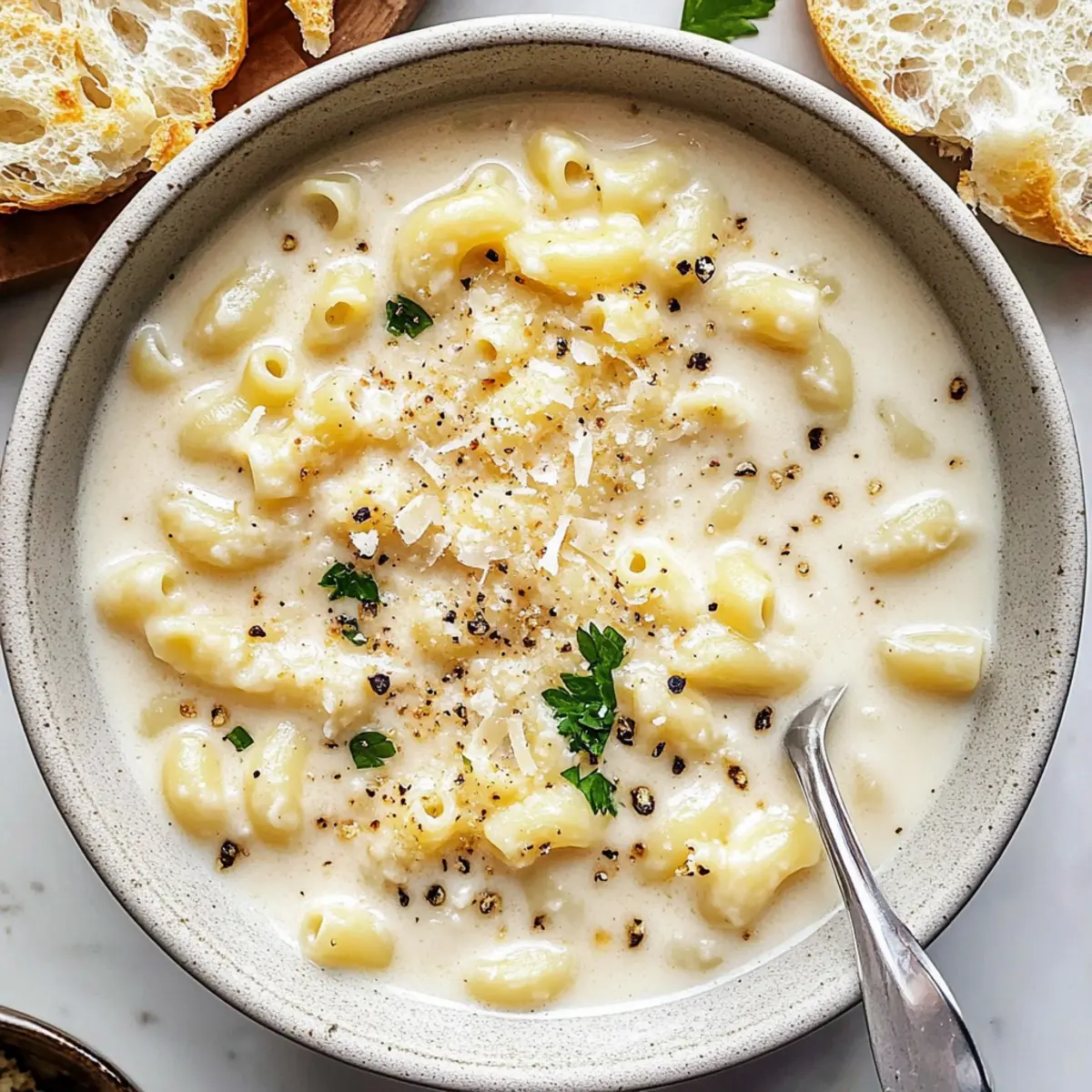 Facebook Twitter Pinterest LinkedInAs I gathered the ingredients for what would soon become my cozy dinner staple, the rich aroma of garlic danced through my kitchen, instantly putting me in the mood for something indulgent yet comforting. This Creamy Garlic Parmesan Soup is more than just a dish; it’s a warm hug in a bowl, perfect for those evenings when you crave comfort but don’t want to spend hours in the kitchen. In under 30 minutes, you can whip up this gluten-free delight that not only satisfies your taste buds but also makes for an impressive centerpiece at any gathering. With its velvety texture and robust flavor, I can promise this soup will quickly become a family favorite. Ready to see how this creamy bowl of goodness comes together? Why is this soup a game-changer? Quick Prep: In just under 30 minutes, you can have this delightful soup ready to enjoy, making it ideal for busy weeknights. Creamy Texture: The heavy cream and Parmesan combine to create a velvety, luxurious mouthfeel that’s utterly satisfying. Customizable Flavor: Whether you prefer earthy mushrooms or zesty herbs, this recipe invites endless adaptations to suit your taste. Impressive Presentation: Serve this soup in a nice bowl, garnished with parsley and extra cheese, to wow your dinner guests. If you’re also looking for another cozy option, check out this Cowboy Soup Hearty! Crowd-Pleaser: It’s gluten-free and bursting with flavor, making it a dish everyone can enjoy, whether they prefer classic comfort food or something a little upscale. Creamy Garlic Parmesan Soup Ingredients • For the Soup Base Butter – Adds richness and base flavor; use unsalted for better control over seasoning. Garlic (minced) – Infuses a bold, aromatic quality; fresh is best for maximum flavor. Italian Seasoning – Enhances the flavor profile with dried herbs; substitute with oregano or basil if desired. All-Purpose Flour – Thickens the soup for a creamy consistency; gluten-free flour blends can be used as a substitute. Chicken Stock – Provides depth and savory notes; vegetable stock can replace it for a vegetarian version. Heavy Cream – Creates that luxurious creamy texture; substitute with coconut cream for a lighter, dairy-free option. • For the Pasta Ditalini Pasta – Adds substance and texture; any small pasta shape works, with gluten-free options available. • For the Flavor Parmesan Cheese – Elevates flavor with a salty kick; nutritional yeast can be used for a vegan alternative. White Wine Vinegar – Brightens flavor; can be substituted with lemon juice for a zesty touch. Salt and Pepper – Essential for seasoning; adjust to personal taste and preferences. Experience the creamy goodness of Creamy Garlic Parmesan Soup that makes any meal a cozy delight! Step‑by‑Step Instructions for Creamy Garlic Parmesan Soup Step 1: Prepare the Base In a large pot over low heat, melt 2 tablespoons of unsalted butter until bubbly but not browned. Add 4 cloves of minced garlic and 1 teaspoon of Italian seasoning, stirring for about 30 seconds until fragrant. This fragrant base is crucial for your Creamy Garlic Parmesan Soup, as it infuses the dish with warm, aromatic flavors. Step 2: Thicken Gradually sprinkle in 1/4 cup of all-purpose flour while stirring constantly for about 1 minute, ensuring it doesn’t clump. This step will create a roux, which will thicken the soup later. As the mixture turns golden, keep stirring to maintain a smooth consistency, preparing for the next layer of deliciousness. Step 3: Add Liquids Slowly pour in 4 cups of chicken stock, stirring well to combine and prevent lumps. Then, add in 1 cup of heavy cream and mix until the mixture swirls together beautifully. This combination brings that rich, creamy element characteristic of a satisfying Creamy Garlic Parmesan Soup that you’ll love! Step 4: Simmer Increase the heat to medium-high and bring the soup to a gentle simmer. Once simmering, add 1 cup of ditalini pasta to the pot. Cook for about 5-8 minutes, stirring occasionally until the pasta is al dente. Watch the pasta closely, as you want it tender but still with a slight bite. Step 5: Finish It Off Remove the pot from heat and stir in 1 cup of grated Parmesan cheese and 1 tablespoon of white wine vinegar. Mix until the cheese is melted and fully incorporated. Taste your Creamy Garlic Parmesan Soup, and adjust seasoning with salt and pepper as desired for a perfectly balanced flavor. Step 6: Serve Ladle the creamy, comforting soup into bowls, garnishing with fresh parsley and extra Parmesan cheese if desired. Serve immediately for the best experience, savoring each warm spoonful of this delightful Creamy Garlic Parmesan Soup with loved ones. What to Serve with Creamy Garlic Parmesan Soup There’s nothing quite like diving into a bowl of warm, savory goodness, especially when you have a few delightful sides to elevate your meal. Crusty Bread: The perfect companion for dipping, its crispy exterior and soft center love soaking up the creamy soup. Fresh Garden Salad: A crisp salad with mixed greens, cherry tomatoes, and a tangy vinaigrette provides a refreshing contrast to the rich soup. Garlic Breadsticks: Soft and buttery, these sticks are ideal for sopping up every last drop of that creamy garlic delight. Roasted Vegetables: Glazed with olive oil and herbs, roasted veggies add a sweet and earthy touch that complements the soup’s flavors beautifully. Cheesy Broccoli: The vibrant green of broccoli, paired with melted cheese, not only adds nutrition but also offers a delightful texture juxtaposition. Sauvignon Blanc: A glass of crisp Sauvignon Blanc cuts through the creamy elements, enhancing your overall dining experience with contrasting notes and refreshing acidity. Every bite and sip will create a heartwarming gathering, transforming a simple weeknight into a genuinely delightful occasion! How to Store and Freeze Creamy Garlic Parmesan Soup Fridge: Store leftovers in an airtig