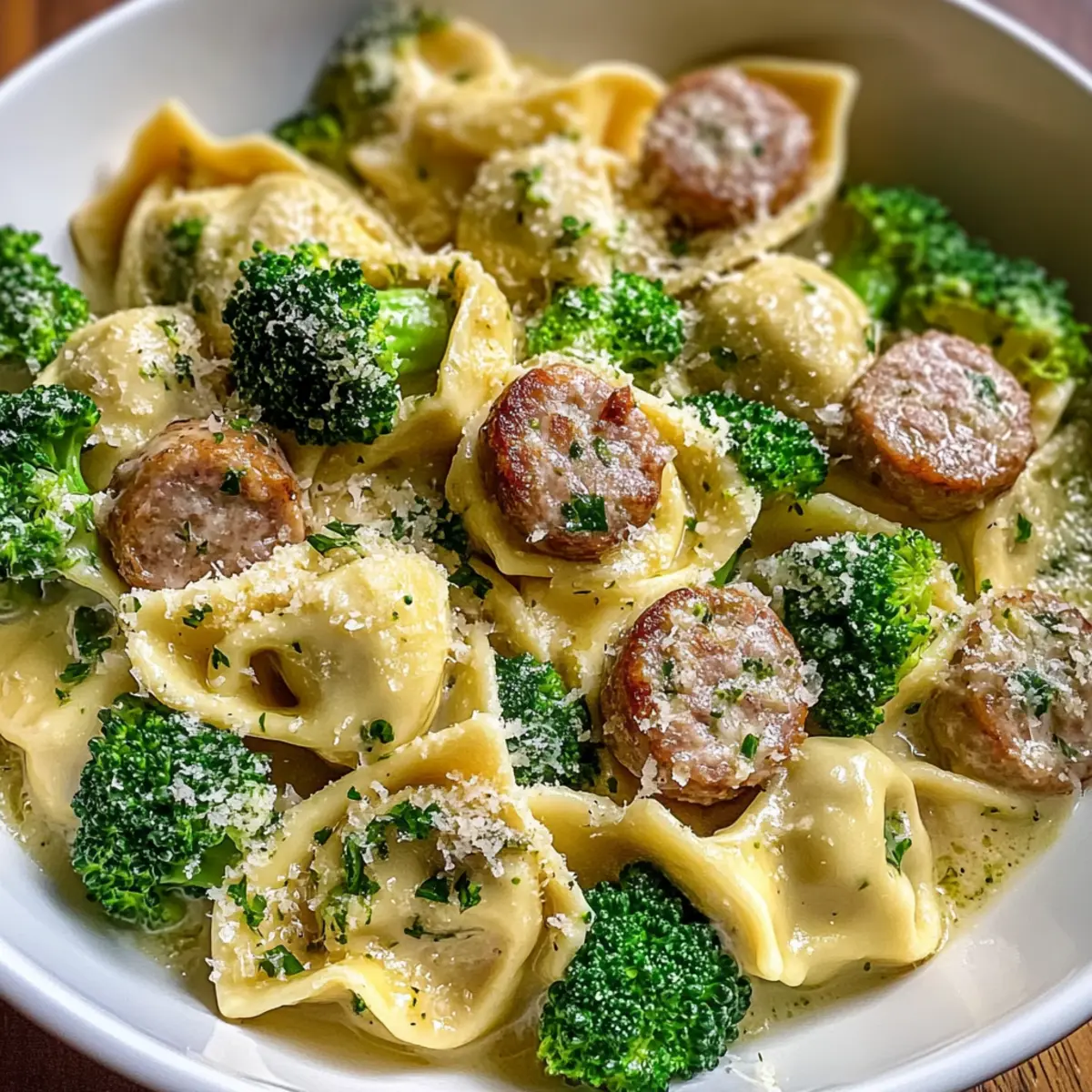 Creamy Garlic Parmesan Tortellini with Sausage and Broccoli Bliss