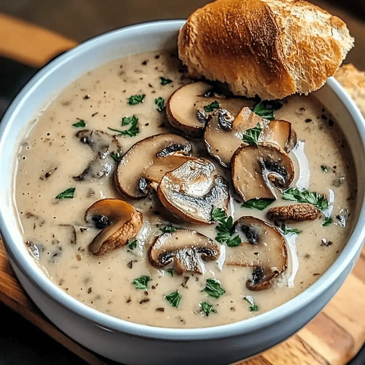 The moment the first earthy notes of sautéed mushrooms hit the pan, I’m transported to a cozy kitchen where warmth and comfort reign supreme. This Creamy Mushroom Soup is not just a dish; it’s an embrace in a bowl that transforms any evening into a delightful culinary experience. In just 30 minutes, you’ll be savoring rich flavors that come together effortlessly, making it a lifesaver for busy weeknights or an impressive starter for gatherings. What I love most is how this recipe allows even the most hurried home chefs to create something wholesome and satisfying without sacrificing taste—it’s a gluten-free, healthy comfort food that consistently warms the heart. Are you ready to dive into this creamy deliciousness? Let’s get cooking! Why is Creamy Mushroom Soup So Beloved? Comforting Warmth: This Creamy Mushroom Soup wraps you in a cozy embrace, transforming any chilly night into a heartwarming experience. Quick Preparation: With just 30 minutes on the clock, you can whip up this dish effortlessly, making it ideal for those busy evenings when time is scarce. Rich, Earthy Flavors: The innovative blend of sautéed mushrooms and aromatic spices creates an inviting, savory flavor profile that’s simply irresistible. Versatile Options: Feel free to customize with protein, veggies, or herbs, making it your own and ensuring everyone at the table is happy. Try adding fresh herbs for a delightful twist! Health-Conscious Choice: Not only is it gluten-free, but it’s also low in calories while bursting with nutrition, proving that comfort food can be wholesome too. Serve it alongside a fresh green salad or crusty bread for the ultimate experience, and don’t forget to check out my Parmesan Italian Soup or Chicken Gnocchi Soup for more delicious inspiration! Creamy Mushroom Soup Ingredients For the Soup Base Butter – Provides richness and flavor; can use olive oil for a lighter option. Olive Oil – Enhances flavor and aids in sautéing vegetables; substitute with vegetable oil if desired. Onion – Adds sweetness and depth; substitute with shallots for a milder taste. Garlic – Infuses a fragrant, savory element; use garlic powder if fresh isn’t available. Mushrooms (sliced) – Core ingredient providing umami flavor; a mix of mushrooms adds texture and variety. Flour – Thickens the soup; replace with gluten-free flour or cornstarch for a gluten-free version. For Flavoring Broth (vegetable or chicken) – The base providing flavor; opt for low-sodium to control saltiness. Milk – Adds creaminess without heavy cream; almond or soy milk can be used for a dairy-free option. Salt & Pepper – Essential for seasoning; adjust to taste for your perfect balance. Bring home the comforting essence of Creamy Mushroom Soup with these simple, wholesome ingredients! Step‑by‑Step Instructions for Creamy Mushroom Soup Step 1: Heat the Base In a large pot, melt 2 tablespoons of butter and 1 tablespoon of olive oil over medium heat. Allow the butter to sizzle gently, creating a comforting aroma. This combination forms the rich base for your Creamy Mushroom Soup, and it should take about 1-2 minutes until fully melted. Step 2: Sauté the Onions Add 1 chopped onion to the pot, stirring occasionally to coat. Cook until the onions are translucent and tender, which should take about 5 minutes. Watch for them to soften and turn a light golden hue, releasing their sweet fragrance into the air. Step 3: Add the Garlic Stir in 2 minced garlic cloves and sauté for another minute. The aroma will intensify, bringing a savory depth to your soup. Keep an eye on the garlic to prevent it from browning; it should become fragrant within 60 seconds, perfectly complementing the onions. Step 4: Cook the Mushrooms Next, add 8 cups of sliced mushrooms to the pot. Stir well to combine and cook for 8-10 minutes, allowing the mushrooms to brown and release their juices. They should soften significantly and begin to caramelize, enhancing the overall umami flavor of your Creamy Mushroom Soup. Step 5: Thicken the Mixture Sprinkle 2 tablespoons of flour over the mushroom mixture and stir vigorously to coat everything uniformly. This step thickens the soup, which should take about 2 minutes. You’ll notice the mixture will thicken slightly, creating a nice base for your soup. Step 6: Combine the Broth Gradually pour in 4 cups of vegetable or chicken broth while continuously stirring to prevent lumps. Bring the mixture to a gentle simmer, which usually takes about 5 minutes. Look for small bubbles forming on the surface—a sign that your Creamy Mushroom Soup is on the right track. Step 7: Add the Milk Reduce the heat to low and carefully stir in 1 cup of milk. Allow the soup to cook for an additional 5 minutes, stirring occasionally. It should start to thicken further while getting that luscious, creamy texture that defines a delightful Creamy Mushroom Soup. Step 8: Season and Serve Finally, season with salt and pepper to taste, adjusting the flavors to your preference. Once you’ve got the perfect seasoning, ladle the soup into bowls and serve hot. Pair it with crusty bread or a fresh salad to enhance the comforting experience of your Creamy Mushroom Soup. How to Store and Freeze Creamy Mushroom Soup Fridge: Store leftover Creamy Mushroom Soup in an airtight container for up to 3 days. Reheat gently on the stove over low heat for best results. Freezer: If you want to save some for later, freeze the soup in freezer-safe containers for up to 1 month. Leave some space for expansion as it freezes. Thawing: To thaw, transfer it to the fridge overnight or use the defrost setting on your microwave. Reheat gently to avoid separation of ingredients. Reheating: When reheating, you might need to add a splash of broth or milk to restore creaminess before enjoying this wholesome dish again. Make Ahead Options These Creamy Mushroom Soup preparations are perfect for those busy weeknights! You can sauté the onions, garlic, and mu