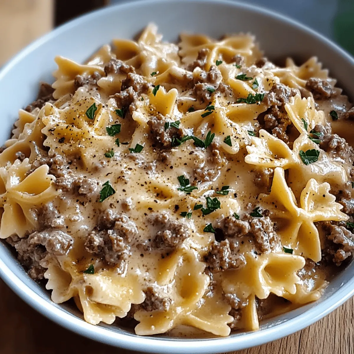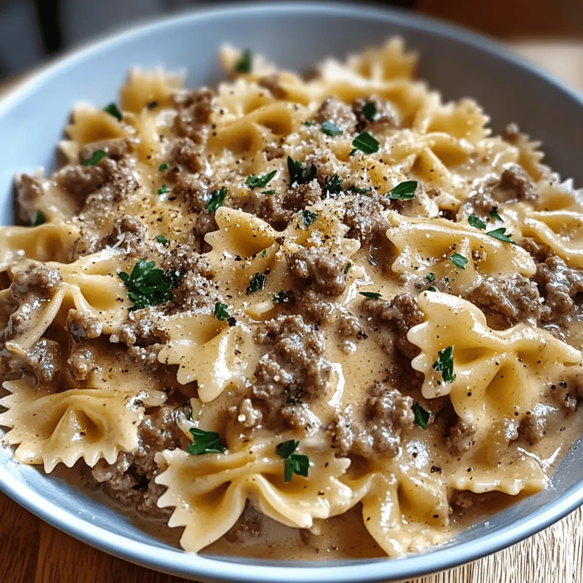 This Creamy Parmesan Garlic Beef Bowtie Pasta is a quick, comforting dish perfect for busy weeknights and family dinners.