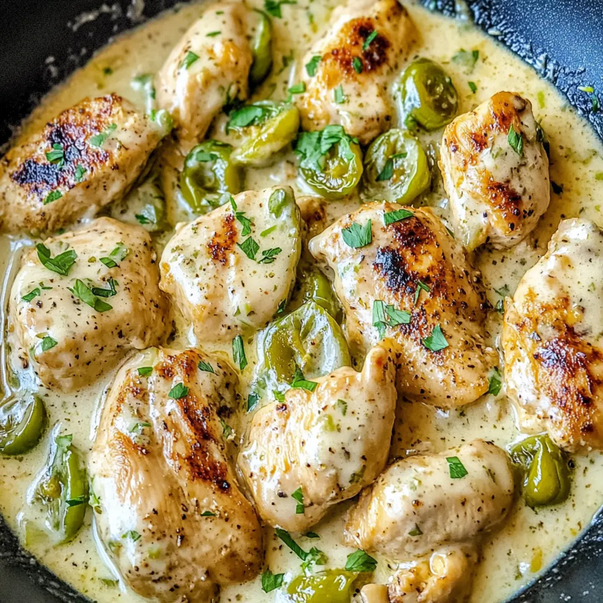 Facebook Twitter Pinterest LinkedInAs I stirred the fragrant garlic in the skillet, I could feel the stress of the day melting away. This Creamy Pepperoncini Chicken Skillet has become my go-to recipe for a quick meal without sacrificing flavor or satisfaction. In just under 30 minutes, you’ll bring together succulent chicken and tangy pepperoncini enveloped in a luxuriously creamy sauce. The best part? It’s a one-skillet wonder, making cleanup a breeze so you can focus on savoring each delicious bite. With its versatility, you can easily customize this dish to fit dietary preferences, whether you’re looking for dairy-free or vegetarian options. Ready to elevate your weeknight dinner? Let’s dive into this meal that promises cozy comfort and an explosion of taste! Why is this recipe a must-try? Simplicity at Its Finest: This Creamy Pepperoncini Chicken Skillet is perfect for busy weeknights, coming together in under 30 minutes with just one pan to clean. Versatile Options: Easily adapt this dish to your dietary needs—consider dairy-free options with coconut milk or amp up the veggies for a hearty vegetarian alternative. Flavor Explosion: The tangy pepperoncini paired with cream creates a sauce that’s both rich and delightfully zesty, leaving your taste buds in a blissful state. Crowd-Pleaser: With its comforting flavors and appealing presentation, this dish is sure to impress family and guests alike! For a refreshing side, pair it with a crisp salad or rice, just like with my Chicken Alfredo Pasta or Crockpot Chicken Gnocchi. You won’t be disappointed! Creamy Pepperoncini Chicken Skillet Ingredients For the Chicken Boneless, Skinless Chicken Thighs or Breasts – Use thighs for extra tenderness and flavor. For the Sauce Sliced Pepperoncini – Provides a tangy kick; substitute with banana peppers for milder flavor or jalapeños for more heat. Heavy Cream – Creates the sauce’s rich creaminess; substitute with half-and-half or coconut milk for lighter or dairy-free versions. Fresh Minced Garlic – Essential for depth of flavor; fresh is always ideal for the best aroma. Low-Sodium Chicken Broth – Adds moisture and richness, helping keep sodium levels in check. Seasoning Salt & Pepper – Crucial for enhancing the overall flavor; always season to taste. Let’s get cooking and transform your weeknight dinner with this brilliant Creamy Pepperoncini Chicken Skillet! Step‑by‑Step Instructions for Creamy Pepperoncini Chicken Skillet Step 1: Prep Chicken Begin by patting the boneless, skinless chicken thighs or breasts dry with paper towels. Season both sides generously with salt and pepper, ensuring the chicken is evenly coated. This step enhances the overall flavor of your Creamy Pepperoncini Chicken Skillet, setting the foundation for a delicious meal. Step 2: Sauté Chicken Heat a large non-stick skillet over medium heat and add a drizzle of olive oil. Once the oil is shimmering, carefully place the seasoned chicken in the skillet. Cook for 6-7 minutes on each side until the chicken is golden brown and reaches an internal temperature of 165°F. This browning adds depth to the flavors, so keep an eye on it for that perfect color. Step 3: Add Aromatics Reduce the heat to medium-low and introduce the fresh minced garlic to the skillet. Sauté for about one minute, stirring frequently until the garlic is fragrant and golden, taking care not to let it burn. This step infuses the Creamy Pepperoncini Chicken Skillet with a delicious aroma that makes your kitchen inviting. Step 4: Incorporate Pepperoncini Stir in the sliced pepperoncini with the garlic, allowing them to sauté together for 2-3 minutes. The tangy flavor of the pepperoncini will begin to meld with the garlic, enhancing the dish further. You’ll notice the delightful aroma filling the air, signaling that you’re one step closer to a scrumptious dinner. Step 5: Create Sauce Pour in the low-sodium chicken broth and heavy cream, stirring well to combine. Bring the mixture to a gentle simmer and cook for 5-7 minutes, allowing the sauce to thicken slightly. Keep an eye on it as it simmers; the rich, creamy sauce is what makes your Creamy Pepperoncini Chicken Skillet truly indulgent. Step 6: Finalize & Serve Once the sauce has thickened, taste and adjust the seasoning with more salt and pepper if necessary. Remove the skillet from heat and, for a touch of freshness, garnish with chopped parsley if desired. Serve your Creamy Pepperoncini Chicken Skillet hot, paired with sides like rice or a crisp salad, diving into each flavor-packed bite. Make Ahead Options These Creamy Pepperoncini Chicken Skillets are perfect for meal prep enthusiasts looking to save time on busy weeknights! You can season and marinate the chicken up to 24 hours in advance, allowing the flavors to develop beautifully. Additionally, you can slice the pepperoncini and mince the garlic the day before to make cooking even quicker. When you’re ready to cook, simply sauté the prepped chicken and follow the remaining steps as outlined. To maintain the creamy sauce’s texture, ensure you refrigerate leftovers in an airtight container for up to 3 days. Reheat gently on the stove, adding a splash of chicken broth to restore creaminess before serving. Enjoy the convenience without compromising flavor! What to Serve with Creamy Pepperoncini Chicken Skillet Enhance your dining experience with delightful pairings that bring out the dish’s rich, creamy goodness. Creamy Mashed Potatoes: Silky potatoes complement the dish’s sauce beautifully, providing a decadent base for each flavorful bite. Steamed Broccoli: This vibrant veggie adds a fresh crunch and balances the richness with its subtle texture and mild taste. Garlic Bread: Toasted bread slathered in garlic butter is perfect for scooping up extra sauce, making each dinner a delightfully interactive experience. Arugula Salad: The peppery greens offer a refreshing bite, rousing your palate and lightening 