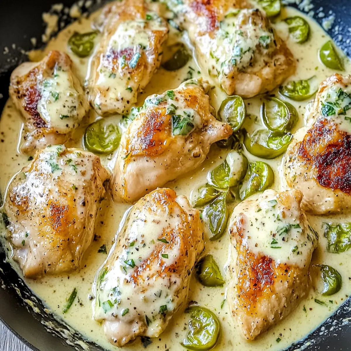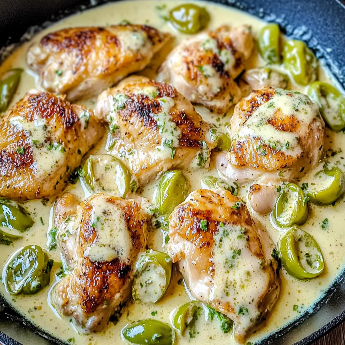 Facebook Twitter Pinterest LinkedInAs the sun sets and the kitchen fills with the irresistible aroma of sautéing garlic, I find myself transported to a favorite family gathering with every simmering bubble of this Creamy Pepperoncini Chicken Skillet. This dish is not only a warm embrace of rich, creamy flavor but also a lifesaver for those busy weeknights—whipping up in under 30 minutes means less time in the kitchen and more time around the table with loved ones. Plus, it’s a one-skillet wonder, making cleanup a breeze! Whether you stick to classic chicken or experiment with your favorite protein, the tangy pepperoncini adds a delightful twist that will impress even the pickiest eaters. Ready to dive into this delicious adventure? Why is this recipe a must-try? Quick and Convenient: In just under 30 minutes, you can serve up a hearty meal that everyone will love. Perfect for those busy weeknights! One-Skillet Wonder: Minimal cleanup required means you can enjoy your meal and spend more time with your family. Tangy Twist: The pepperoncini adds a unique zing that makes this dish stand out from your usual chicken recipes. Versatile Options: Feel free to substitute with your favorite proteins or make it vegetarian—this recipe easily adapts to fit your dietary preferences. Crowd-Pleasing Appeal: Whether you pair it with rice, pasta, or a fresh salad, this flavor-packed dish is sure to impress at your next family dinner. Check out how it complements other classics like Chicken Alfredo Pasta or Buffalo Chicken Mac for a tasty twist! Creamy Pepperoncini Chicken Skillet Ingredients Elevate your cooking with these delightful ingredients. For the Chicken Boneless Chicken Thighs or Breasts – Perfect for tenderness and easy to cook; boneless ensures speedy preparation. For the Sauce Heavy Cream – This luxurious addition creates a rich, creamy sauce; substitute with half-and-half for a lighter option or coconut milk for a dairy-free version. Chicken Broth – Provides a savory base; opt for low-sodium to control the salt levels. Garlic – Fresh minced garlic brings depth of flavor; avoid powdered garlic for the best results. For the Flavor Pepperoncini – Adds a delightful tang; fresh or jarred works well—banana peppers can be used for a milder taste. Olive Oil – Essential for sautéing; ensure the pan is hot enough for perfectly cooked chicken. Salt & Pepper – Key seasonings to enhance all the flavors in the dish; ensure chicken is well-seasoned. With this Creamy Pepperoncini Chicken Skillet, you’re just minutes away from a cozy family dinner that will have everyone asking for seconds! Step‑by‑Step Instructions for Creamy Pepperoncini Chicken Skillet Step 1: Prepare Chicken Begin by patting the boneless, skinless chicken thighs or breasts dry with paper towels. Season both sides generously with salt and pepper, ensuring even coverage for optimal flavor. This step is vital for the Creamy Pepperoncini Chicken Skillet, as well-seasoned chicken forms the foundation of your dish. Step 2: Sauté Chicken Heat a tablespoon of olive oil in a non-stick skillet over medium heat until it shimmers, indicating readiness. Carefully add the seasoned chicken, cooking for 6-7 minutes per side. Look for a golden-brown crust and an internal temperature of 165°F to ensure the chicken is fully cooked through, producing a tender texture. Step 3: Add Aromatics Once the chicken is cooked, reduce the heat to low and add 2-3 cloves of minced garlic to the skillet. Sauté the garlic for about 1 minute, stirring frequently until fragrant but not browned. This step enhances the overall aroma and flavor profile of your Creamy Pepperoncini Chicken Skillet. Step 4: Incorporate Pepperoncini Next, stir in the sliced pepperoncini peppers, allowing them to sauté with the garlic for 2-3 minutes. This will soften the peppers slightly and infuse their tangy flavor into the dish. The combination of garlic and pepperoncini creates a bright, inviting base for the sauce to follow. Step 5: Create Sauce Pour in 1 cup of chicken broth and ½ cup of heavy cream into the skillet, stirring the mixture thoroughly to combine. Increase the heat slightly and let it simmer for 5-7 minutes. As the sauce bubbles, it will thicken and take on a velvety texture, enveloping the chicken in richness. Step 6: Serve Once the sauce has thickened to your liking, taste and adjust the seasoning if needed. Serve the Creamy Pepperoncini Chicken Skillet hot, perhaps garnished with fresh herbs, alongside rice, pasta, or a fresh salad. Dive into this comforting meal, and enjoy the harmonious blend of flavors you’ve created! Helpful Tricks for Creamy Pepperoncini Chicken Skillet Perfectly Cooked Chicken: Ensure the chicken reaches an internal temperature of 165°F to avoid dryness. Use a meat thermometer for accurate results. Flavor Infusion: Marinating the chicken in olive oil and garlic for at least 30 minutes enhances the flavor, making your Creamy Pepperoncini Chicken Skillet even more delicious. Thinner Sauce: If the sauce thickens too quickly, add a splash of chicken broth to restore the creamy consistency and maintain the right texture. Non-Stick Advantage: Using a non-stick skillet can prevent the cream from sticking, making it easier to clean up after enjoying your flavorful meal. Stir Often: Keep stirring the sauce while it thickens to prevent burning and ensure an even creamy consistency throughout the dish. What to Serve with Creamy Pepperoncini Chicken Skillet As you savor the rich, creamy flavors of this delightful dish, consider harmonizing your meal with these perfect companions. Fluffy Rice: The warm, pillowy rice absorbs the velvety sauce beautifully, creating a comforting bite with each forkful. Crusty Bread: Freshly baked bread is perfect for mopping up every last drop of that tangy sauce, enhancing the meal experience. Garden Salad: A light, crisp salad with mixed greens adds a refreshing crunch, balancing the creaminess of