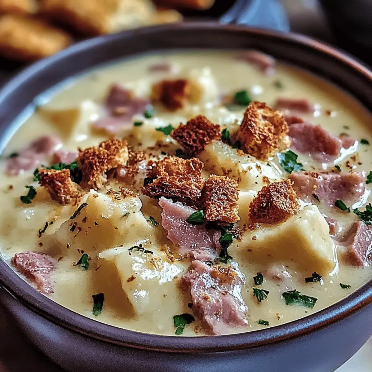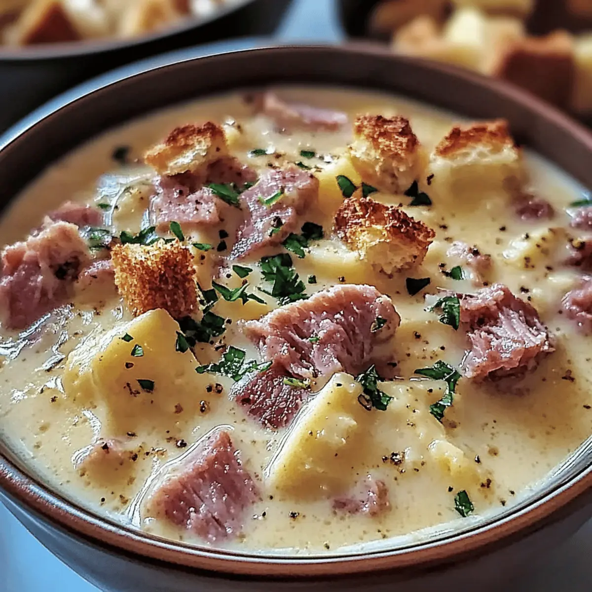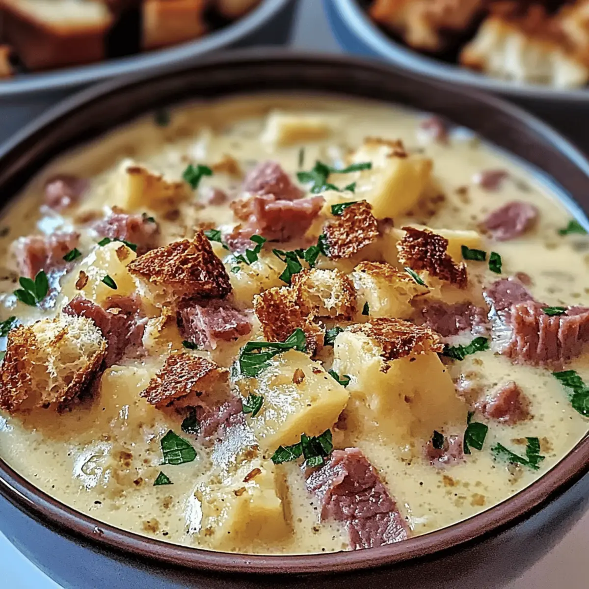 Every now and then, a dish comes along that not only warms your belly but also wraps you in a cozy, nostalgic hug. Enter the Creamy Reuben Soup, a delightful twist on the classic Reuben sandwich, perfect for those chilly nights when comfort food reigns supreme. This creamy, hearty bowl features tender corned beef, tangy sauerkraut, and melted Swiss cheese swimming in a rich broth that sings old-school flavors. Plus, it’s a breeze to whip up, making it an ideal choice for family dinners or friendly gatherings. If you’re tired of fast food and yearning for something homemade, this soup is your answer. What better way to embrace the comfort of hearty flavors than with a steaming, soulful bowl of Reuben goodness? Are you ready to dive into this delicious experience? Why is Creamy Reuben Soup a Must-Try? Comforting and hearty: This soup is like a warm hug, providing the perfect remedy for chilly nights. Simple preparation: With straightforward steps and common ingredients, you’ll have this dish on the table in no time, allowing you to savor homemade goodness over fast food. Rich flavors: The combination of tender corned beef, tangy sauerkraut, and melted Swiss cheese creates a luxurious, creamy broth that mirrors the beloved sandwich. Versatile options: Feel free to customize with turkey or chicken, or even swap in different cheeses to suit your taste buds. Crowd-pleasing: Whether it’s a family dinner or a gathering with friends, this soup is bound to impress everyone at the table. Pair it with some homemade rye bread croutons for the ultimate experience, or if you’re looking for more comforting recipes, try the delicious Cowboy Soup Hearty for a warm treat! Creamy Reuben Soup Ingredients • For the Soup Base Unsalted Butter – Adds richness and helps sauté the vegetables. Substitute with olive oil for a dairy-free version. Onion (1 medium, chopped) – Provides a base flavor; enhances sweetness when sautéed. No substitutions necessary. Garlic (2 cloves, minced) – Infuses the soup with aromatic flavor. Fresh garlic is preferred for its potency. All-Purpose Flour (1/4 cup) – Thickens the soup and creates a roux. Can use gluten-free flour for a gluten-sensitive version. Chicken Broth (4 cups) – Acts as the soup base; adds depth of flavor. Use low-sodium broth to control salt levels. Heavy Cream (1 cup) – Contributes to the soup’s luxurious creaminess. Substitute with half-and-half or a non-dairy milk alternative for a lighter option. • For the Main Ingredients Corned Beef (1/2 pound, chopped) – Provides protein and the signature Reuben flavor. Substitute with turkey or chicken for a lighter version. Sauerkraut (1 cup, drained) – Adds tanginess and probiotics. Fermented cabbage is recommended; rinse for less saltiness. Shredded Swiss Cheese (1 cup) – Melts into the soup for flavor and creaminess. Could substitute with Gruyère cheese for a different flavor profile. Russian or Thousand Island Dressing (1/4 cup) – Enhances the sandwich flavor; can use homemade dressing. • For Final Touches Salt and Pepper – To taste; essential for seasoning. Rye Bread Croutons – Provides crunch and echoes the classic sandwich experience. Make homemade croutons for extra flavor. Chopped Parsley – For garnish, adds color and a fresh note. Dive into the delicious world of Creamy Reuben Soup with these essential ingredients! Step‑by‑Step Instructions for Creamy Reuben Soup Step 1: Sauté the Vegetables In a large pot, melt 2 tablespoons of unsalted butter over medium heat. Once melted, add 1 chopped onion and 2 minced garlic cloves, cooking for about 5 minutes until the onion becomes translucent and fragrant. This aromatic base will set the stage for your hearty Creamy Reuben Soup. Step 2: Create the Roux Stir in 1/4 cup of all-purpose flour, mixing well to form a roux. Cook for an additional 2 minutes, stirring constantly until the mixture is lightly golden. This step is crucial to thicken the soup and add depth to its flavor. Step 3: Add the Broth Gradually whisk in 4 cups of chicken broth, ensuring there are no lumps. Bring the mixture to a gentle simmer over medium heat, allowing the soup to thicken slightly. You’ll see the broth start to bubble, indicating it’s ready for the next ingredients. Step 4: Mix in the Cream Reduce the heat to low, and carefully stir in 1 cup of heavy cream until fully combined. The soup will become rich and creamy, resembling the delightful Creamy Reuben Soup you envision. Ensure it is warmed through but do not let it boil. Step 5: Incorporate Key Ingredients Add in 1/2 pound of chopped corned beef and 1 cup of drained sauerkraut to the pot. Stir well to combine all the ingredients, allowing the flavors to meld together, and cook for another 2-3 minutes, just until everything is heated through. Step 6: Add Cheese and Dressing Mix in 1 cup of shredded Swiss cheese and 1/4 cup of Russian or Thousand Island dressing. Continue to stir until the cheese is melted and the soup is creamy, bringing the signature Reuben flavor to life in every spoonful. Step 7: Season to Taste Taste your Creamy Reuben Soup and season with salt and pepper according to your preference. This final touch ensures the flavors are balanced and the soup is just right for your taste buds. Step 8: Final Simmer Let the soup simmer on low heat for an additional 10 minutes, stirring occasionally. This allows all the beautiful flavors to meld together, creating a truly comforting bowl of Creamy Reuben Soup that will warm your heart and soul. Step 9: Serve and Garnish Ladle the soup into bowls while it’s still hot. Top each serving with crispy rye bread croutons and a sprinkle of chopped parsley for a pop of color. This finishing touch enhances the experience, bringing the classic sandwich elements right into your bowl. Expert Tips for Creamy Reuben Soup Perfect Roux: Make sure your roux is smooth and lightly golden to avoid a floury texture in your Creamy Reuben Soup; stir co