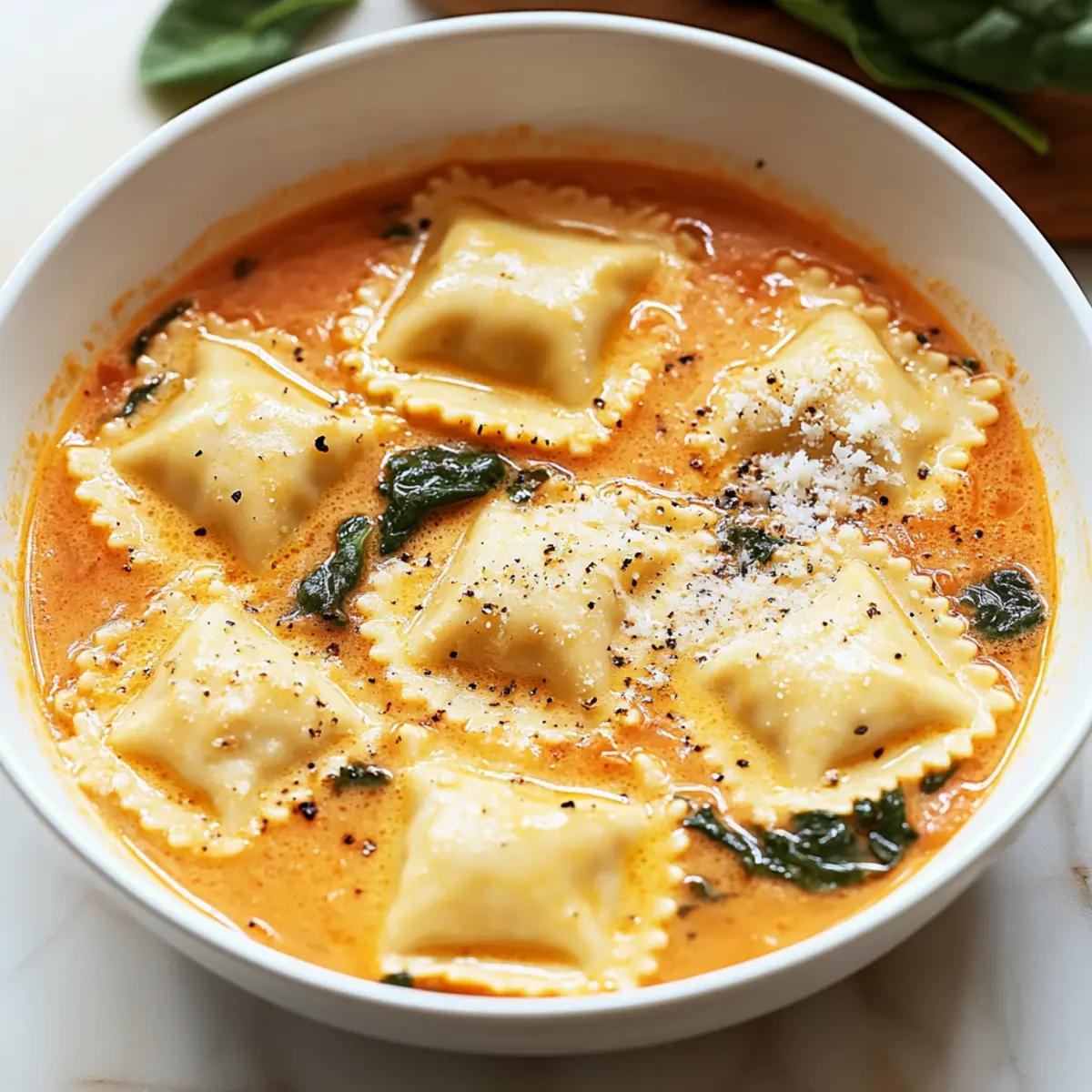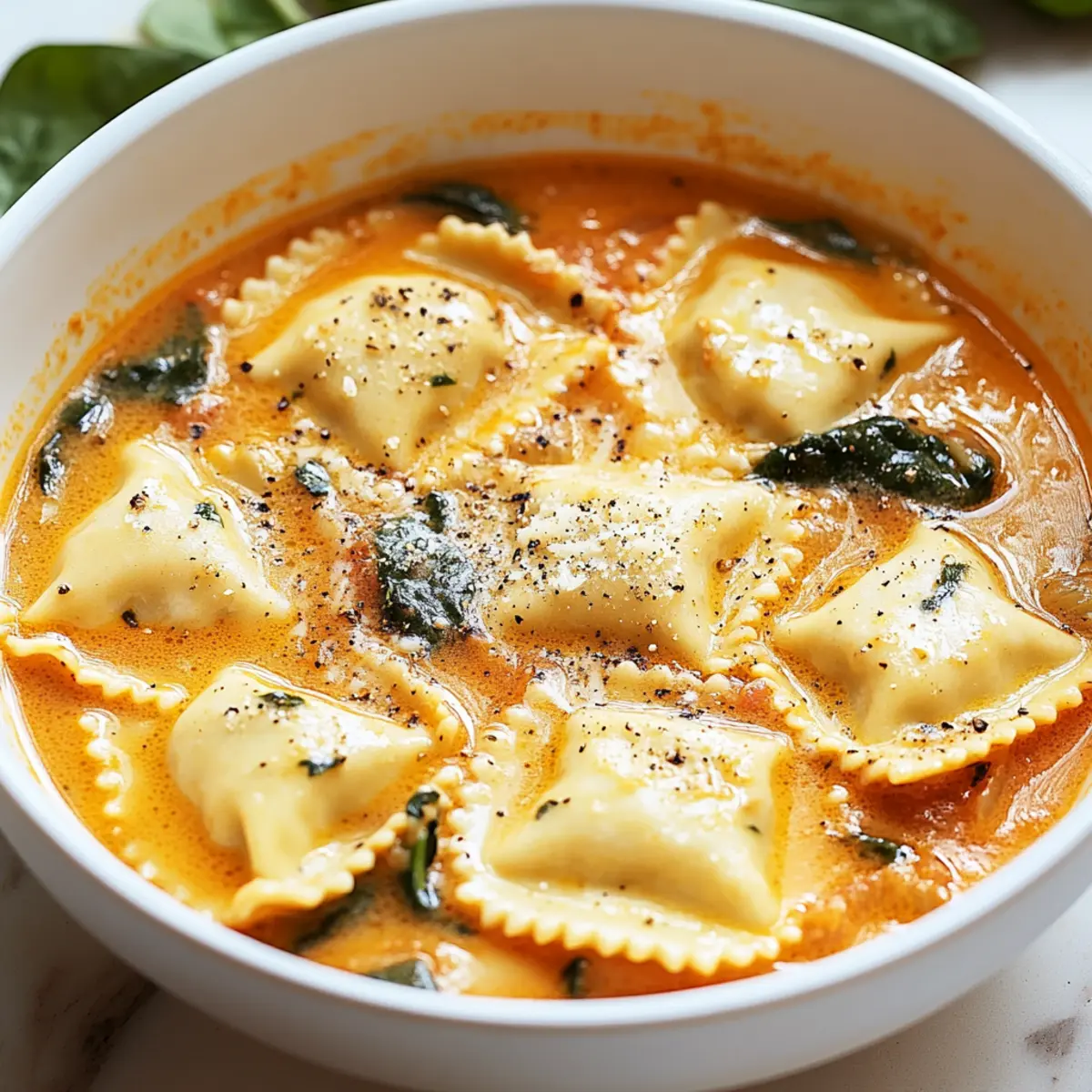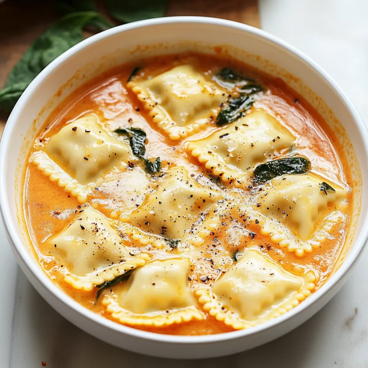 Creamy Tuscan Ravioli Soup is a comforting one-pot dish with cheesy ravioli in a rich tomato broth, perfect for chilly nights.