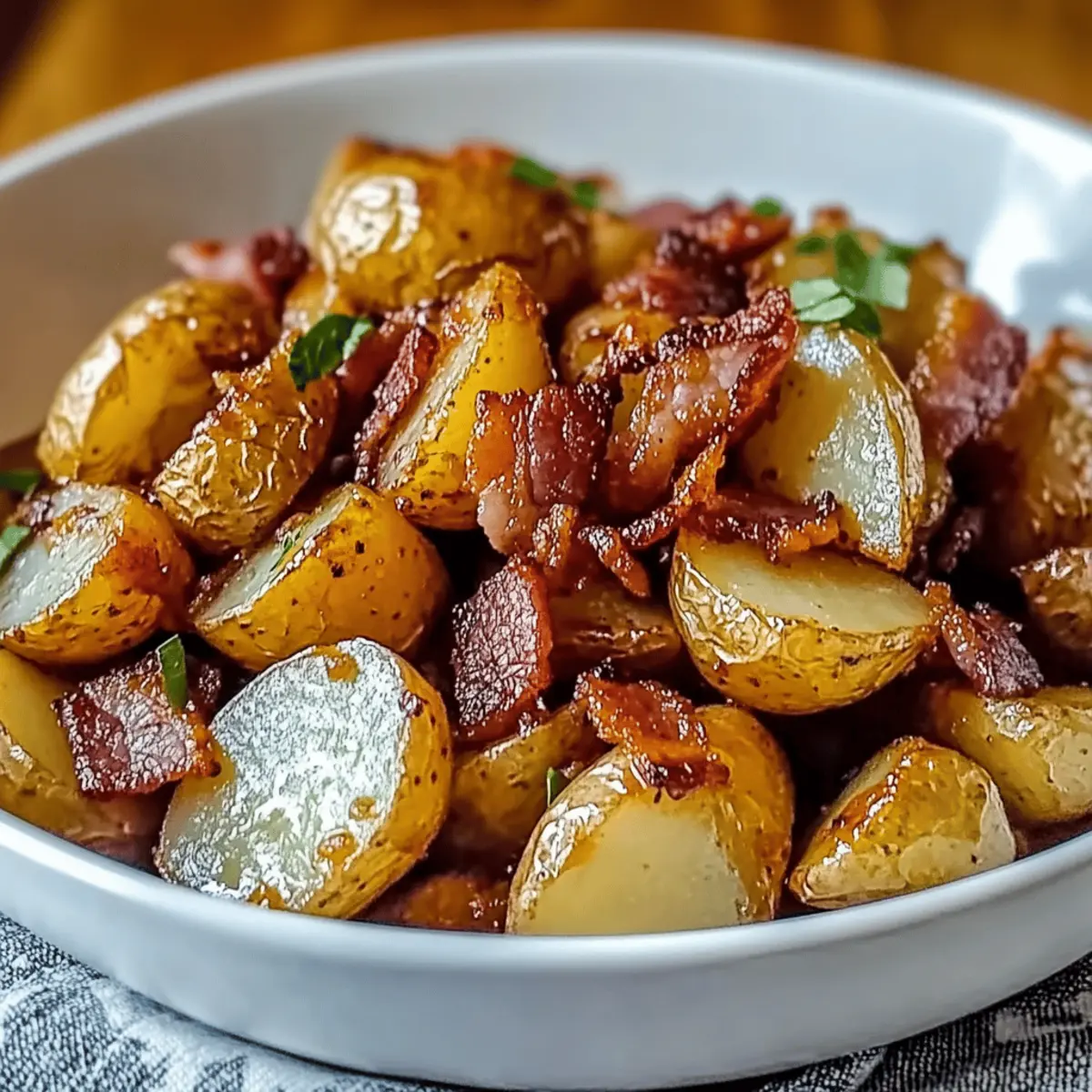 The first time I tasted the harmony of crispy bacon and honey on roasted potatoes, I knew I had stumbled upon a true culinary gem. These Crispy Bacon Honey Roasted Potatoes blend savory and sweet in the most delightful way, offering a quick side dish that’s perfect for any occasion—be it a busy weeknight dinner or a festive gathering. With minimal prep time and maximum flavor, you’ll have a family-friendly recipe that brings smiles and satisfaction to the table. The warm, inviting aroma that fills your kitchen is just the beginning; each bite promises a crunch from the bacon and a sticky, sweet glaze that will leave everyone wanting more. Curious about how to master this mouthwatering side? Let’s dive in! Why Are These Potatoes a Game Changer? Irresistible Flavor: The combination of crisp bacon and sweet honey creates a mouthwatering experience that elevates any meal. Easy Preparation: With a straightforward roasting method, these potatoes are perfect for cooks of all skill levels. Versatile Pairing: Serve them alongside grilled meats, roasted chicken, or even as a standalone snack. For a cozy night in, pair them with Honey Butter Chicken for a delightful feast! Diet-Friendly: Gluten-free and adaptable to various diets, these potatoes can easily be made vegan by swapping out bacon for tempeh or mushrooms. Crowd-Pleaser: They’re sure to impress at gatherings, making them a friendly addition to any potluck or family dinner. Quick Cooking Time: Ready in under an hour, you’ll spend minimal time in the kitchen, maximizing time spent with loved ones. Crispy Bacon Honey Roasted Potatoes Ingredients Experience the delightful marriage of sweet and savory! For the Potatoes • Baby Potatoes – Choose small, uniform potatoes for even roasting that will absorb the flavors beautifully. • Olive Oil – Essential for achieving that crispy exterior; feel free to substitute with avocado oil for a higher smoke point. For the Seasoning • Garlic Powder – This provides a savory kick; fresh minced garlic can be used for a fresher taste. • Smoked Paprika – Adds a depth of flavor; regular paprika works if you don’t have smoked. • Salt – Enhances all the flavors beautifully; sea salt or kosher salt can be used alternatively. • Black Pepper – Freshly ground pepper is recommended for the best warm spice profile. For the Bacon and Glaze • Bacon – Adds a savory crunch; substitute with turkey bacon for a lighter option or crispy tempeh for a vegan choice. • Honey – Provides the essential sweetness and helps caramelize the potatoes; maple syrup can be an excellent alternative if you’re seeking a different flavor. This recipe for Crispy Bacon Honey Roasted Potatoes is sure to become a go-to favorite with your family! Step‑by‑Step Instructions for Crispy Bacon Honey Roasted Potatoes Step 1: Preheat the Oven Start by preheating your oven to 400°F (200°C) to create the perfect environment for achieving that crispy texture. A well-heated oven is crucial for the success of your Crispy Bacon Honey Roasted Potatoes, so give it about 10-15 minutes to reach the desired temperature before moving on to the next steps. Step 2: Prepare the Baking Sheet While the oven is heating, line a baking sheet with parchment paper. This will not only help prevent sticking but also make for easy cleanup after enjoying your delicious potatoes. Ensure that the parchment paper covers the entire surface for optimal results. Step 3: Wash and Cut the Potatoes Take your baby potatoes, wash them thoroughly under cool water, and dry them with a clean towel. Then, slice each potato in half to promote even cooking and browning. Cutting them this way allows the insides to become fluffy while maintaining a crispy exterior, contributing to the overall appeal of the Crispy Bacon Honey Roasted Potatoes. Step 4: Chop the Bacon Grab your bacon and chop it into small, bite-sized pieces. This ensures that the bacon crisps up evenly and distributes its savory flavor throughout the dish. As you prepare the bacon, keep in mind that using small bites will intensify the overall experience of your roasted potatoes. Step 5: Season the Potatoes In a large mixing bowl, combine the halved potatoes with olive oil, garlic powder, smoked paprika, salt, and freshly ground black pepper. Toss the potatoes well until they are thoroughly coated in the seasoning mix. This step enhances the flavors of the Crispy Bacon Honey Roasted Potatoes and sets the stage for a delightful taste experience. Step 6: Spread on the Baking Sheet Carefully spread the seasoned potatoes onto the prepared baking sheet, making sure to leave space between them for even roasting. Avoid overcrowding, as this will allow your potatoes to get beautifully crispy rather than steam. Make sure each piece has its own space to cook evenly. Step 7: Add the Bacon Evenly sprinkle the chopped bacon over the seasoned potatoes, ensuring each piece gets a taste of that delicious, savory goodness. This step is key for infusing the Crispy Bacon Honey Roasted Potatoes with flavors that will make this dish a favorite at your dinner table. Step 8: Roast in the Oven Place the baking sheet in the preheated oven and roast the potatoes for 30-35 minutes. Halfway through cooking, flip the potatoes to ensure even browning and crispiness. Keep an eye on them; they should emerge golden brown and fragrant, promising a delightful treat. Step 9: Drizzle with Honey During the last 5 minutes of roasting, take your honey and drizzle it over the hot potatoes and bacon. This will caramelize beautifully and create a sticky, sweet glaze that enhances the flavors of the Crispy Bacon Honey Roasted Potatoes. Step 10: Cool and Garnish Once they are done roasting, remove the baking sheet from the oven and let the potatoes cool slightly. To finish, garnish your dish with fresh parsley for a pop of color and freshness. Now your Crispy Bacon Honey Roasted Potatoes are ready to be served! Expert Tips Choose 