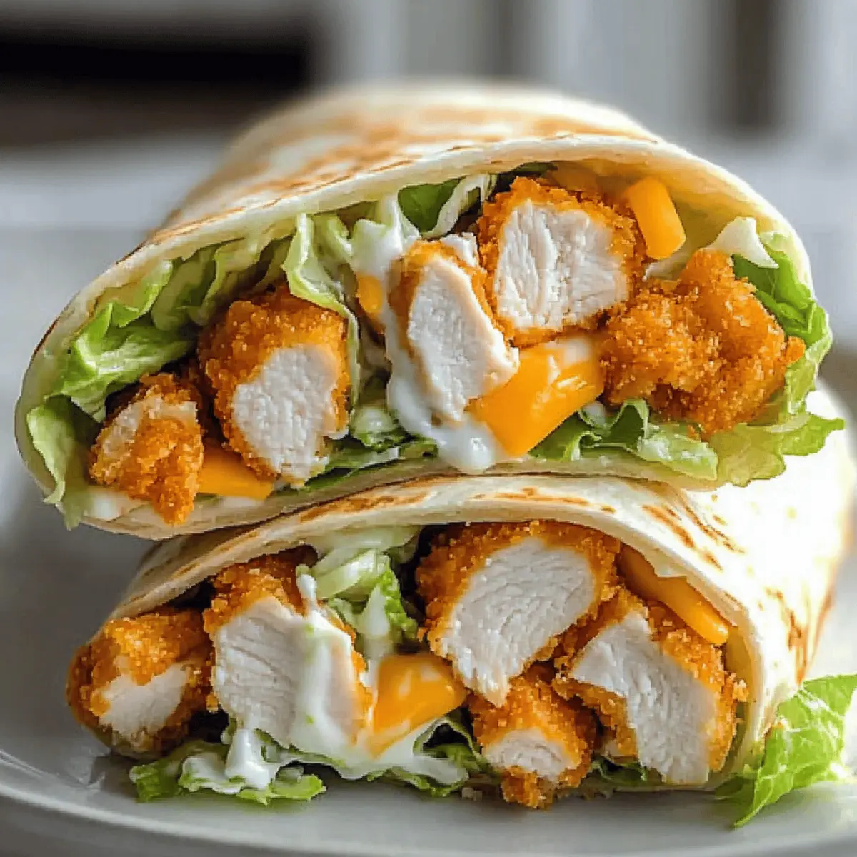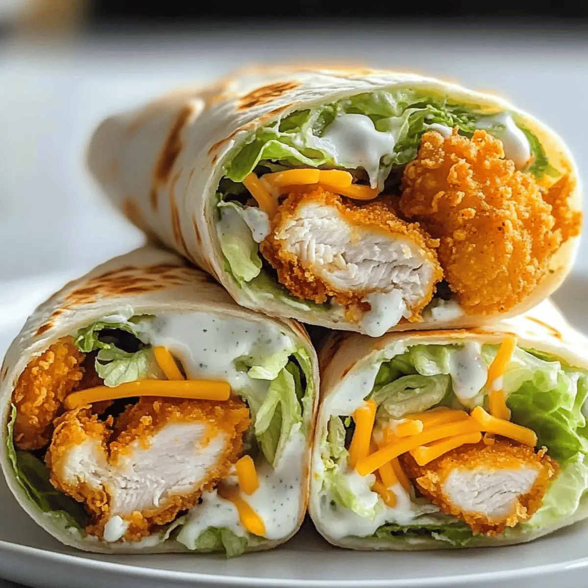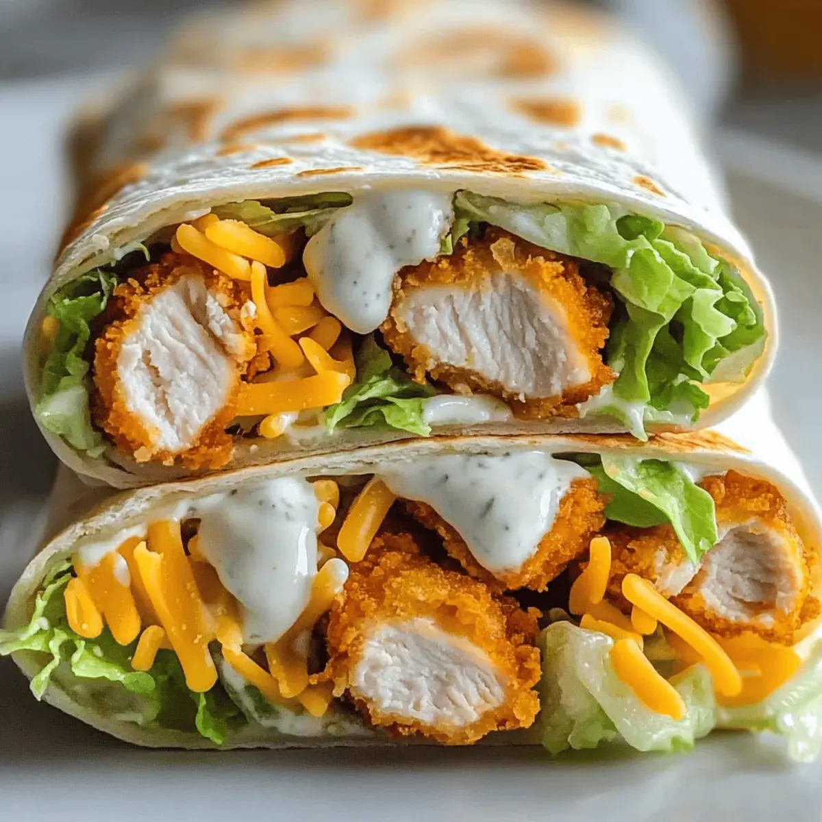 As I lifted the warm tortilla from the pan, a tantalizing scent filled the air—a promise of comfort and crunch. Today, I’m excited to share my recipe for Crispy Chicken Ranch Snack Wraps, a delightful treat that can turn any busy weeknight into a culinary triumph. With just 20 minutes of prep, these wraps are a quick, crowd-pleasing solution for anyone tired of fast food. Plus, they cater to gluten-free diets, so everyone can enjoy the fun! Imagine sinking your teeth into crispy chicken tenders, complemented by fresh lettuce, creamy ranch, and a sprinkle of cheese—all wrapped snugly in a soft tortilla. The best part? This recipe is highly customizable, allowing you to swap in grilled chicken, your favorite cheese, or even try a spicy dressing. What’ll be your favorite twist? Let’s get cooking! Why is this wrap a must-try? Quick, these Crispy Chicken Ranch Snack Wraps come together in under 20 minutes! Customizable, you can swap in grilled chicken or try different cheeses to suit your taste. Crowd-pleaser, perfect for busy families craving comfort food that feels indulgent yet is healthier than fast food. Gluten-free options ensure everyone can enjoy without compromise. Whether for a lunch on the go or a cozy dinner, you won’t regret picking this delight—it’s a wholesome winner! Crispy Chicken Ranch Snack Wrap Ingredients • For the Wrap Small Flour Tortillas – Soft and pliable, these serve as the perfect base; consider whole wheat or gluten-free tortillas for a healthier option. Frozen Chicken Tenders – Easy to prepare and crunchy, these provide a comforting protein; you can also use pre-cooked grilled or rotisserie chicken for an even quicker prep. • For the Filling Shredded Lettuce – Adds a fresh, crisp element; feel free to swap it out for coleslaw mix for an extra crunch. Shredded Cheddar Cheese – Brings a creamy and savory flavor; other cheeses like Monterey Jack or pepper jack offer a delightful twist. • For the Dressing Ranch Dressing – The star of the show, adding creaminess and rich flavor; try honey mustard or spicy mayo for a different kick. These easy-to-make wraps will be a family favorite, and you’ll love how the crispy chicken ranch snack wrap makes meal time feel special! Step‑by‑Step Instructions for crispy chicken ranch snack wrap Step 1: Cook the Chicken Tenders Preheat your oven to 400°F (200°C) and bake the frozen chicken tenders according to package instructions, usually for about 20–25 minutes, until they are golden brown and crispy. Keep an eye on them to ensure they don’t overcook and enjoy that delicious aroma filling your kitchen. Once cooked, let them cool slightly before cutting to avoid burning your fingers. Step 2: Warm the Tortillas While the chicken is cooling, warm your small flour tortillas for about 15–30 seconds in a dry skillet over medium heat or in the microwave for 10–15 seconds. Warming makes them soft and flexible, preventing tears when you assemble your wraps. You’ll know they’re ready when they become slightly pliable and warm to the touch. Step 3: Prepare the Chicken Once the crispy chicken tenders have cooled enough to handle, carefully cut them into bite-sized pieces, roughly one-inch cubes. This will make it easy to layer them inside your tortillas. The enticing golden color and crunchy texture will make your crispy chicken ranch snack wraps irresistible! Step 4: Assemble the Wraps On a warmed tortilla, lay down a handful of shredded lettuce, creating a fresh base. Next, add your cut chicken pieces and a generous sprinkle of shredded cheddar cheese right in the center. The combination of crunchy lettuce, savory chicken, and melty cheese is the foundation of your delicious crispy chicken ranch snack wrap. Step 5: Add the Dressing Drizzle your creamy ranch dressing over the layered fillings, going light to avoid it spilling out when you fold. If you prefer a twist, consider substituting with honey mustard or a spicy mayo instead. Feel free to be generous with this step—the dressing adds incredible flavor to your wraps! Step 6: Fold the Tortillas Gently fold the sides of each tortilla over the filling, then tightly roll it up from the bottom to the top, securing the ingredients inside. Make sure to roll firmly but not too tightly to keep everything intact. A well-wrapped crispy chicken ranch snack wrap is the key to enjoying every delicious bite without any mess. Step 7: Serve or Pack Up Your crispy chicken ranch snack wraps are now ready to serve! For immediate enjoyment, slice them in half and serve alongside your favorite snacks like carrot sticks or potato chips. If you’re on the go, wrap them in foil to keep them warm and fresh. These wraps are perfect for a satisfying lunch or a fun dinner! Make Ahead Options These Crispy Chicken Ranch Snack Wraps are a lifesaver for busy home cooks! You can prep all the components up to 3 days in advance to save precious time during your hectic week. Cook the chicken tenders and let them cool completely before slicing; store them in an airtight container in the refrigerator. Similarly, you can wash and chop the lettuce, and prepare any diced vegetables or alternative fillings for easy access. When you’re ready to enjoy your wraps, simply warm the tortillas, assemble the wraps with your prepped ingredients, and drizzle on the ranch dressing just before serving to keep everything fresh and flavorful. With these make-ahead tips, you’ll create satisfying meals in no time! Expert Tips for Crispy Chicken Ranch Snack Wraps Cool the Chicken: Allow the cooked chicken tenders to cool before assembling. This step helps maintain the tortilla’s integrity and prevents sogginess. Dress with Care: Avoid using too much ranch dressing. A light drizzle is enough; excess can make the wraps soggy and difficult to handle. Perfectly Folded: Ensure you wrap each tortilla tightly but not too tightly. A well-wrapped crispy chicken ranch snack wrap will keep all the de