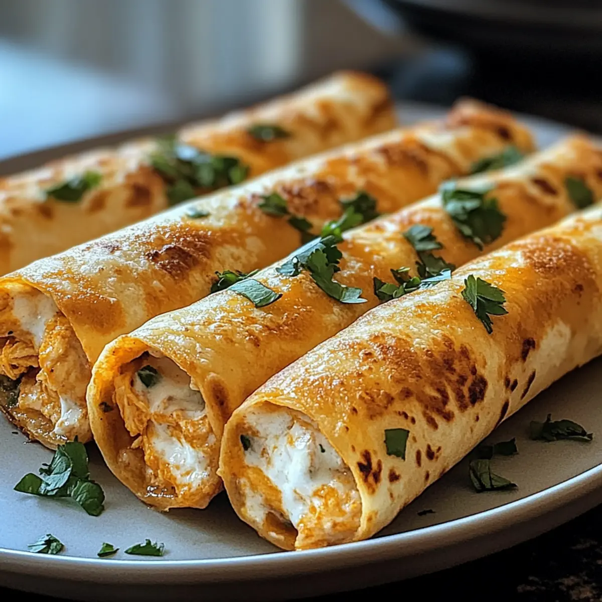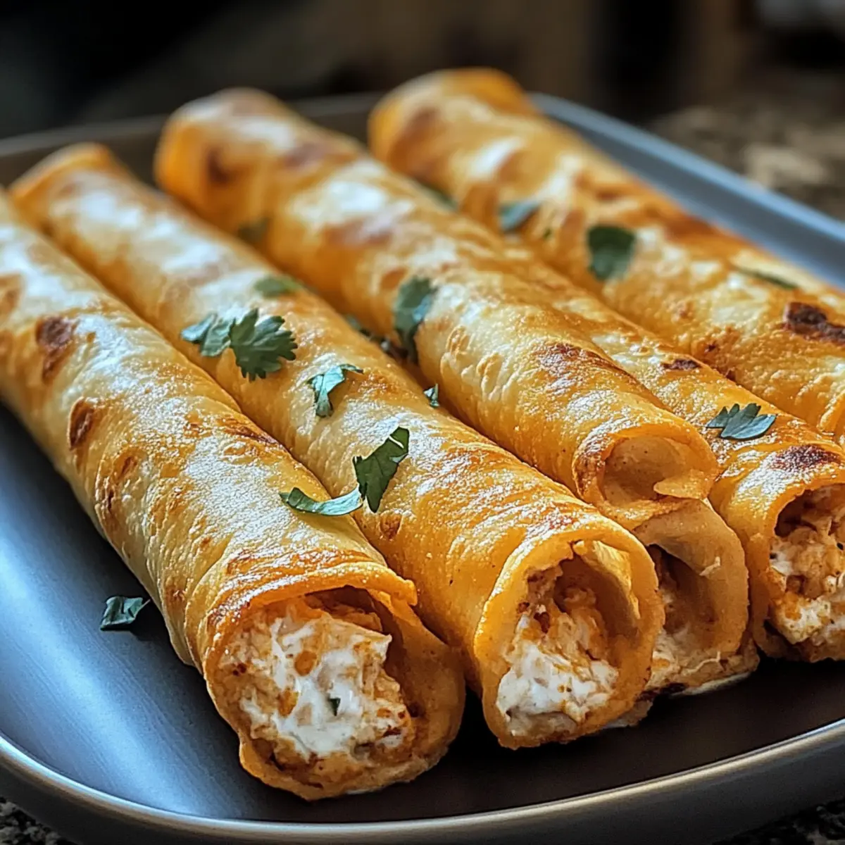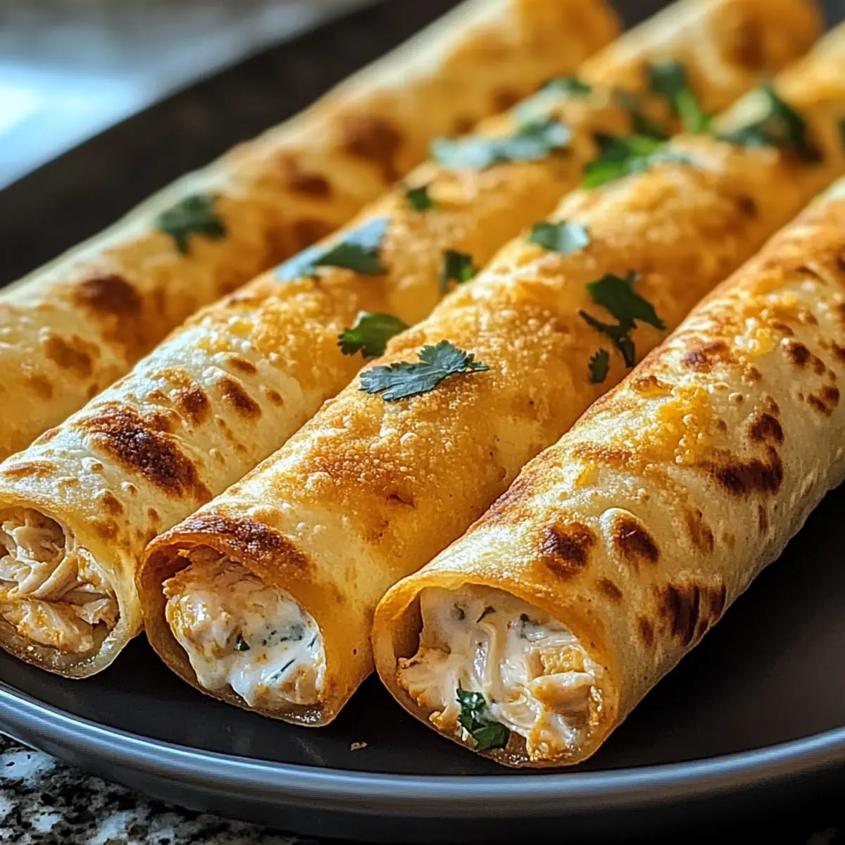 As I sank my teeth into a warm, golden taquito, the satisfying crunch took me back to bustling street vendors in Mexico, where every bite felt like a mini celebration. These Crispy Chicken Taquitos are more than just a craving killer—they’re easy to whip up and can be baked or air-fried, making them a healthier option than their fried counterparts. Packed with flavor, creamy shredded chicken, and a delightful blend of spices, they’re perfect for quick weeknight dinners or as a crowd-pleasing snack for game days. Plus, you can easily customize them to match your taste preferences, whether you like them mild or with a spicy kick. Are you ready to learn how to make these irresistible bites that will leave everyone asking for more? Why are Crispy Chicken Taquitos a must-try? Deliciously Customizable: You can easily adapt these taquitos with different proteins, like ground beef or black beans, catering to every palate. Guilt-Free Indulgence: Enjoy that satisfying crunch without the need for deep frying! Whether baked or air-fried, they’re a healthier choice for snack time. Crowd-Pleasing Snack: Perfect for gatherings, game days, or casual dinners, they’re guaranteed to be a hit for friends and family alike. Quick & Easy: With simple ingredients and straightforward instructions, you can whip these up in no time, making them ideal for busy weekdays. Flavorful Fillings: The combination of cream cheese, shredded chicken, and spices creates a burst of deliciousness in every bite, making them hard to resist! Explore more delightful chicken recipes like Honey Butter Chicken or Parmesan Chicken Garlic for more inspiration! Crispy Chicken Taquitos Ingredients Discover the love behind the layers! For the Filling Cooked Shredded Chicken – Provides the primary protein and flavor; rotisserie chicken is a convenient option. Cream Cheese – Adds creaminess and richness; make sure it is softened for easy mixing. Shredded Cheddar or Mexican Blend Cheese – Offers flavor and a gooey texture; substitute any melting cheese if desired. Salsa – Adds moisture and flavor; can be mild or spicy based on preference—adjust according to heat tolerance. Garlic Powder – Enhances flavor depth; fresh garlic can be substituted if preferred. Chili Powder – Adds warmth and a slight kick; adjust the amount for desired spice level. Cumin – Provides an earthy flavor note; omit or reduce for a milder taste. Salt and Black Pepper – Season to taste. For the Taquitos Tortillas (flour or corn) – Encasing for taquitos; corn tortillas can be used for a gluten-free option—warm well before rolling to prevent cracking. Cooking Spray or Oil – For brushing to achieve the perfect crispiness during baking. Feel the love in every bite of these Crispy Chicken Taquitos—your taste buds will thank you! Step‑by‑Step Instructions for Crispy Chicken Taquitos Step 1: Preheat the Oven Begin by preheating your oven to 425°F (220°C). While the oven heats up, prepare a baking sheet by lining it with parchment paper or lightly greasing it with cooking spray. This step ensures your Crispy Chicken Taquitos receive even heat while baking, resulting in the perfect golden-brown crunch. Step 2: Prepare the Filling In a large mixing bowl, combine your cooked shredded chicken, softened cream cheese, shredded cheese, and salsa. Add garlic powder, chili powder, cumin, salt, and pepper to taste. Use a spatula or fork to mix everything together thoroughly until you have a smooth, creamy filling. This flavorful mixture is what makes your taquitos irresistible! Step 3: Warm the Tortillas To prevent cracking, warm the tortillas in the microwave for about 20 seconds until they’re pliable. It’s crucial to do this before rolling your taquitos, as it helps them maintain their shape without breaking. This is a simple tip that ensures a delightful eating experience with your Crispy Chicken Taquitos. Step 4: Fill and Roll the Taquitos Spoon 2-3 tablespoons of the flavorful chicken filling onto one edge of each warm tortilla. Carefully roll the tortilla tightly around the filling, ensuring it’s well-sealed. Place the rolled taquitos seam-side down on the prepared baking sheet. This technique keeps them intact during baking and gives you that satisfying crunch. Step 5: Brush with Oil Lightly brush or spray the tops of the taquitos with cooking oil to achieve that crispy exterior. Ensuring each taquito is well-coated helps create a perfectly crunchy texture while baking, making your Crispy Chicken Taquitos even more enjoyable to eat. Step 6: Bake to Perfection Bake the taquitos in your preheated oven for 15-20 minutes, or until they are golden brown and crispy. Keep an eye on them for the last few minutes, as ovens can vary. If you’d like an extra crunch, switch on the broiler for an additional 1-2 minutes, watching carefully to avoid burning. Step 7: Serve and Enjoy Once baked to perfection, remove your Crispy Chicken Taquitos from the oven and let them cool for a minute. Serve them warm with toppings such as sour cream, guacamole, or additional salsa for dipping. This last step elevates your taquitos from homemade to a delightful snack that everyone will love! Expert Tips for Crispy Chicken Taquitos Perfectly Warm Tortillas: Ensure you warm the tortillas before rolling; this prevents them from cracking and helps in achieving neat, crunchy taquitos. Creamy Filling: Always use softened cream cheese for a smooth mixture; hard cream cheese makes it difficult to blend with other ingredients, affecting flavor. Avoid Overfilling: Be mindful not to overstuff the taquitos; 2-3 tablespoons of filling is sufficient to keep them intact while baking. Spray for Crispiness: Don’t skip the oil spray on top; it’s essential for achieving that gorgeous golden crunch on your Crispy Chicken Taquitos! Broil with Care: If broiling for extra crispiness, watch closely—just a minute too long can quickly turn them from perfect to burnt. What to Serve wit