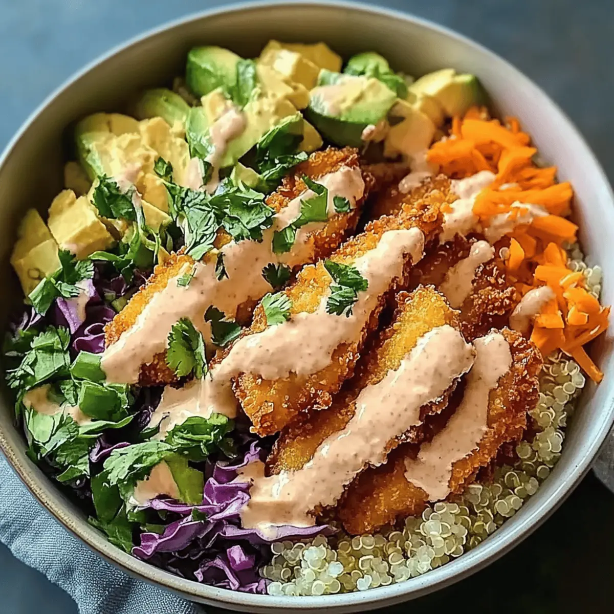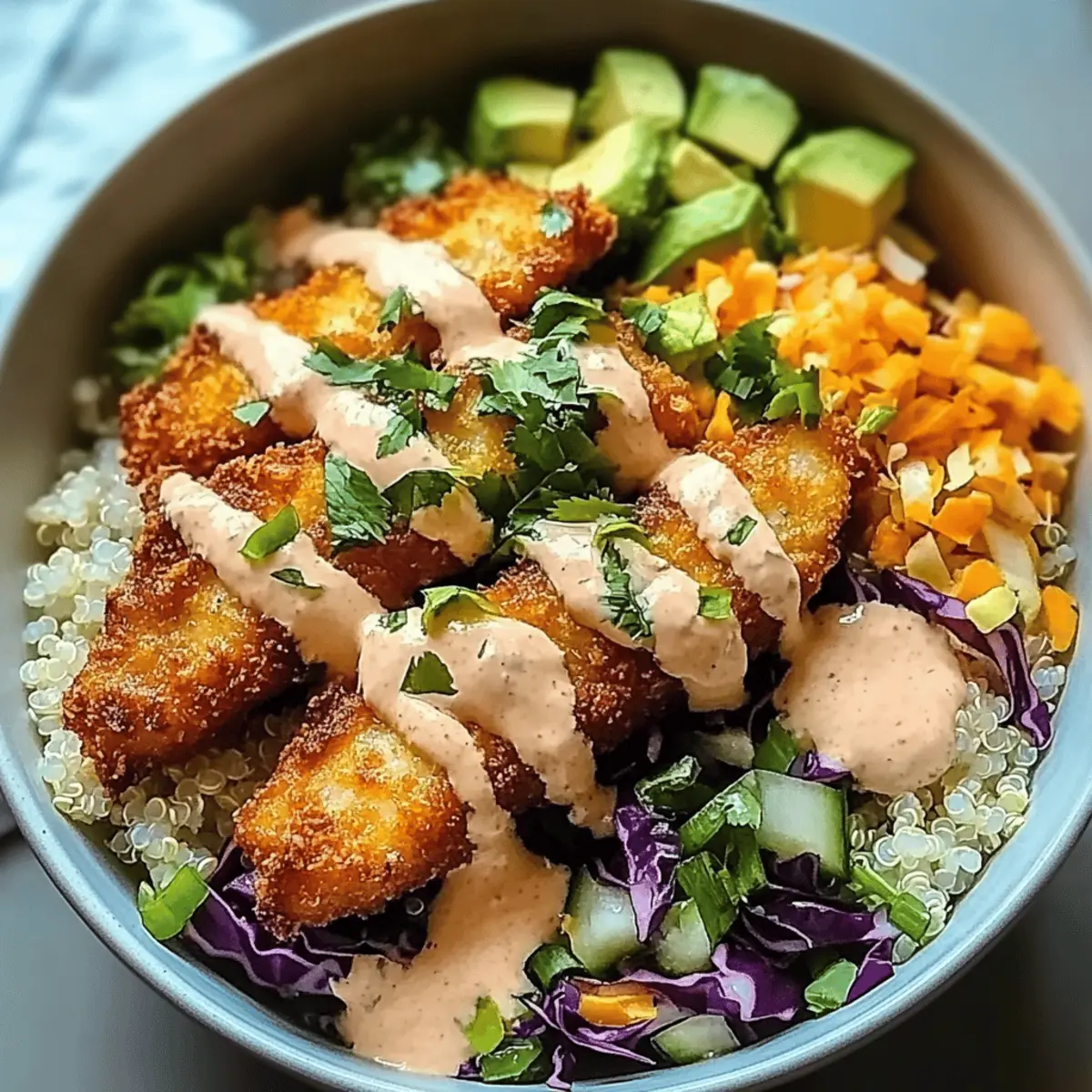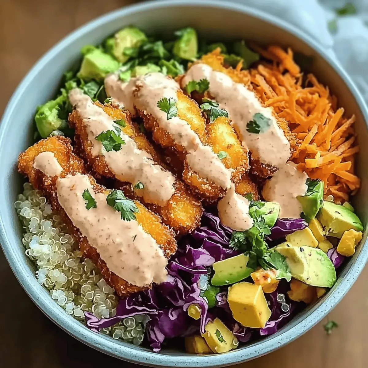 As I stood in my kitchen, the sizzle of fish hitting the hot oil sent my senses into a delightful frenzy. These crispy fish taco bowls are a twist on the classic taco, transforming it into a vibrant bowl that’s as fun to make as it is to eat. Perfect for busy weeknights, this healthy and customizable dish not only brings together tender flakes of fish with a crunchy slaw, but it also accommodates various dietary preferences with ease. Think of it as a flavor-packed adventure that’ll not only please your palate but also make even the pickiest eaters excited about dinner. Ready to dive into the deliciousness of Crispy Fish Taco Bowls? Let’s get cooking! Why are Crispy Fish Taco Bowls amazing? Deliciously Unique: Transform your taco night with these bowls that combine the crispy texture of fish and the refreshing crunch of slaw for an unforgettable meal. Customizable Options: Enjoy the freedom to swap proteins or add toppings like avocado or mango salsa to meet your family’s preferences. Quick Meal Solution: Perfect for busy weeknights, these bowls can be ready in under 30 minutes, making dinner a breeze! Healthy Indulgence: With ingredients like tender fish and fresh veggies, you’re treating yourself to a vibrant, guilt-free option that doesn’t sacrifice flavor. Family-Friendly Appeal: Even picky eaters can’t resist the charm of these bowls; they’re sure to become a household favorite alongside our Chicken Garlic Sauce or Honey Butter Chicken! Crispy Fish Taco Bowls Ingredients For the Fish Fish Fillets – Look for white fish like cod or tilapia for a tender and flaky texture. All-Purpose Flour – Used for dredging the fish, creating a light coating; substitute with gluten-free flour for gluten-free options. Panko Breadcrumbs – Provides a light, crispy texture; can be substituted with crushed cornflakes or gluten-free breadcrumbs. Eggs – Binds the flour to the fish; consider aquafaba for a vegan option. Smoked Paprika – Adds a smoky flavor to the coating; substitute with regular paprika or cayenne for added heat. For the Slaw Cabbage (Shredded) – Base for slaw, offering crunch and freshness; substitute with coleslaw mix or shredded Brussels sprouts. Carrots (Shredded) – Adds sweetness and color to the slaw; substitutable with sliced bell peppers. Cilantro – Fresh herb for garnish; optional and can be replaced with parsley. For the Sauce Mayonnaise – The base for the creamy sauce, adding richness; substitute with Greek yogurt or vegan mayo. Chipotle Peppers in Adobo – Adds spice and smokiness to the sauce; adjust quantity based on desired heat level; canned jalapeños can be an alternative. Lime Juice – Provides acidity and brightness; substitute with lemon juice and adjust to taste. Garlic – Enhances flavor; use garlic powder as a substitute. Honey/Agave – Optional sweetener for the slaw; use maple syrup if you want a vegan option. For Assembly Rice or Quinoa – Start with a base to create a filling and hearty bowl; choose according to preference. Optional Toppings – Sliced radishes, avocado, or mango salsa can add freshness and color to each bowl. These Crispy Fish Taco Bowls are versatile and sure to delight your taste buds while keeping dinner exciting! Step‑by‑Step Instructions for Crispy Fish Taco Bowls Step 1: Prepare Zesty Slaw In a large mixing bowl, combine shredded cabbage, carrots, and chopped cilantro. In a separate small bowl, whisk together the dressing ingredients until smooth, then pour it over the vegetable mixture. Toss thoroughly to coat every piece, then cover and refrigerate for at least 20 minutes to allow the flavors to meld and the slaw to crisp up beautifully. Step 2: Make Creamy Taco Sauce In a blender or food processor, add mayonnaise, sour cream, chipotle peppers, lime juice, garlic, and cumin. Blend until smooth and creamy, adjusting the consistency with a little water or milk if needed. Taste and season as desired, then transfer the sauce to a bowl and set it aside for assembly of your Crispy Fish Taco Bowls. Step 3: Prepare Crispy Fish Start by patting the fish fillets dry to ensure a perfect coating. In a shallow dish, mix all-purpose flour with smoked paprika, salt, and pepper. In another bowl, whisk the eggs. Finally, place panko breadcrumbs in a third dish. Dredge each fish fillet in the flour mixture, dip it in the egg, and then coat it with panko, pressing gently to adhere the breading. Step 4: Cook the Fish Choose your cooking method: for pan-frying, heat oil in a skillet over medium-high heat. Fry the fish for 2-4 minutes per side until golden and crispy. Alternatively, preheat your oven to 425°F and bake the fish on a lined baking sheet for 12-15 minutes. For air frying, set the temperature to 400°F and air fry for 8-12 minutes, until the fish is crispy and cooked through. Step 5: Assemble Bowls Begin assembling your Crispy Fish Taco Bowls by starting with a base of rice or quinoa. Place the crispy fish fillets on top, followed by a generous scoop of the zesty slaw. Drizzle the creamy taco sauce over everything for added flavor and creaminess, and feel free to add any optional toppings you desire, such as sliced avocado or radishes for extra freshness. Step 6: Serve Serve the bowls warm to enjoy the delightful textures of the crispy fish and refreshing slaw. Feel free to provide lime wedges and your favorite hot sauce on the side for those who enjoy a little extra kick. Enjoy this delicious and vibrant meal with family and friends! What to Serve with Crispy Fish Taco Bowls Building a delightful meal around your Crispy Fish Taco Bowls can elevate the experience from ordinary to extraordinary. Cilantro Lime Rice: Brighten your meal with fluffy rice infused with fresh lime and cilantro, complementing the fish’s flavors perfectly. Black Bean Salad: Enjoy a mix of protein and fiber with black beans, corn, and diced peppers, adding a fresh and zesty twist. Grilled Street Corn: This smoky and creamy treat, 